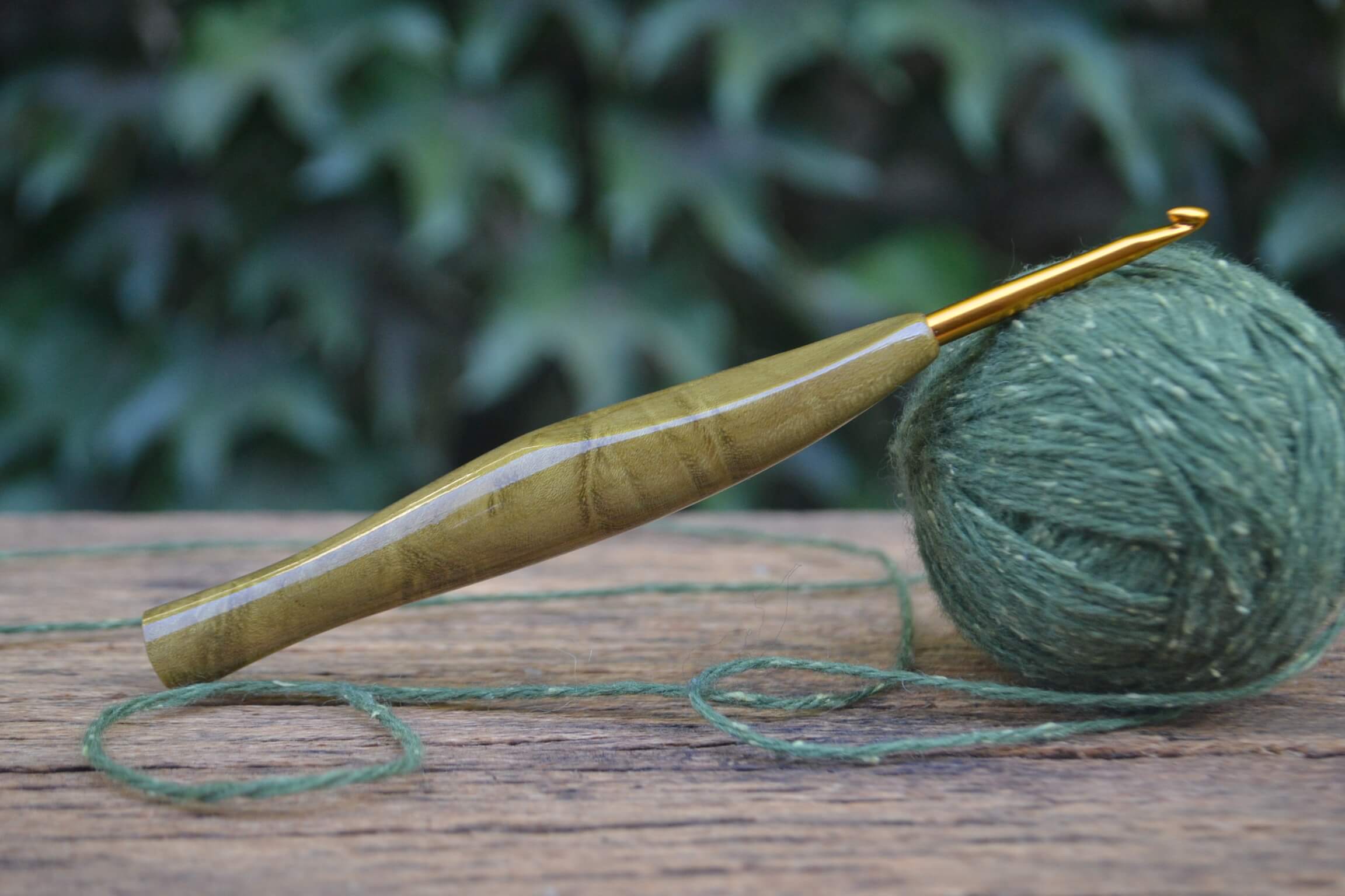 $27.003.5 mm E Tulip Gold and Robinia Curly wood Ergonomic Crochet Needle 18 mm 14.5 cm #1323-5013
