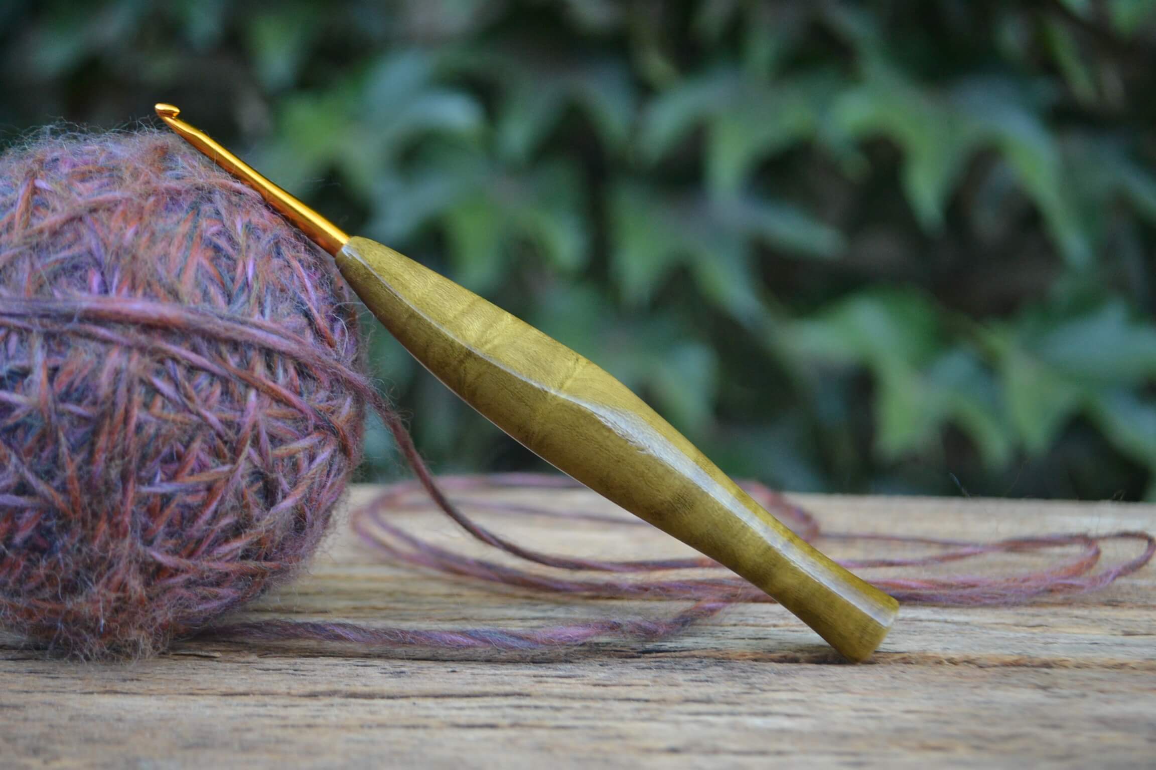 $27.004.5 mm size 7 Tulip Gold and Robinia Curly wood Ergonomic Crochet Needle 18 mm 14.5 cm #1322-5012