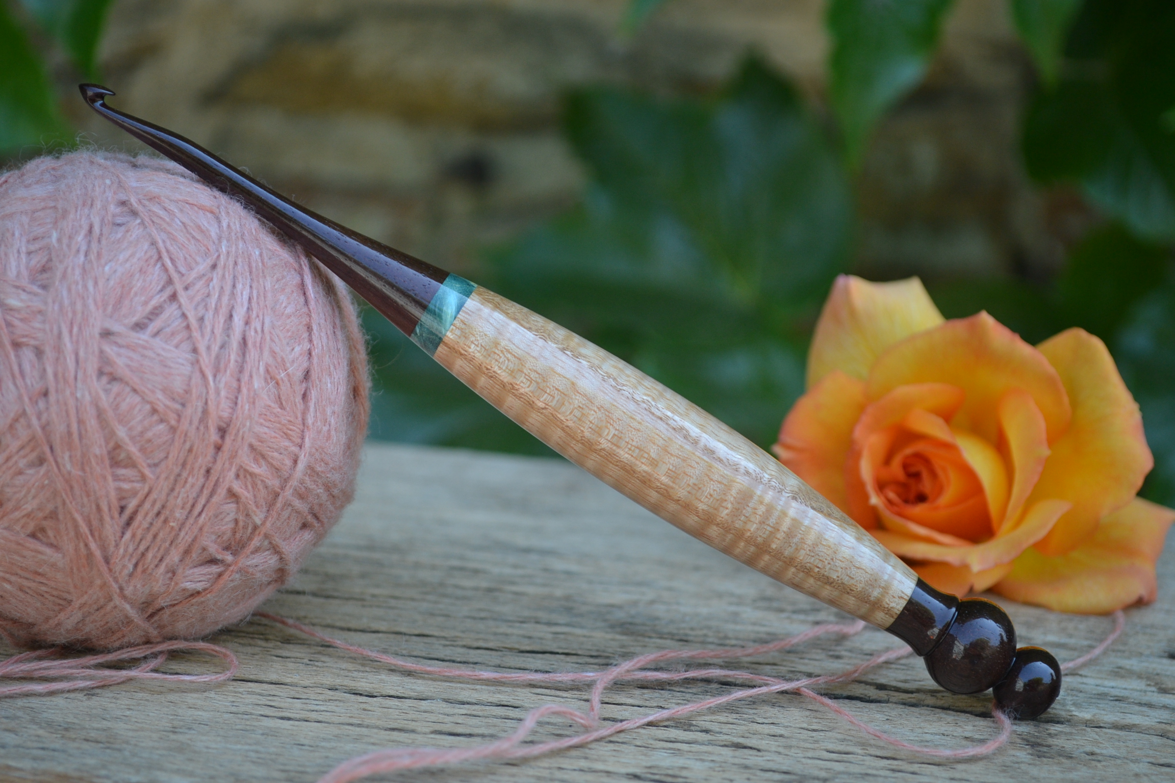 4.5 mm = size 7 Katalox, Box Elder Stab. Curly and Burl, Ash Curly wood Ergonomic Crochet Hook 20 mm 18,5 cm #753-4443