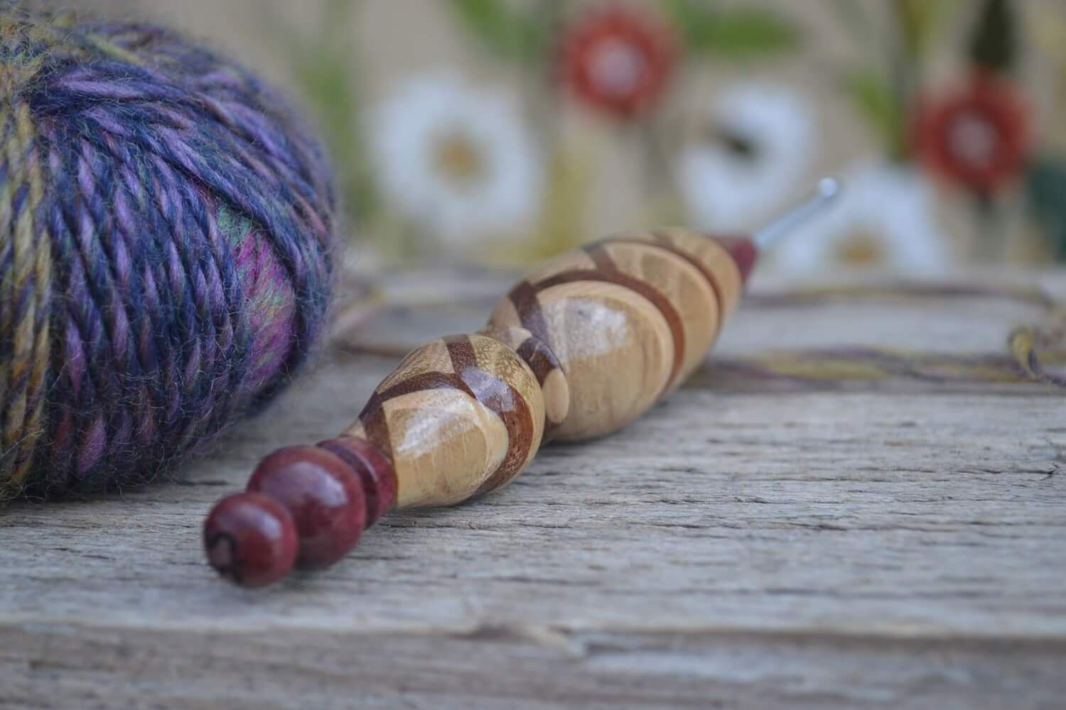 2.5 mm Clover Amour, Purpleheart and Robinia/ Hornbeam wood mosaic Ergonomic Crochet Hook 23 mm 16.5 cm #1130-4820