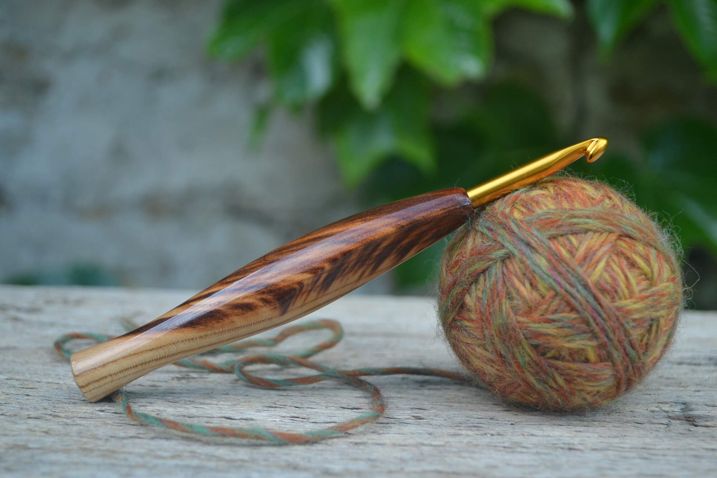 5 mm = size H Hornbeam wood (Wenge color) Ergonomic Crochet Hook 18 mm 16 cm #1211-4901