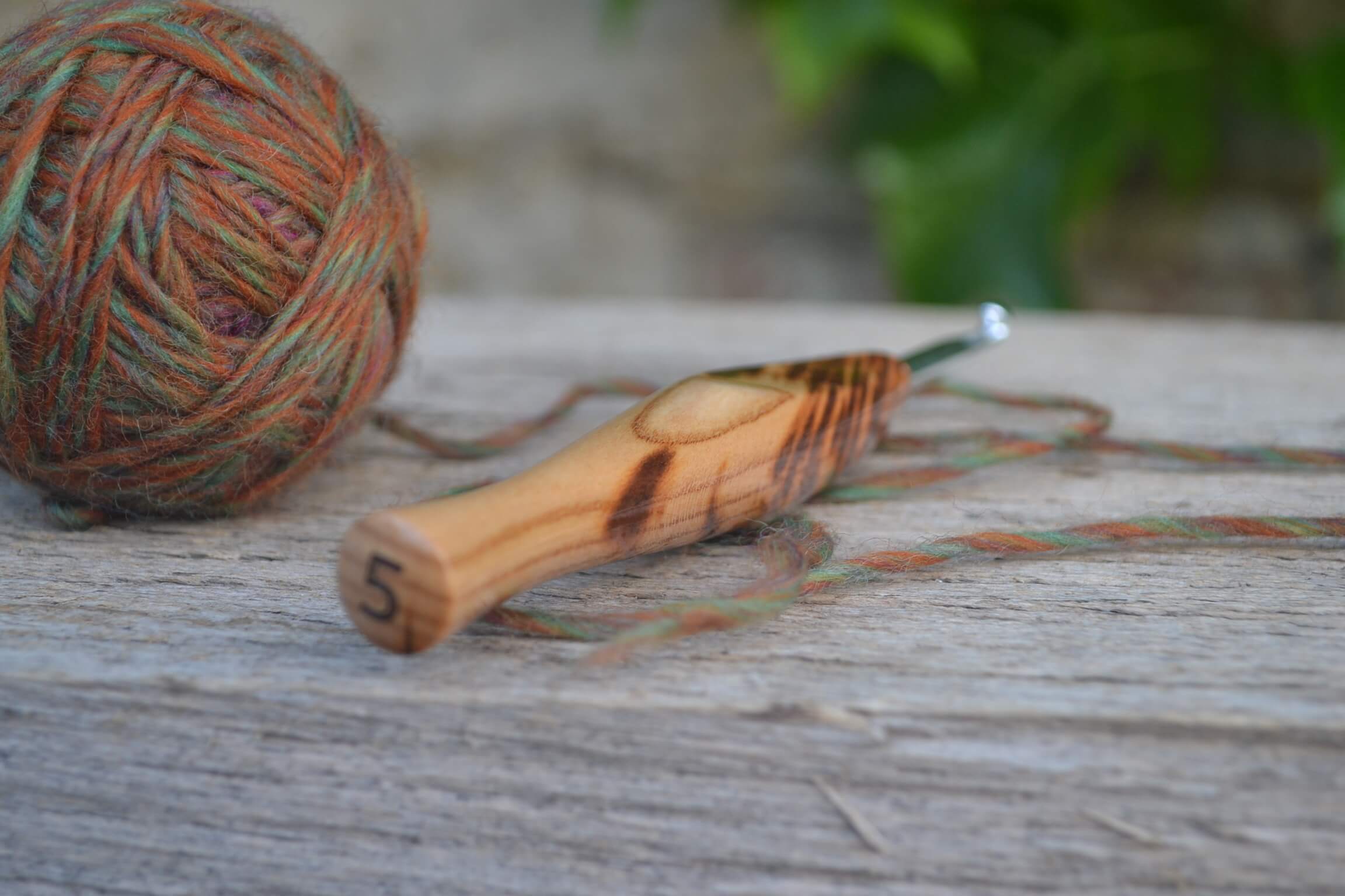 5 mm = size H Hornbeam wood (Wenge color) Ergonomic Crochet Hook 18 mm 16 cm #1211-4901