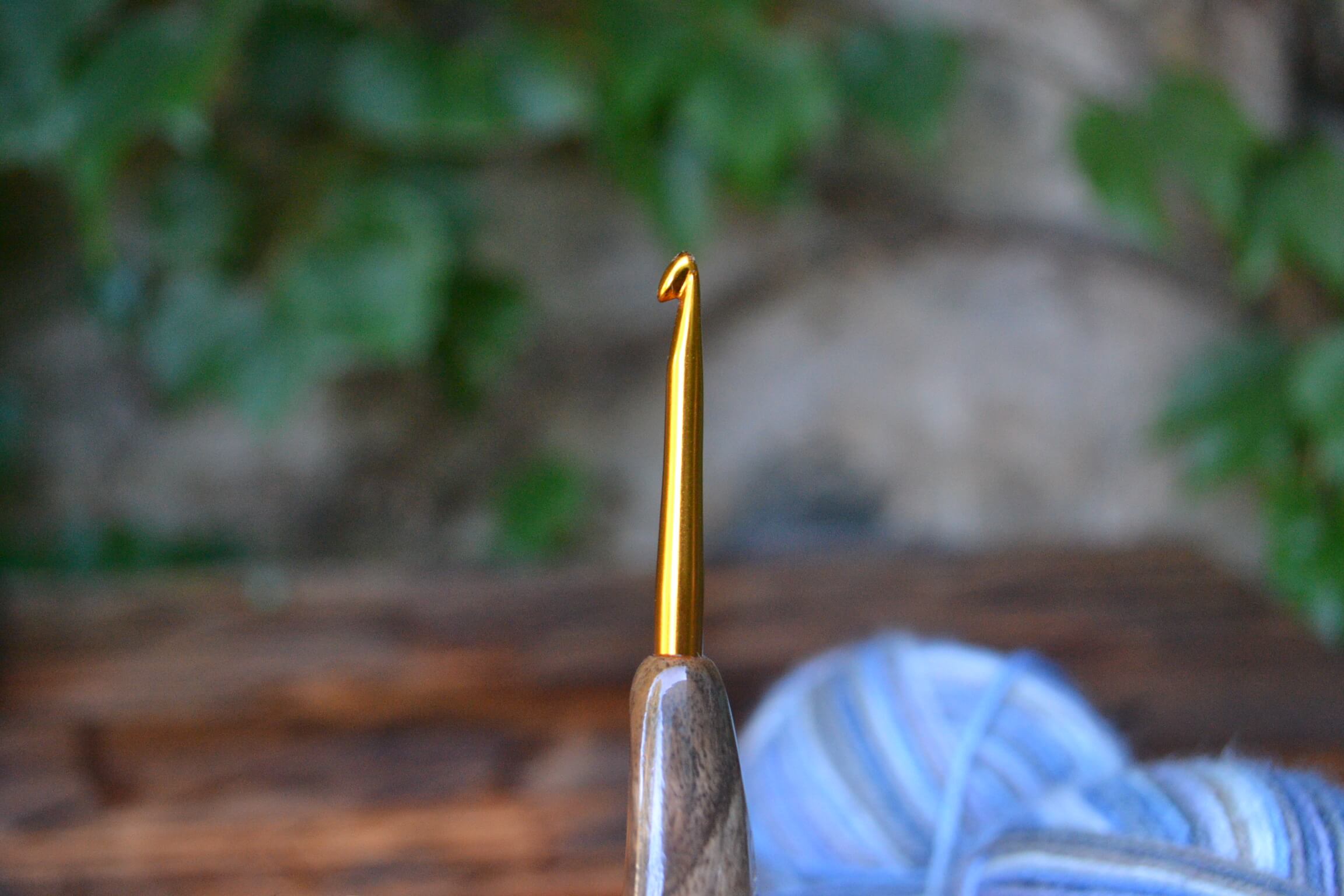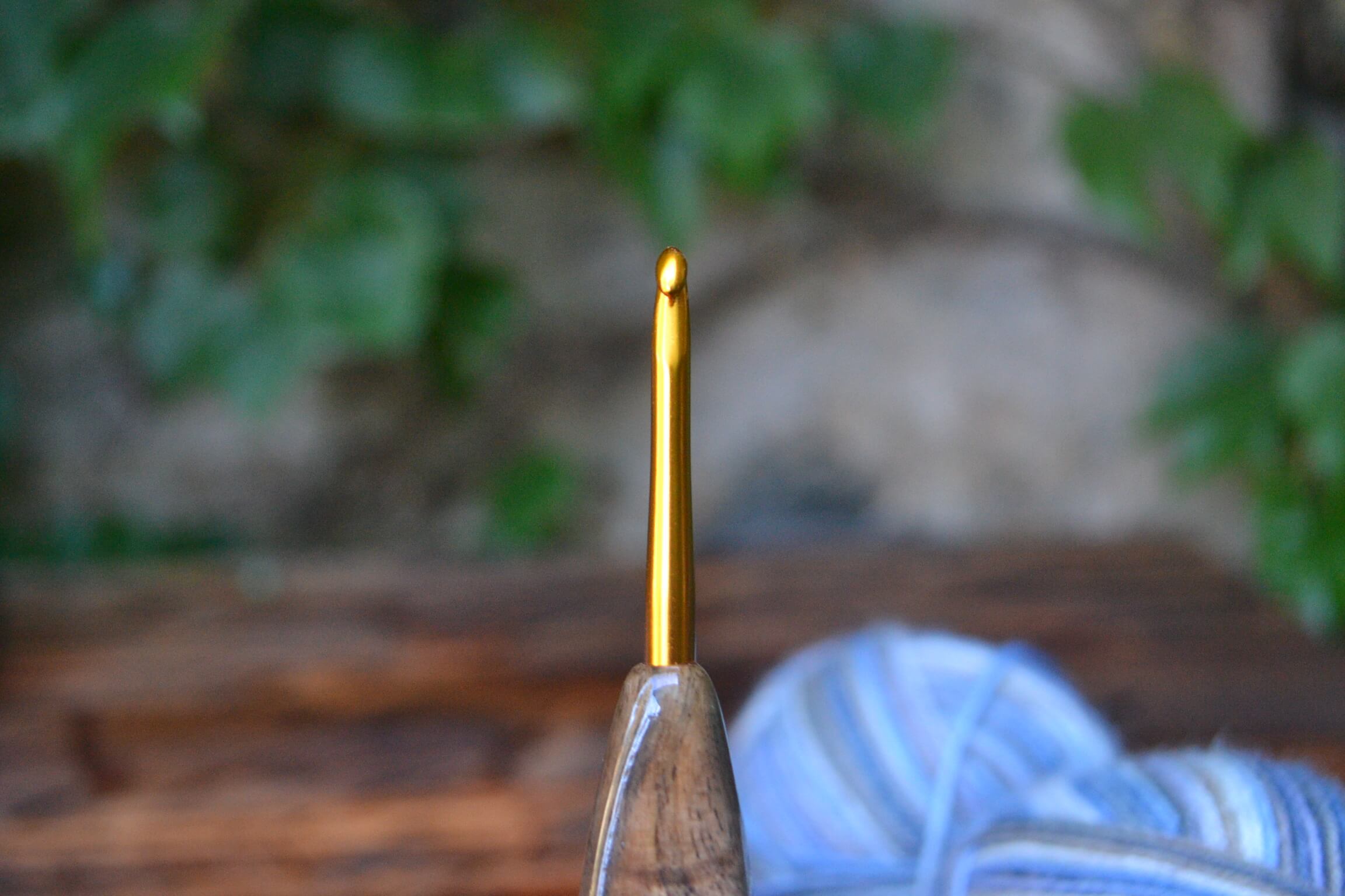 3.5 mm E Tulip Gold and Walnut wood Ergonomic Crochet Needle 18 mm 14.5 cm #1272-4962