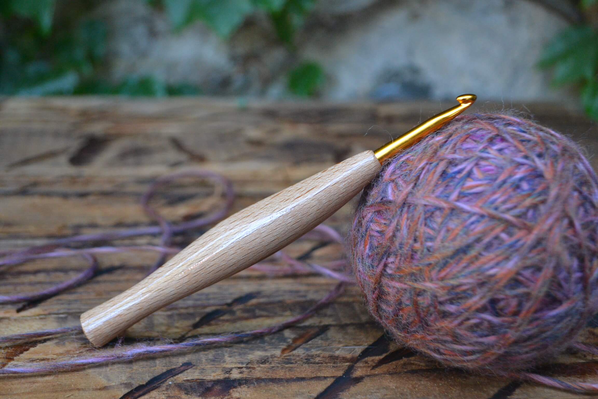 5 mm = size H Hornbeam wood (Wenge color) Ergonomic Crochet Hook 18 mm 16 cm #1211-4901
