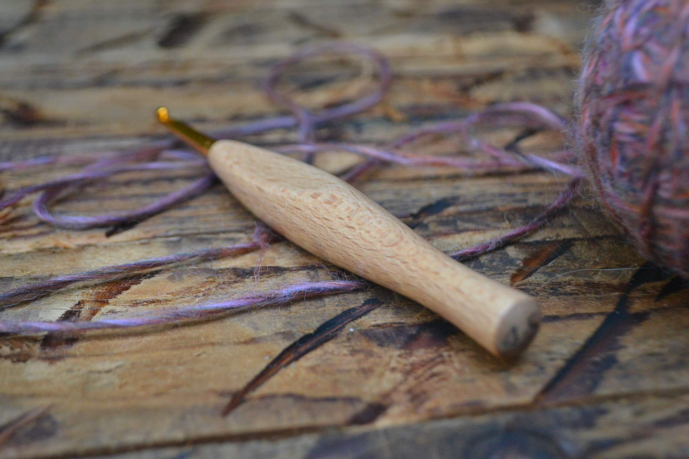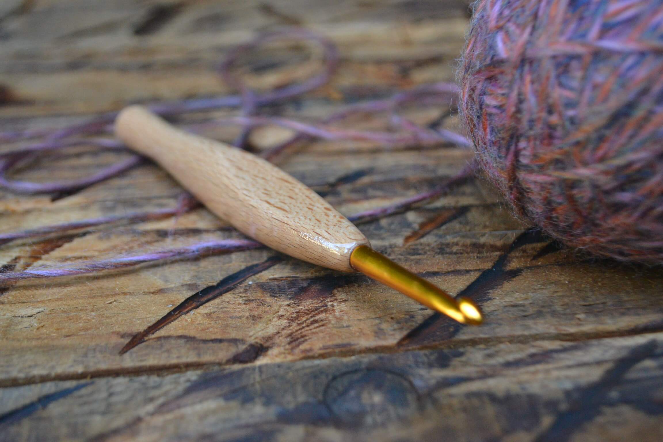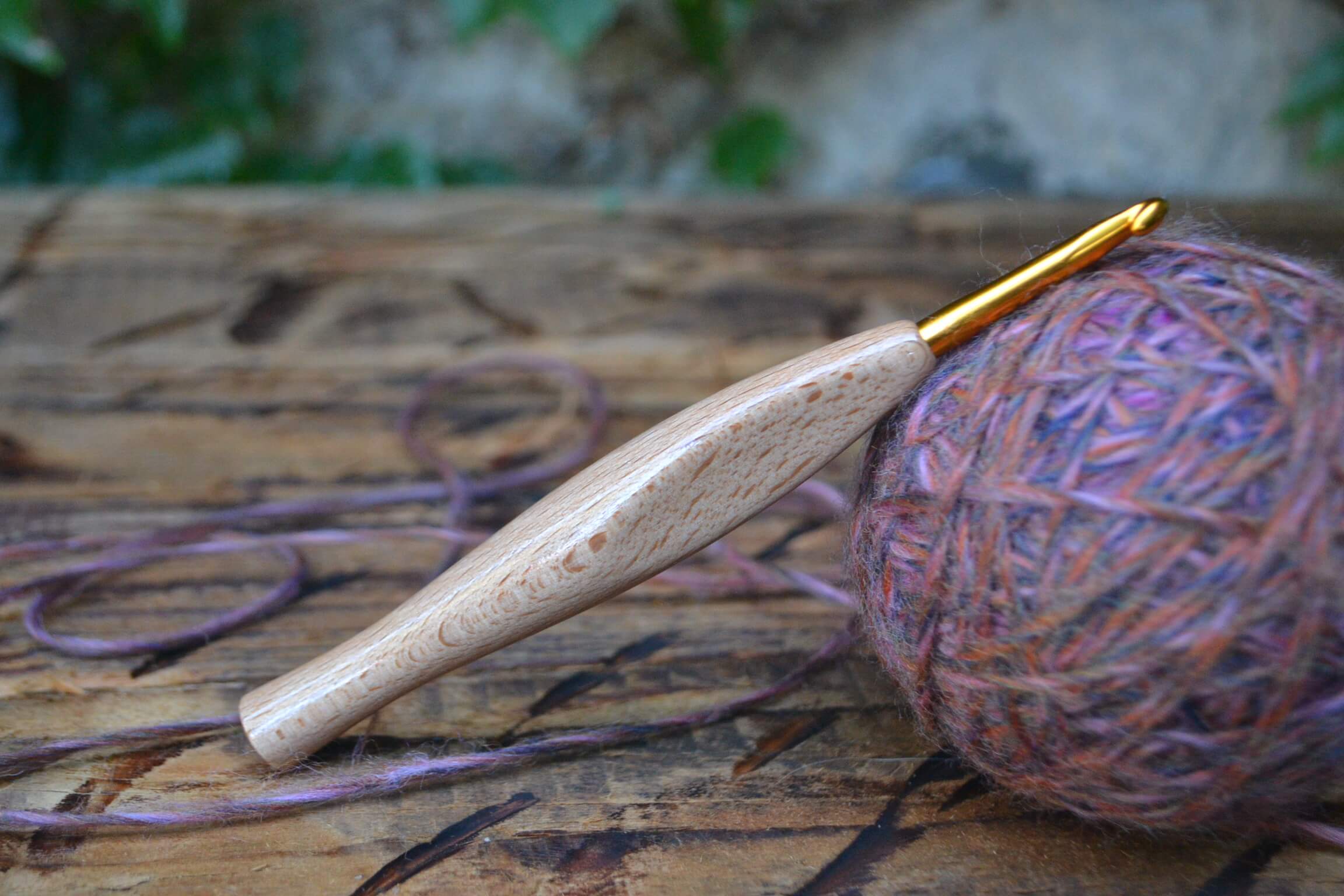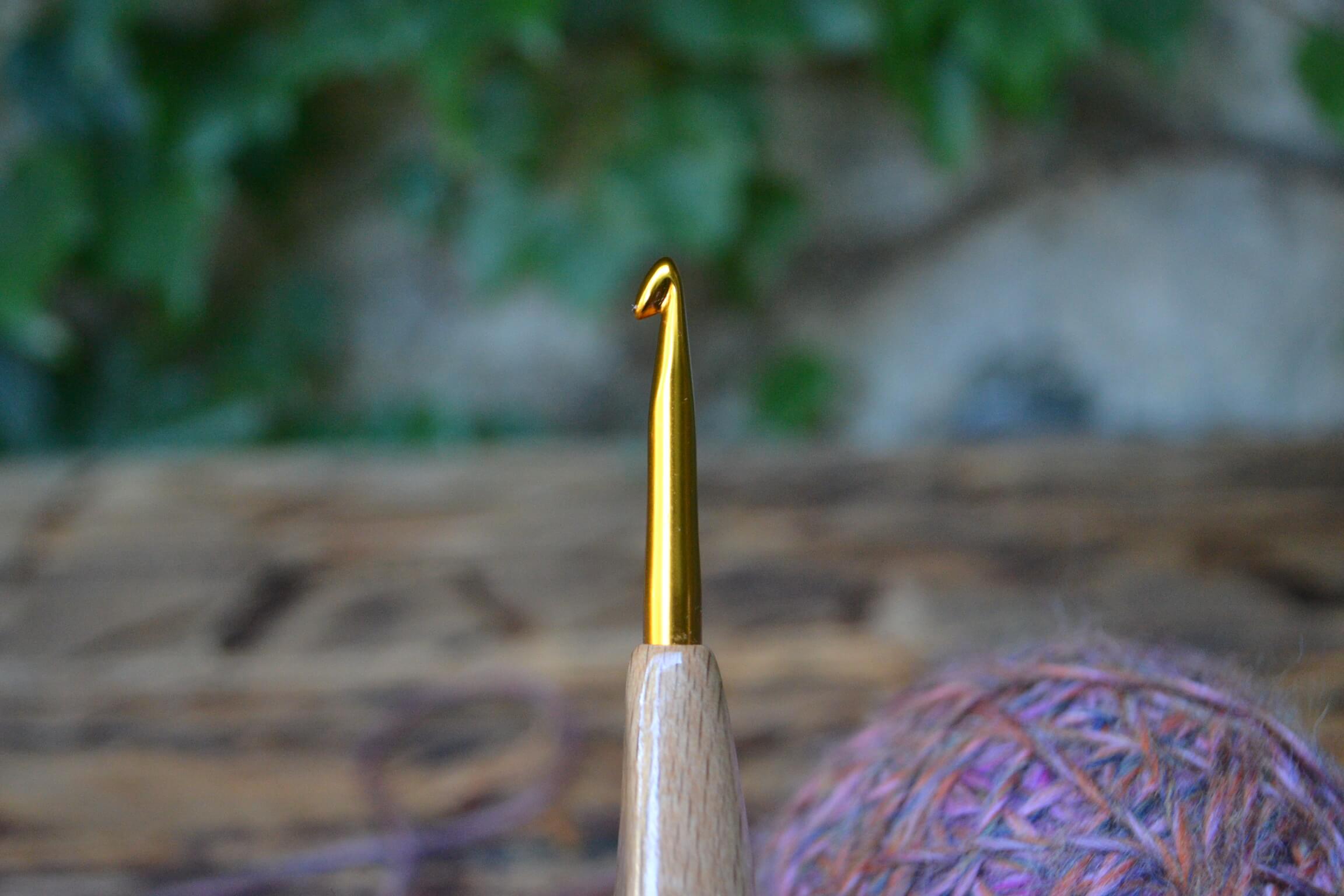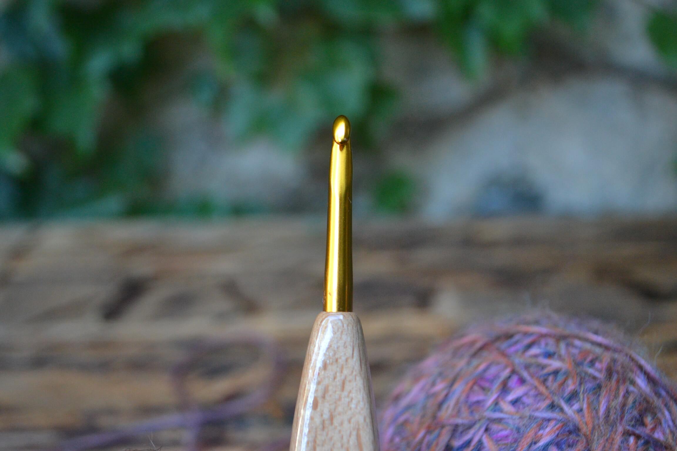 4.5 mm size 7 Tulip Gold and Beech wood Ergonomic Crochet Needle 18 mm 14.5 cm #1274-4964