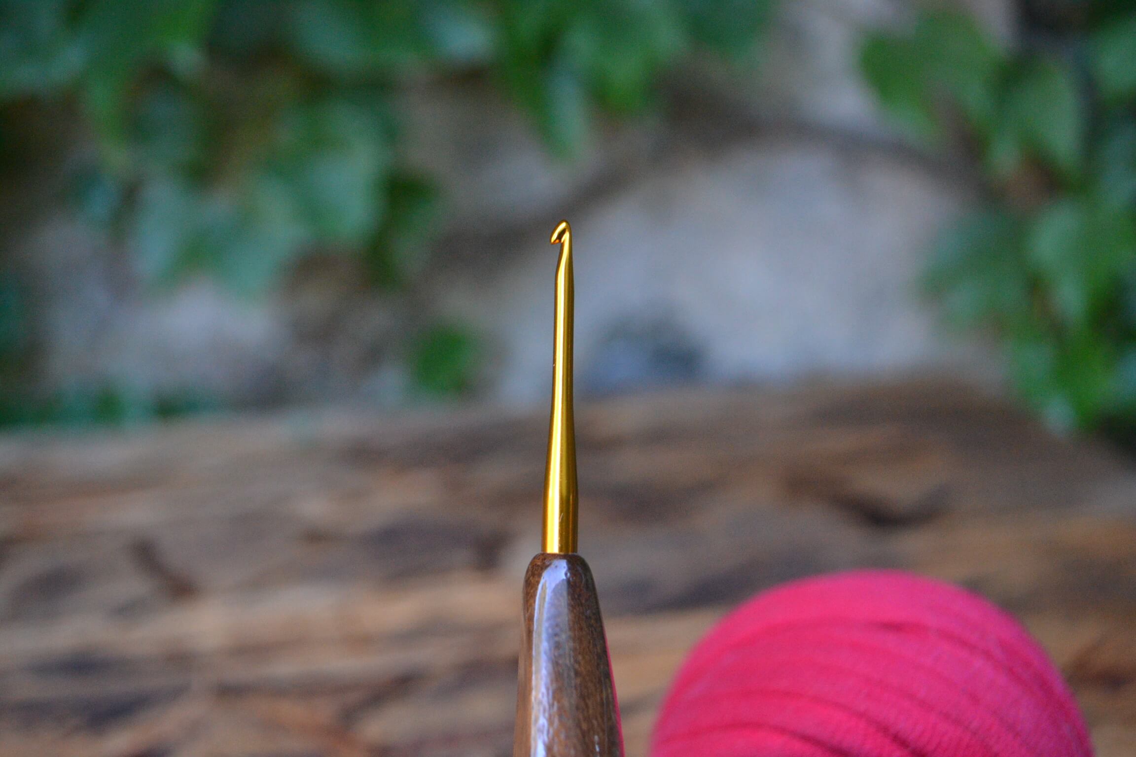 2.2 mm Tulip Gold and English Elm wood Ergonomic Crochet Needle 18 mm 14.5 cm #1276-4966