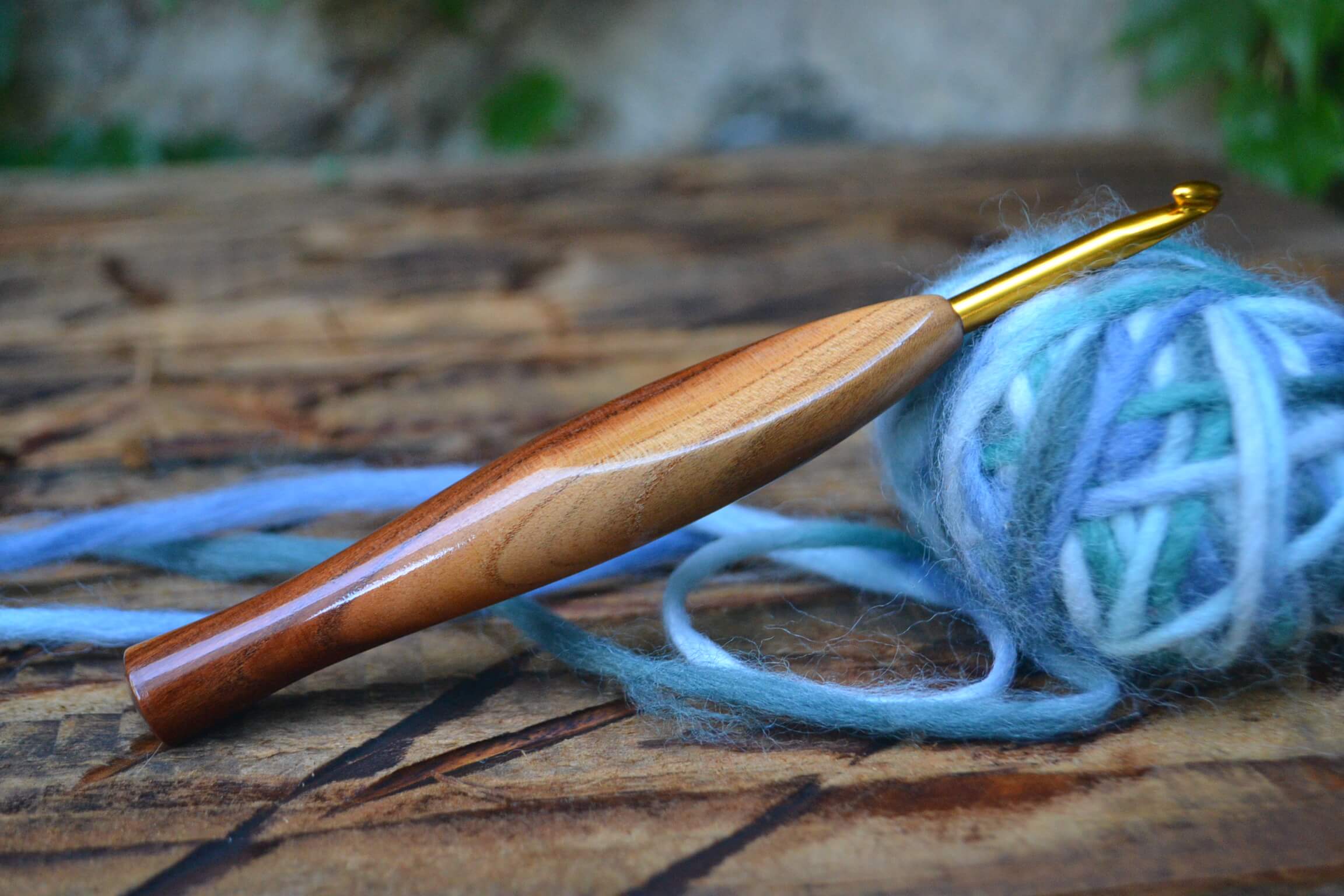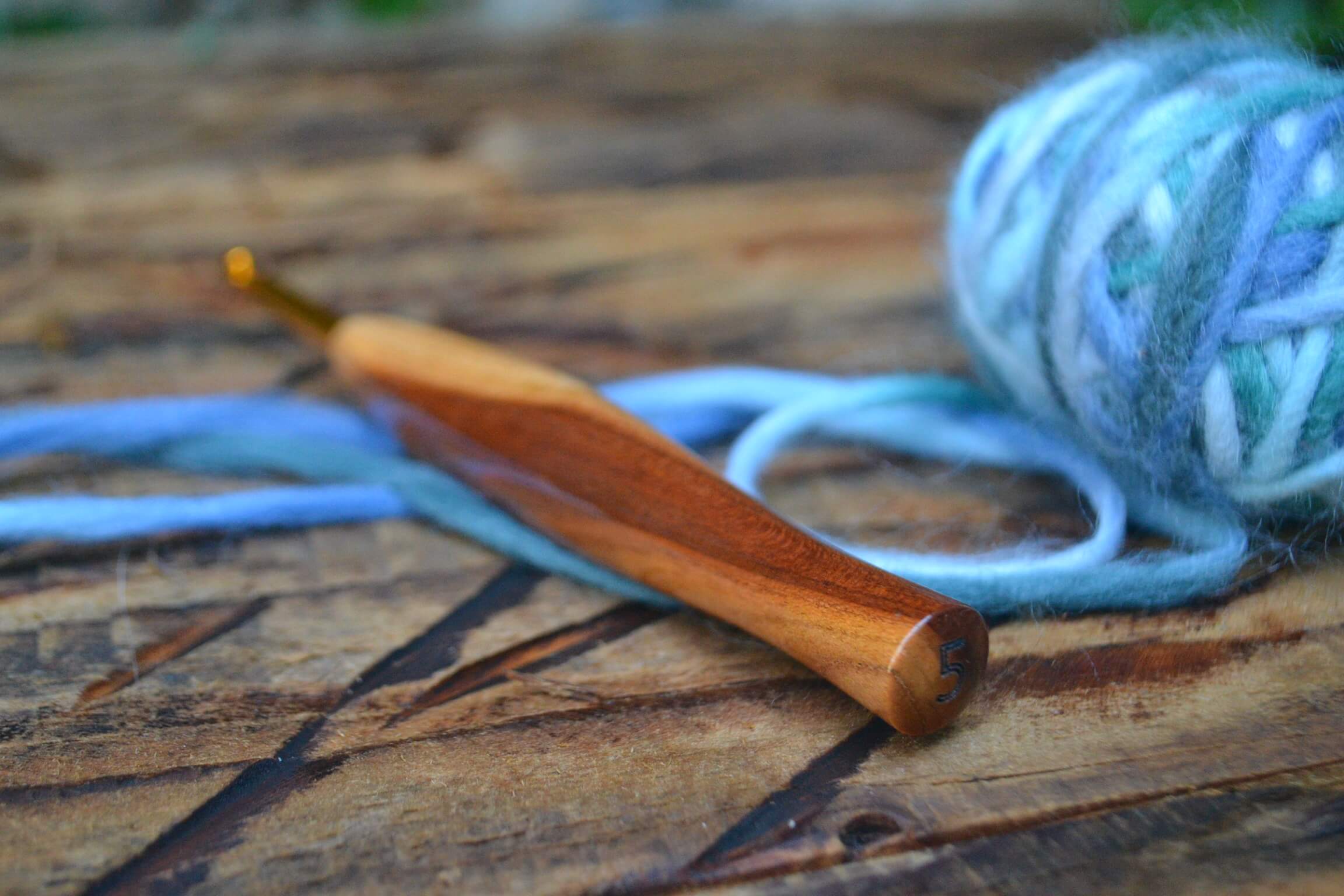 5 mm = size H Hornbeam wood (Wenge color) Ergonomic Crochet Hook 18 mm 16 cm #1211-4901