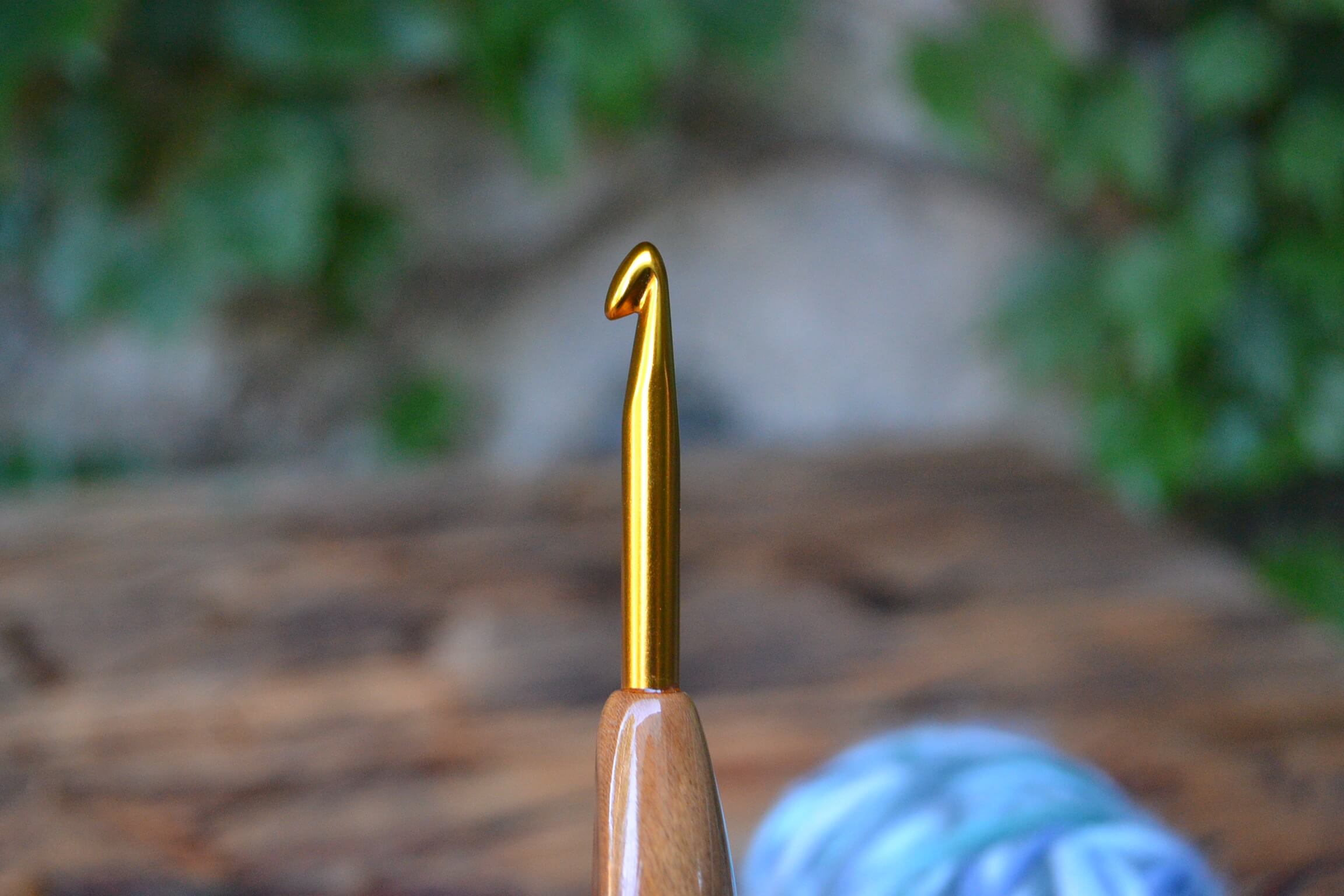 5 mm H Tulip Gold and Dark Apricot wood Ergonomic Crochet Needle 18 mm 14.5 cm #1278-4968
