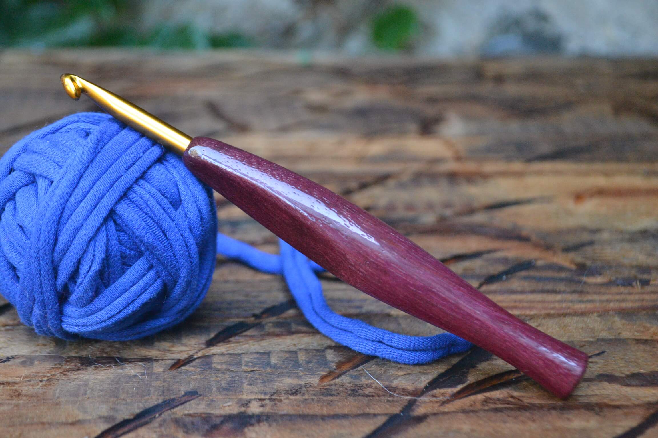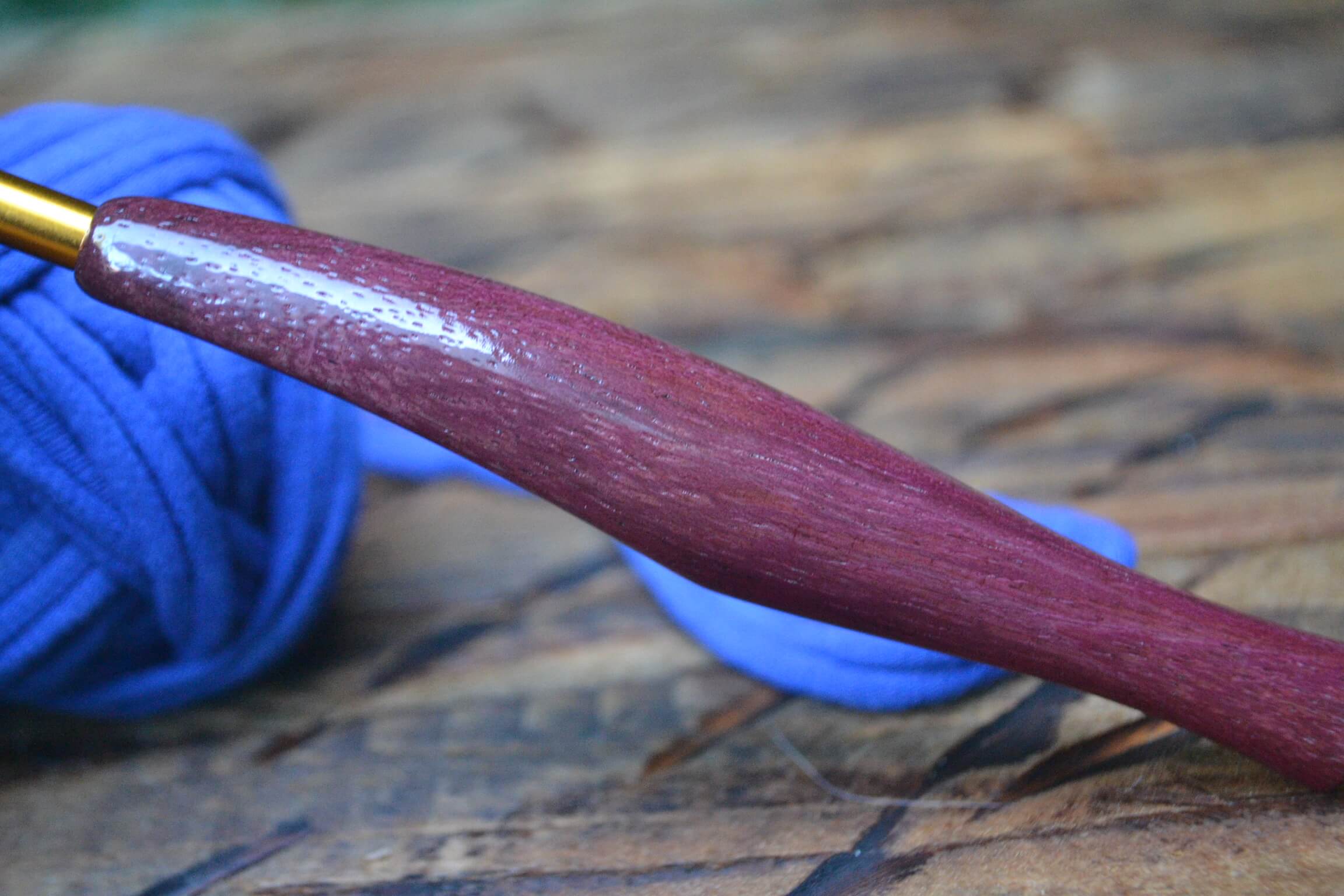 5.5 mm I Tulip Gold and Purpleheart wood Ergonomic Crochet Needle 18 mm 14.5 cm #1282-4972