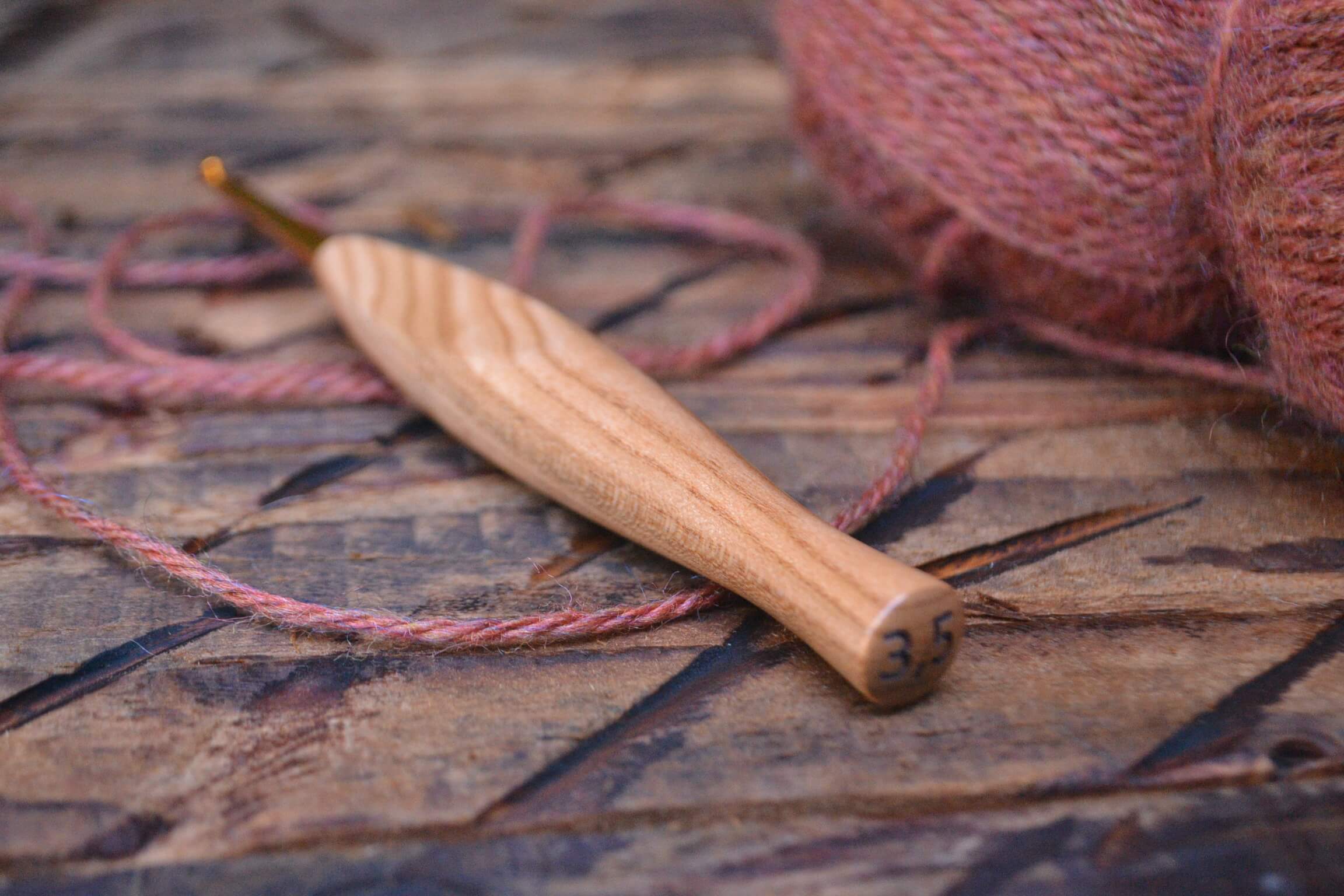 3.5 mm E Tulip Gold and Dark Apricot wood Ergonomic Crochet Needle 18 mm 14.5 cm #1283-4973