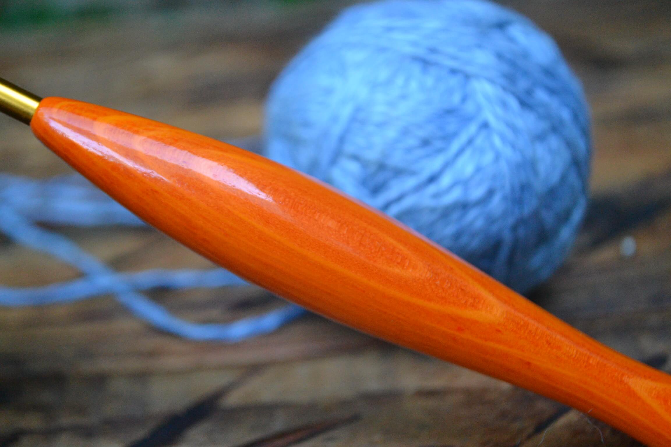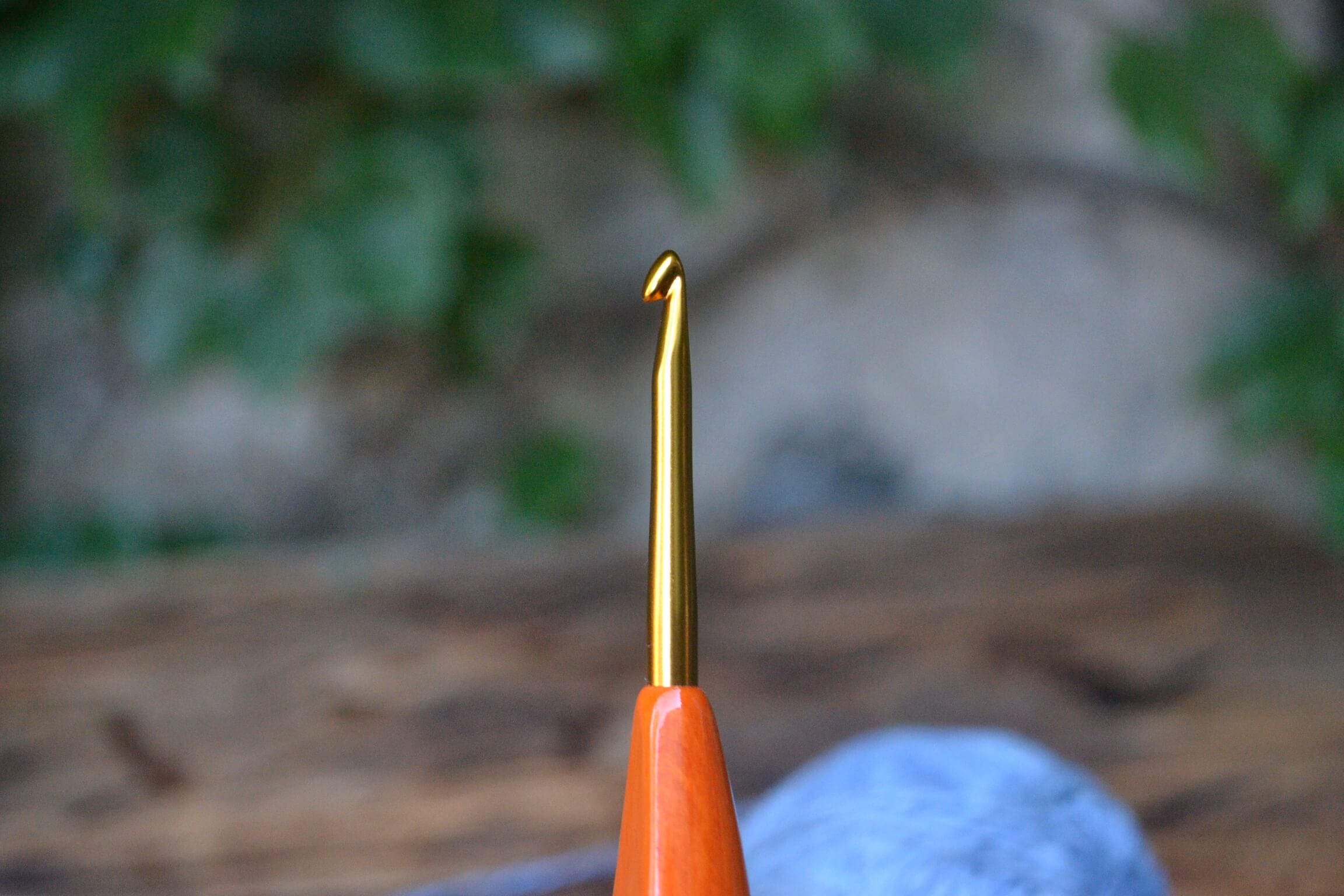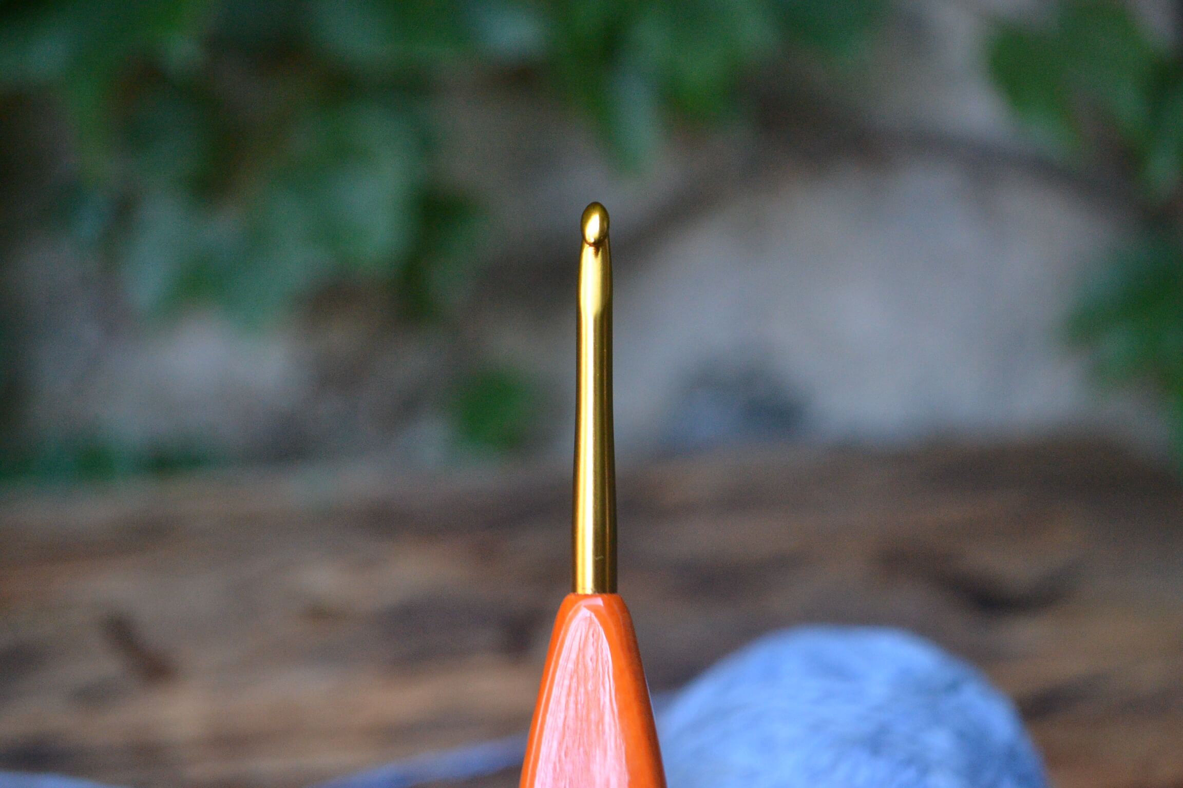 3.5 mm Tulip Gold and Orange Hornbeam wood Ergonomic Crochet Needle 18 mm 14.5 cm #1287-4977