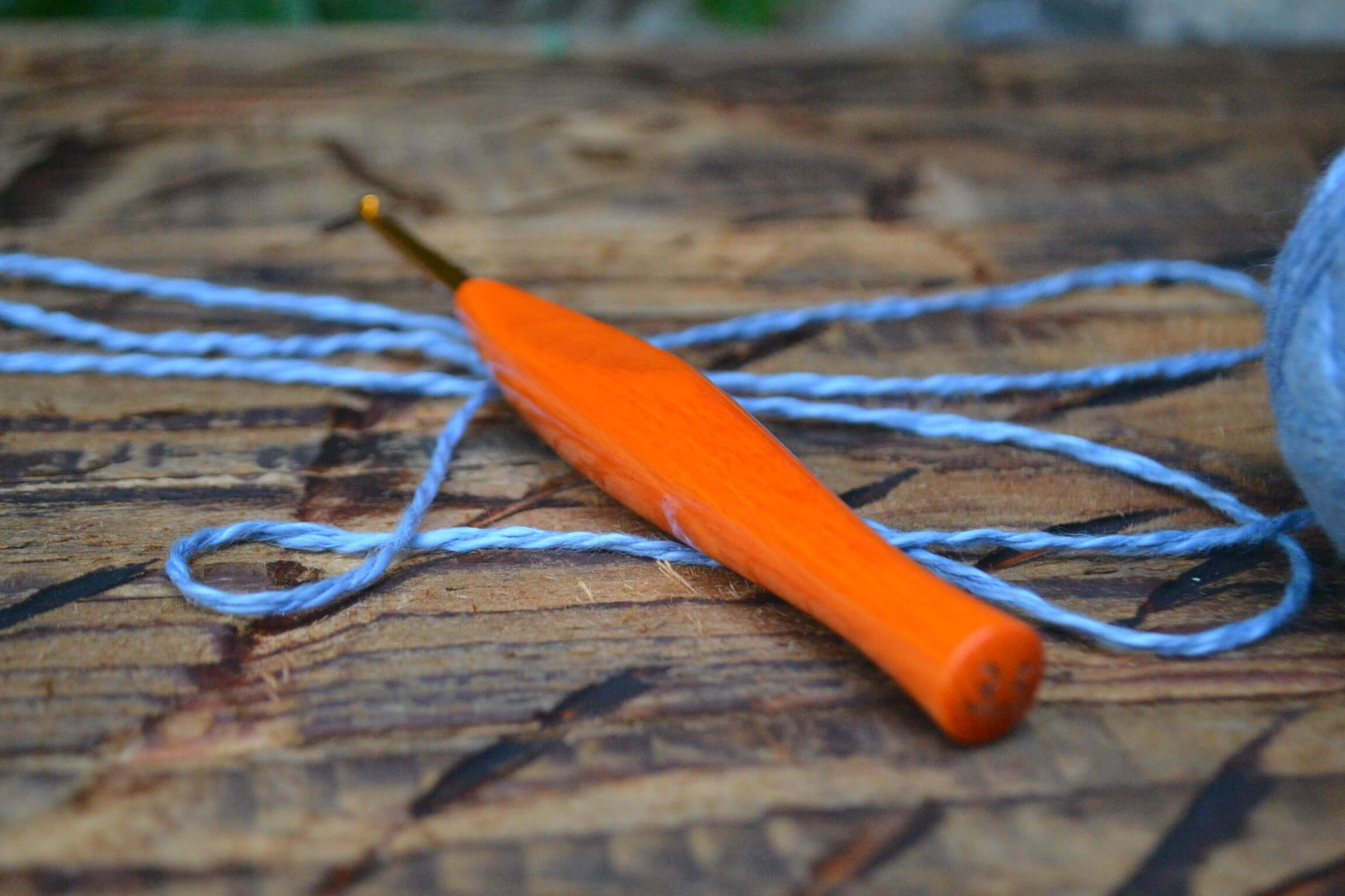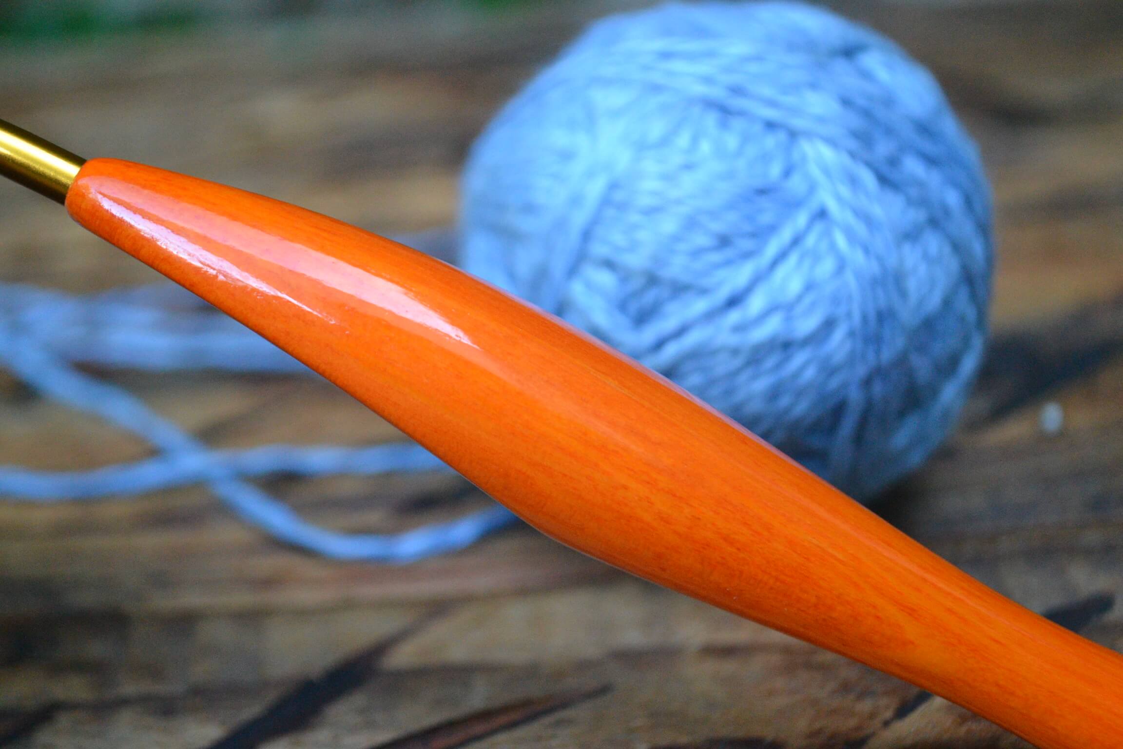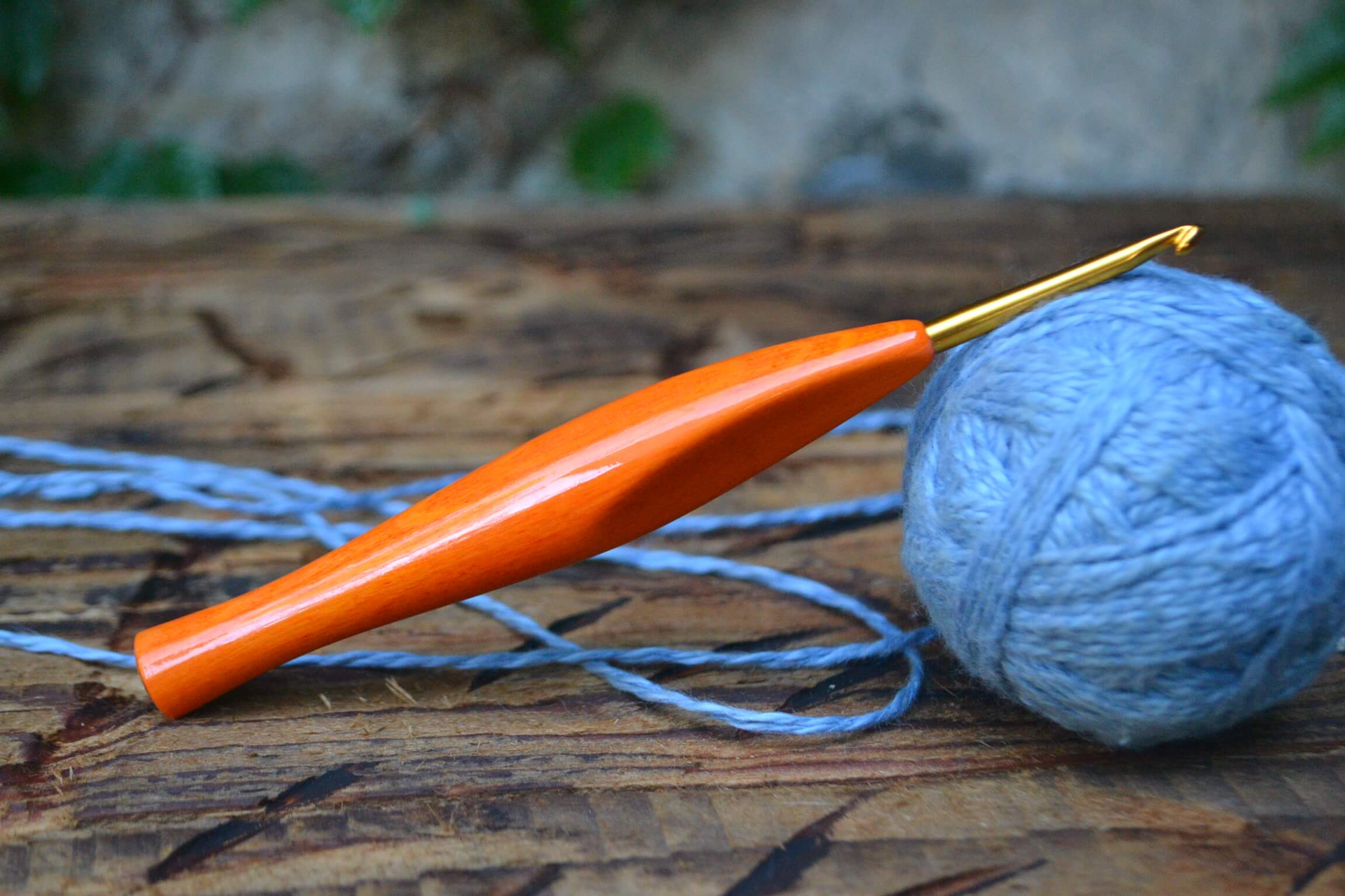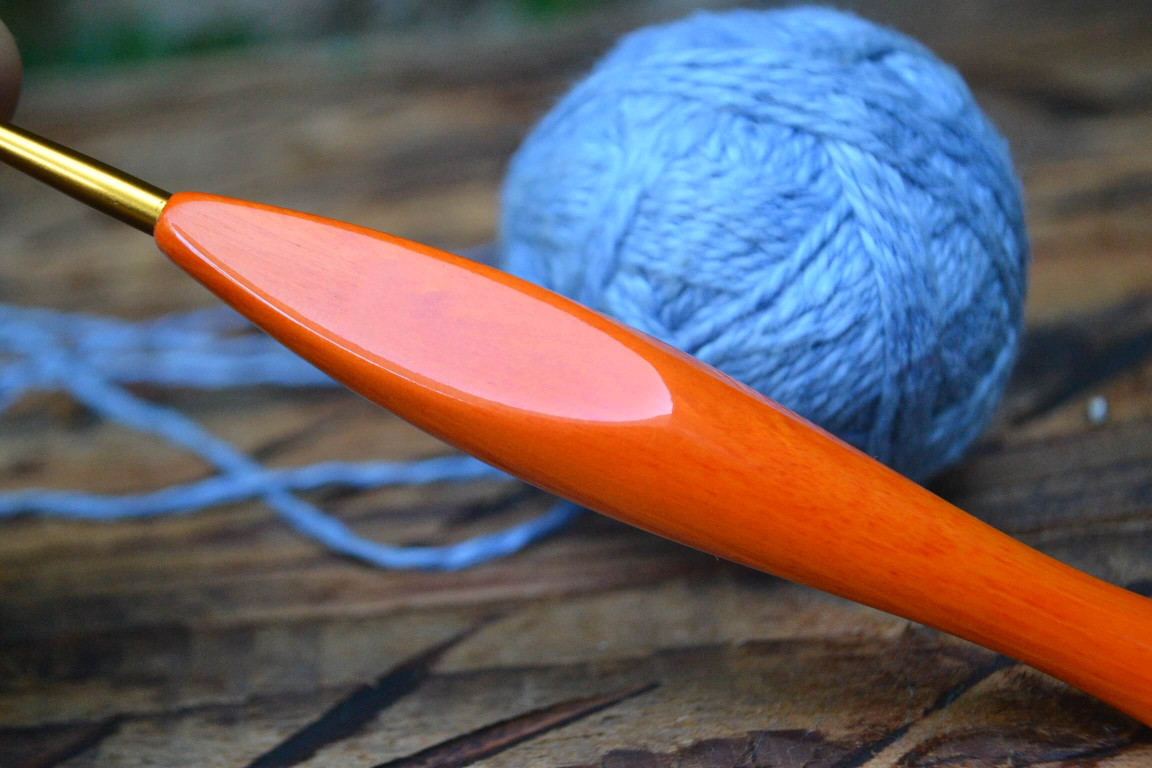 3.5 mm Tulip Gold and Orange Hornbeam wood Ergonomic Crochet Needle 18 mm 14.5 cm #1287-4977