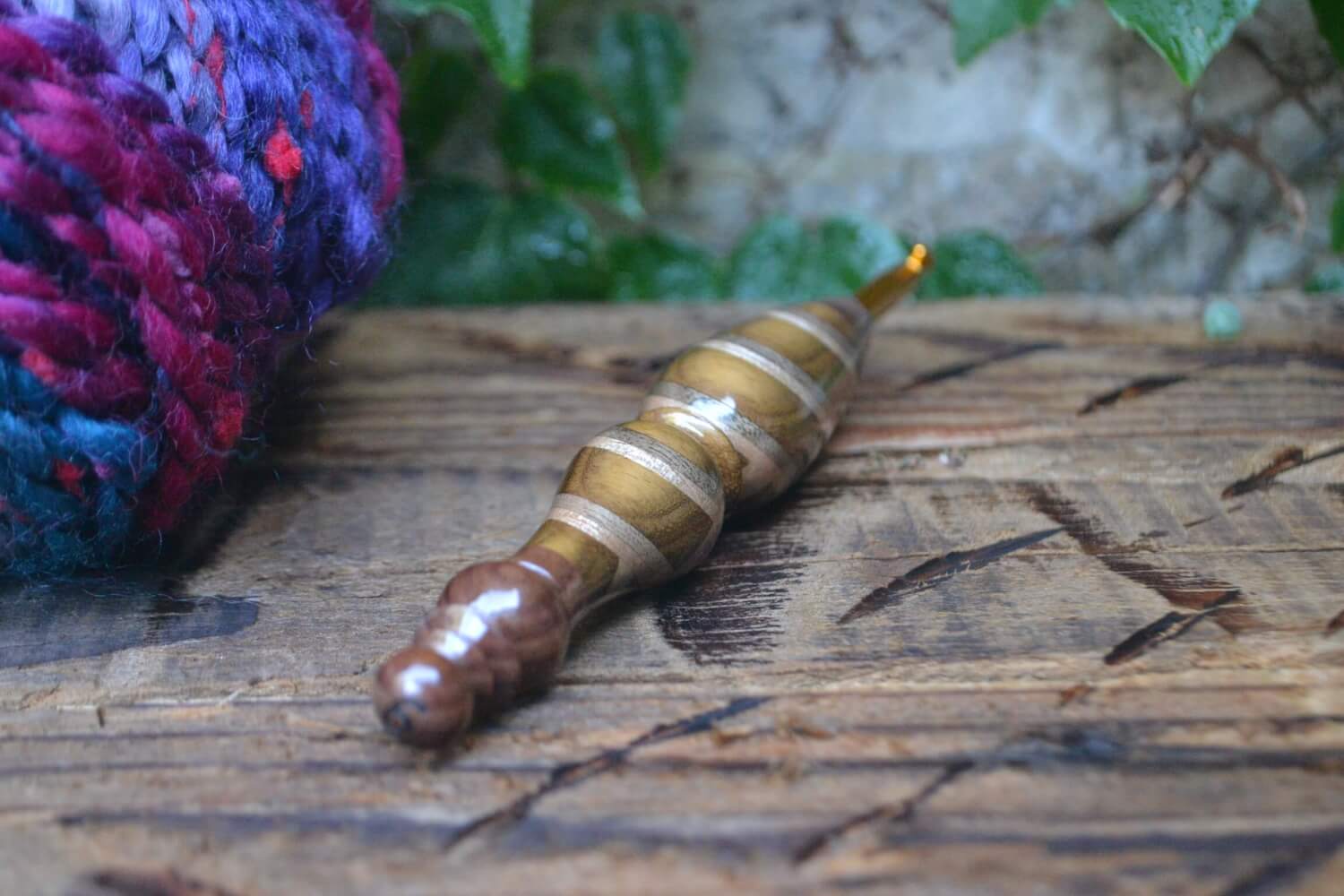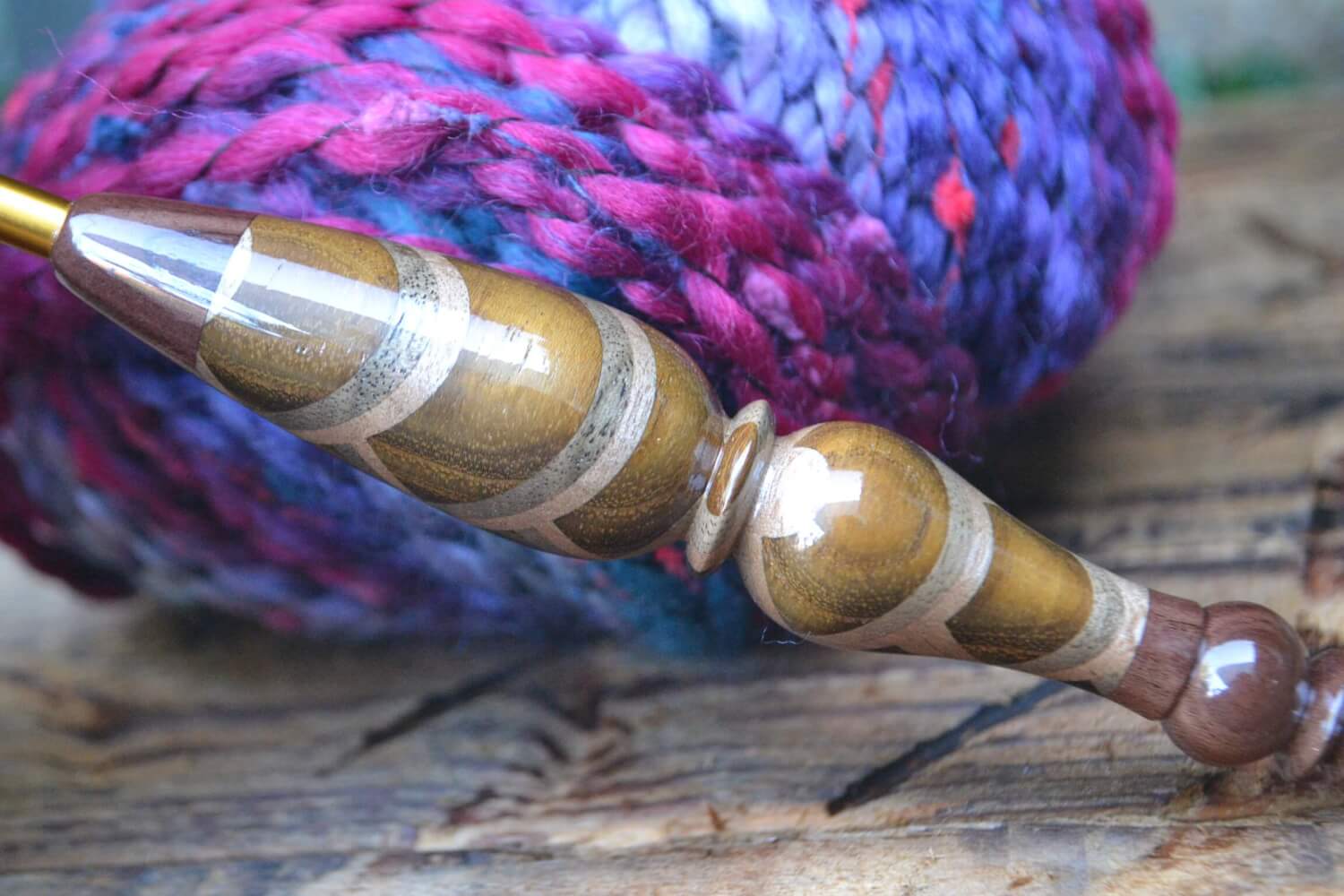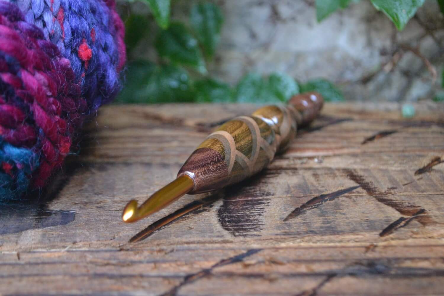 6 mm = size J Tulip Gold Rosewood Santos and Robinia / Ash / Walnut wood mosaic Ergonomic Crochet Hook 24 mm 17,5 cm #1325-5015