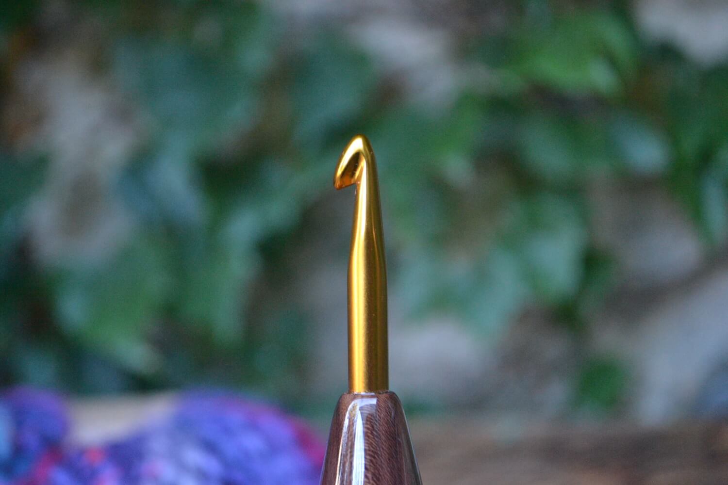 4 mm = size G Tulip Gold, Purpleheart and Stab. Burl wood Ergonomic Crochet Hook 23 mm 17 cm #1346-5036
