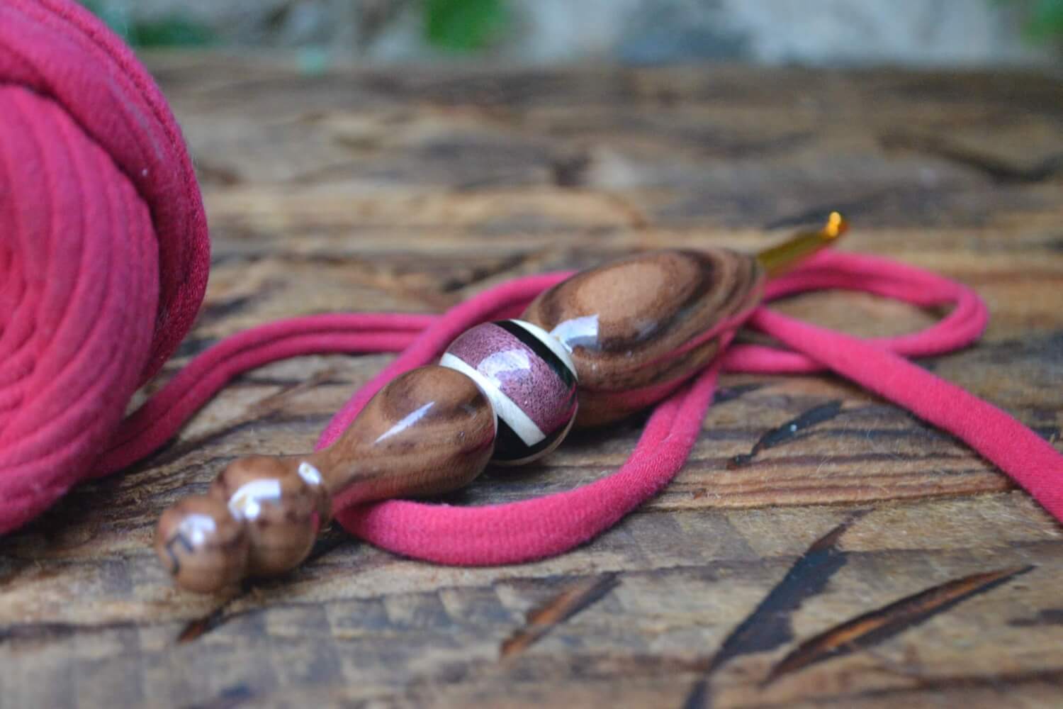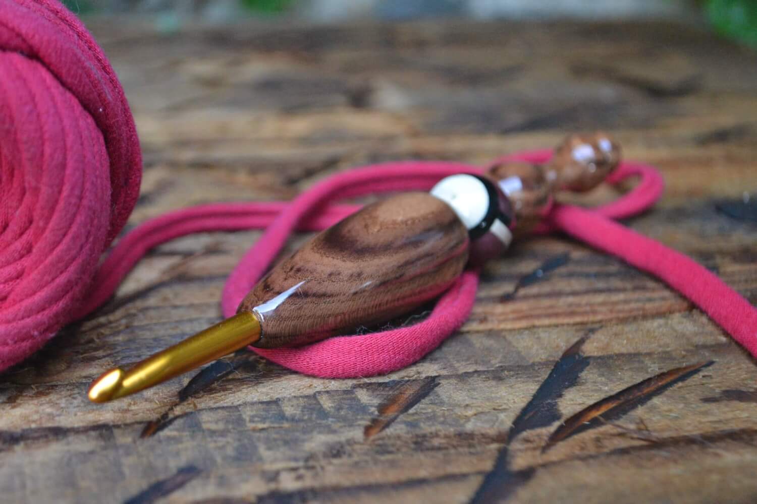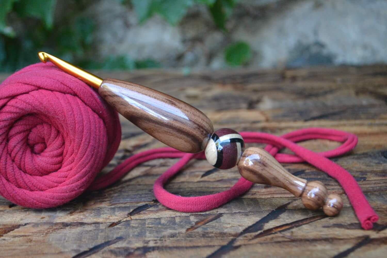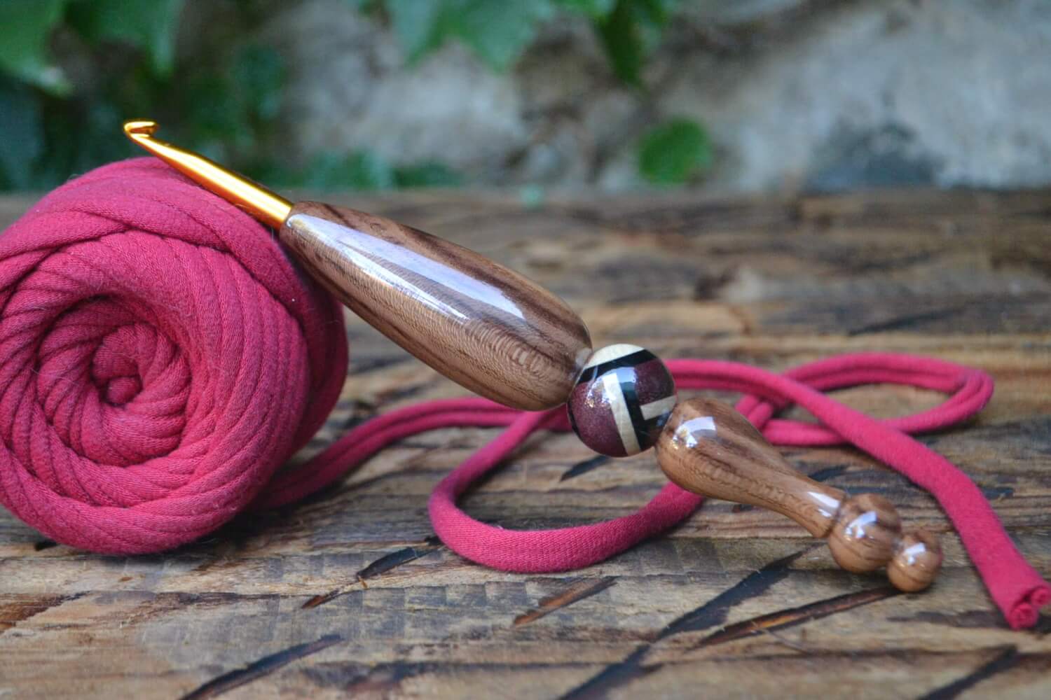 5 mm = size Tulip Gold, Hornbeam and Black/White Hornbeam/Purpleheart wood mosaic Ergonomic Crochet Hook 23 mm 17 cm #1351-5041