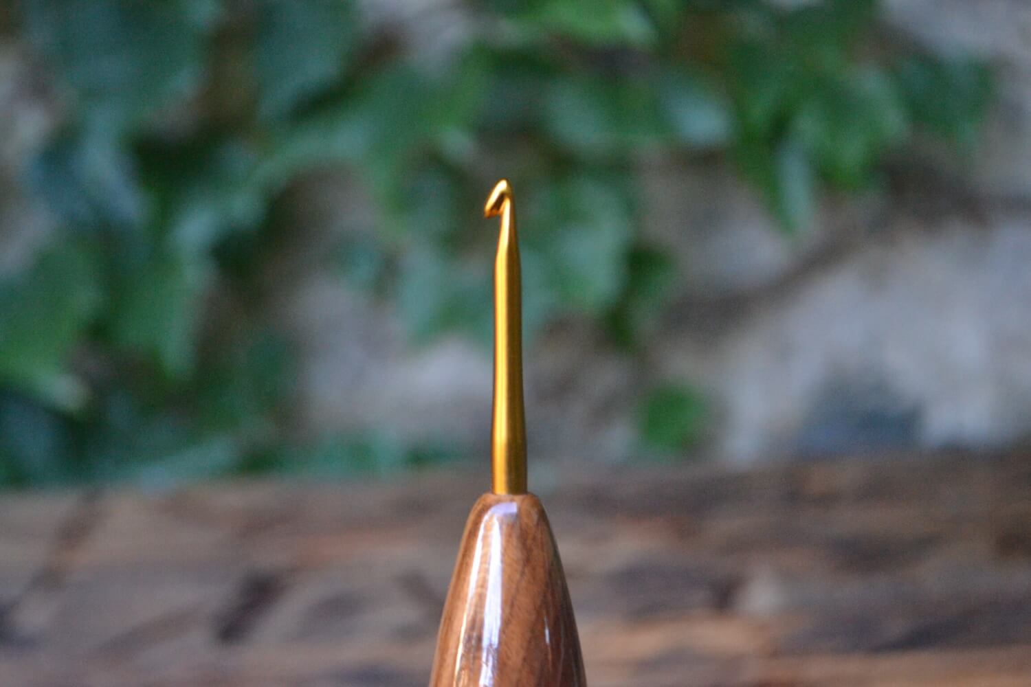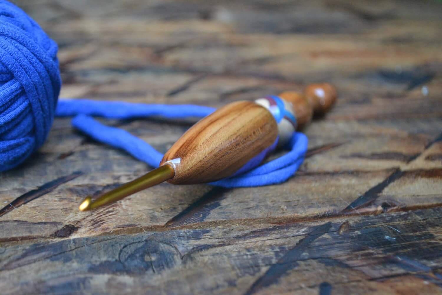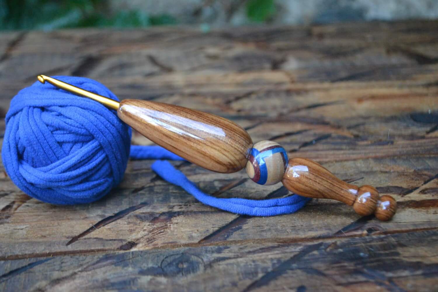 5 mm = size H Tulip Gold, Blue Hornbeam, Purpleheart and Robinia wood mosaic Ergonomic Crochet Hook 23 mm 16 cm #1341-5031