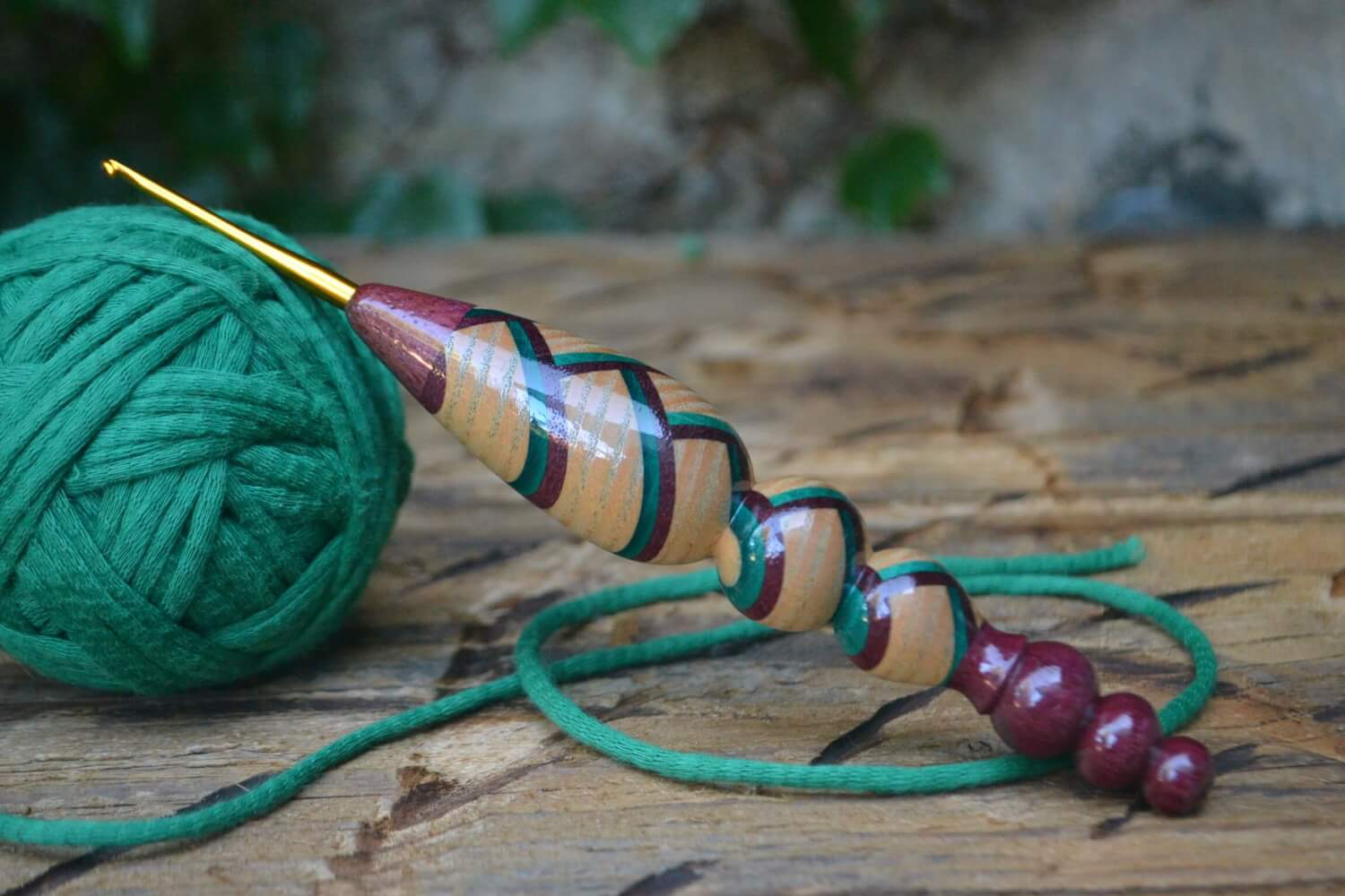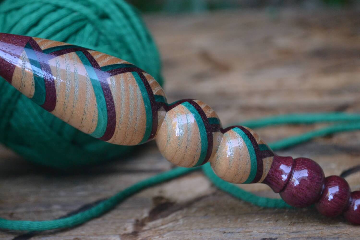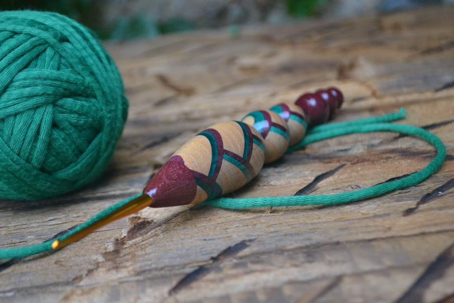 5 mm = size H Tulip Gold, Blue Hornbeam, Purpleheart and Robinia wood mosaic Ergonomic Crochet Hook 23 mm 16 cm #1341-5031