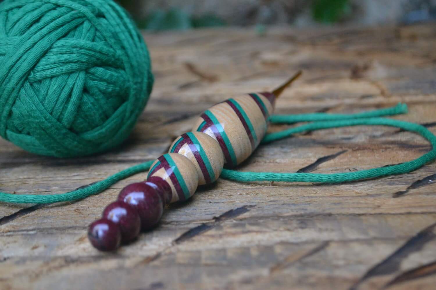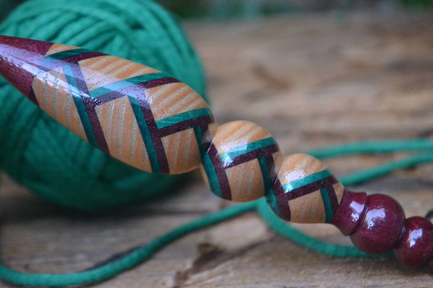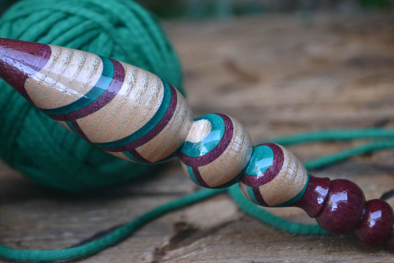 5 mm = size H Tulip Gold, Blue Hornbeam, Purpleheart and Robinia wood mosaic Ergonomic Crochet Hook 23 mm 16 cm #1341-5031