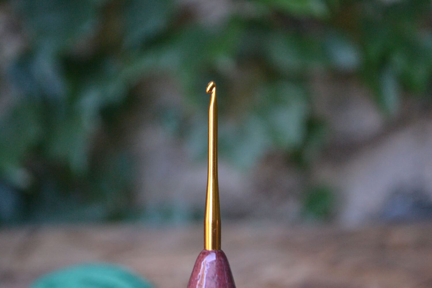 4 mm = size G Tulip Gold, Purpleheart and Stab. Burl wood Ergonomic Crochet Hook 23 mm 17 cm #1346-5036