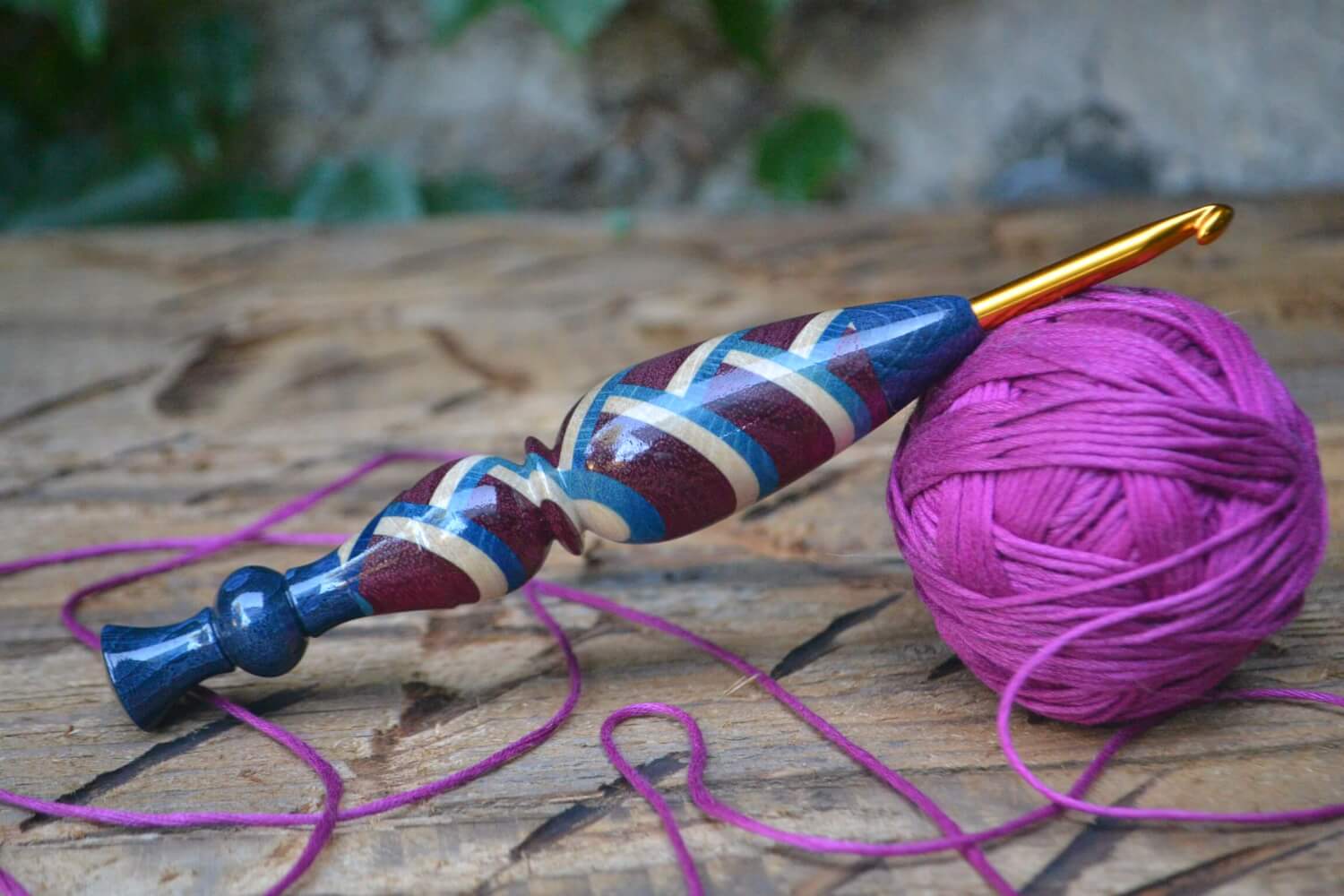 5 mm = size H Tulip Gold, Hornbeam, Purpleheart, Blue Hornbeam wood mosaic Ergonomic Crochet Hook 23 mm 16,5 cm #1333-5023