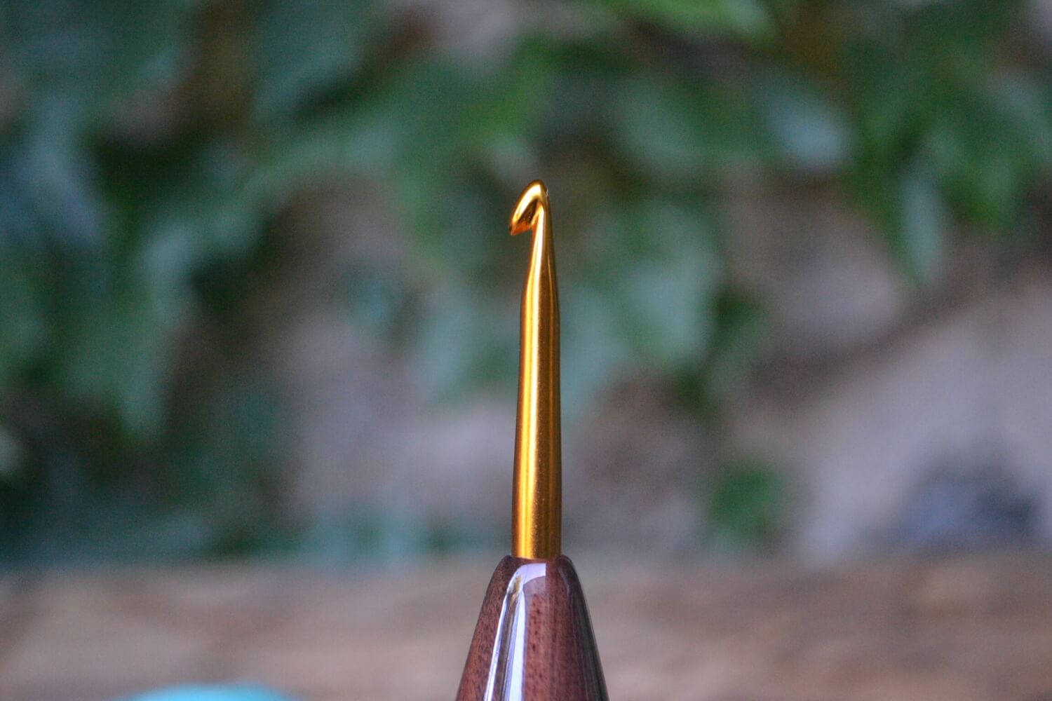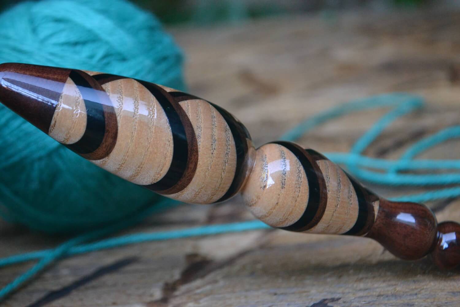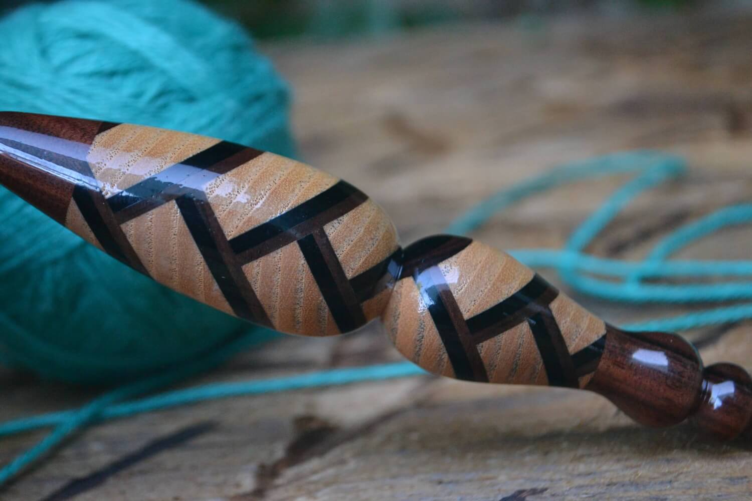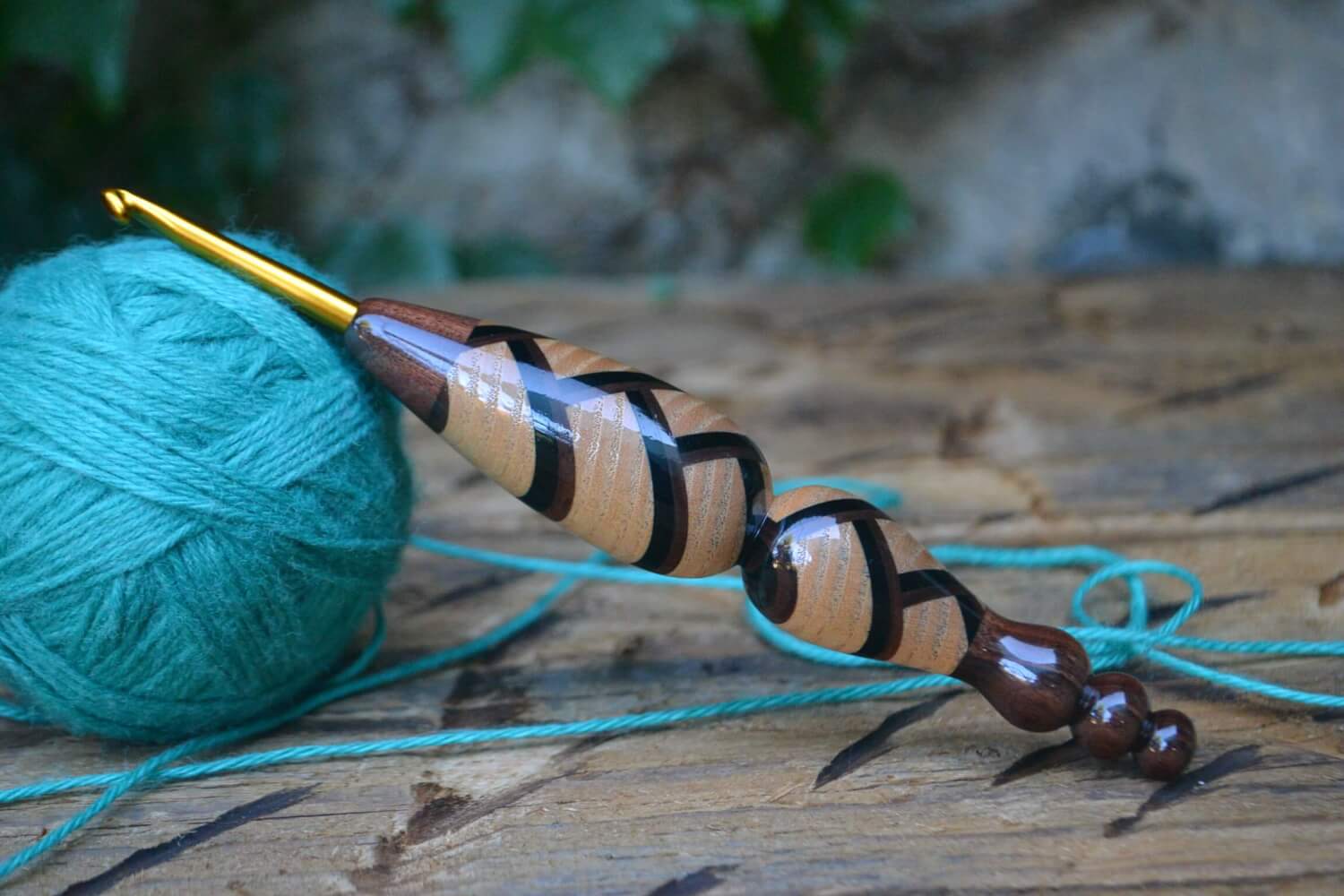 5 mm = size H Tulip Gold, Blue Hornbeam, Purpleheart and Robinia wood mosaic Ergonomic Crochet Hook 23 mm 16 cm #1341-5031