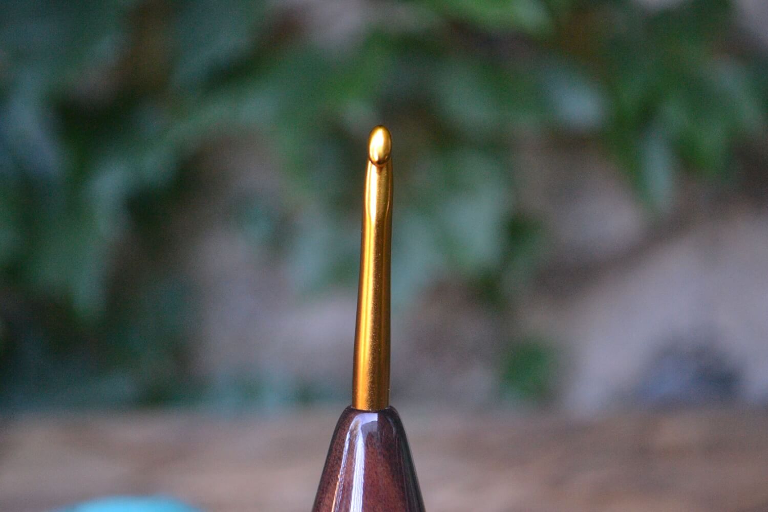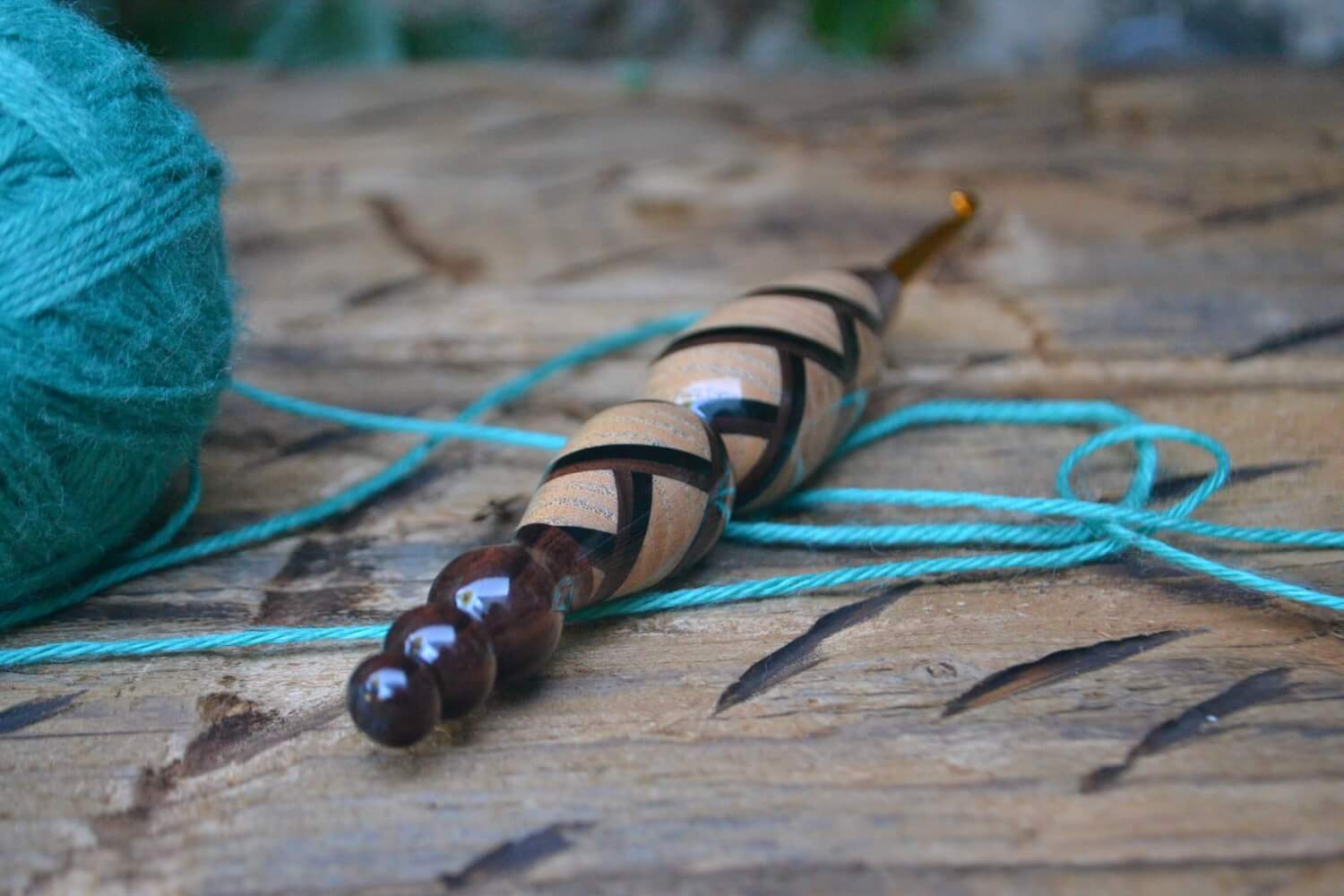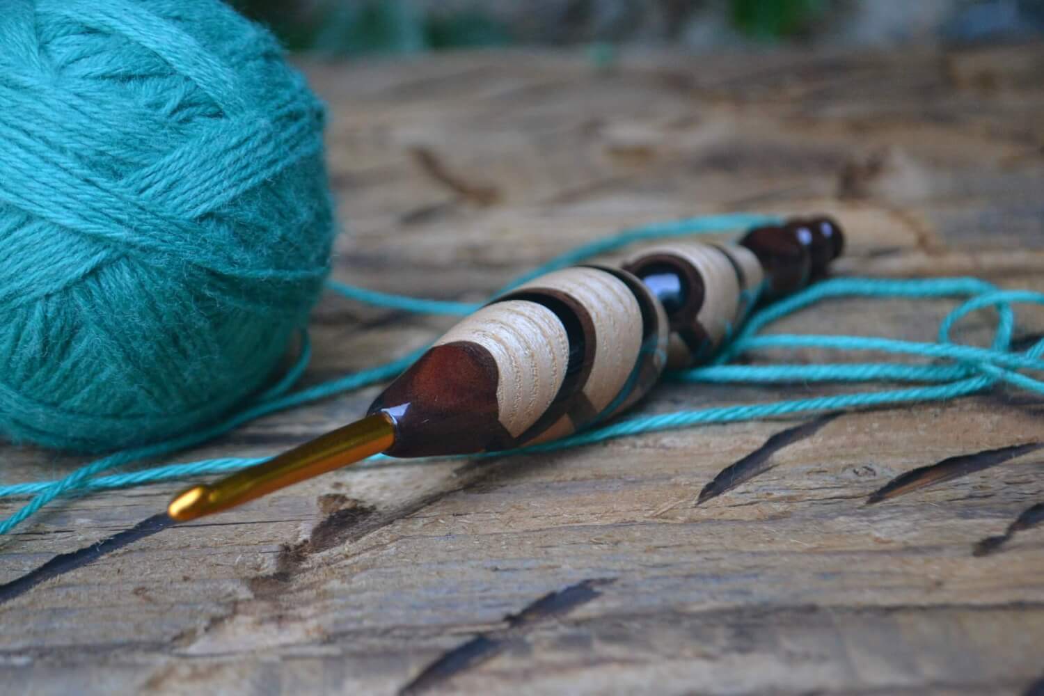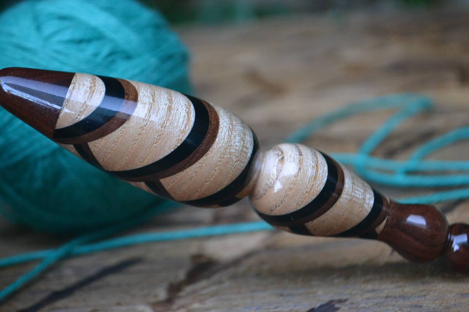 5 mm = size H Tulip Gold, Blue Hornbeam, Purpleheart and Robinia wood mosaic Ergonomic Crochet Hook 23 mm 16 cm #1341-5031