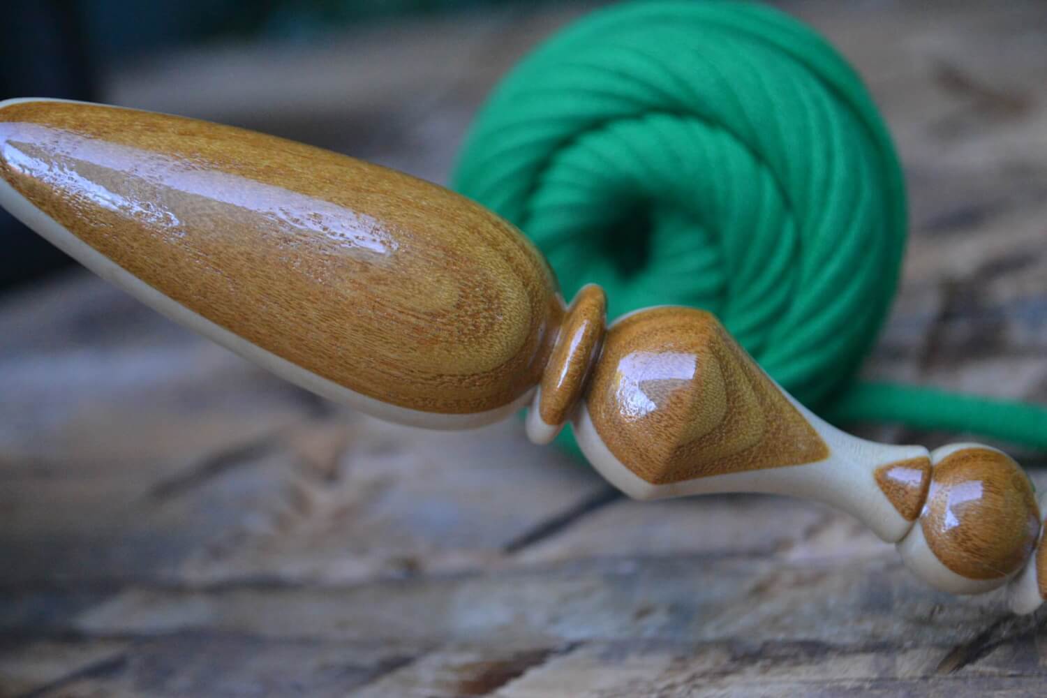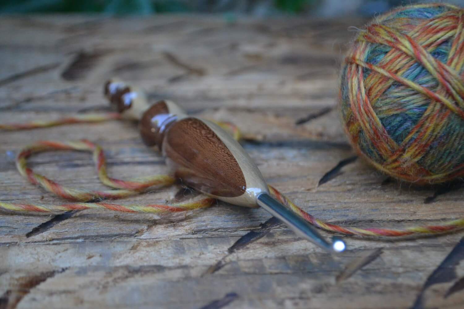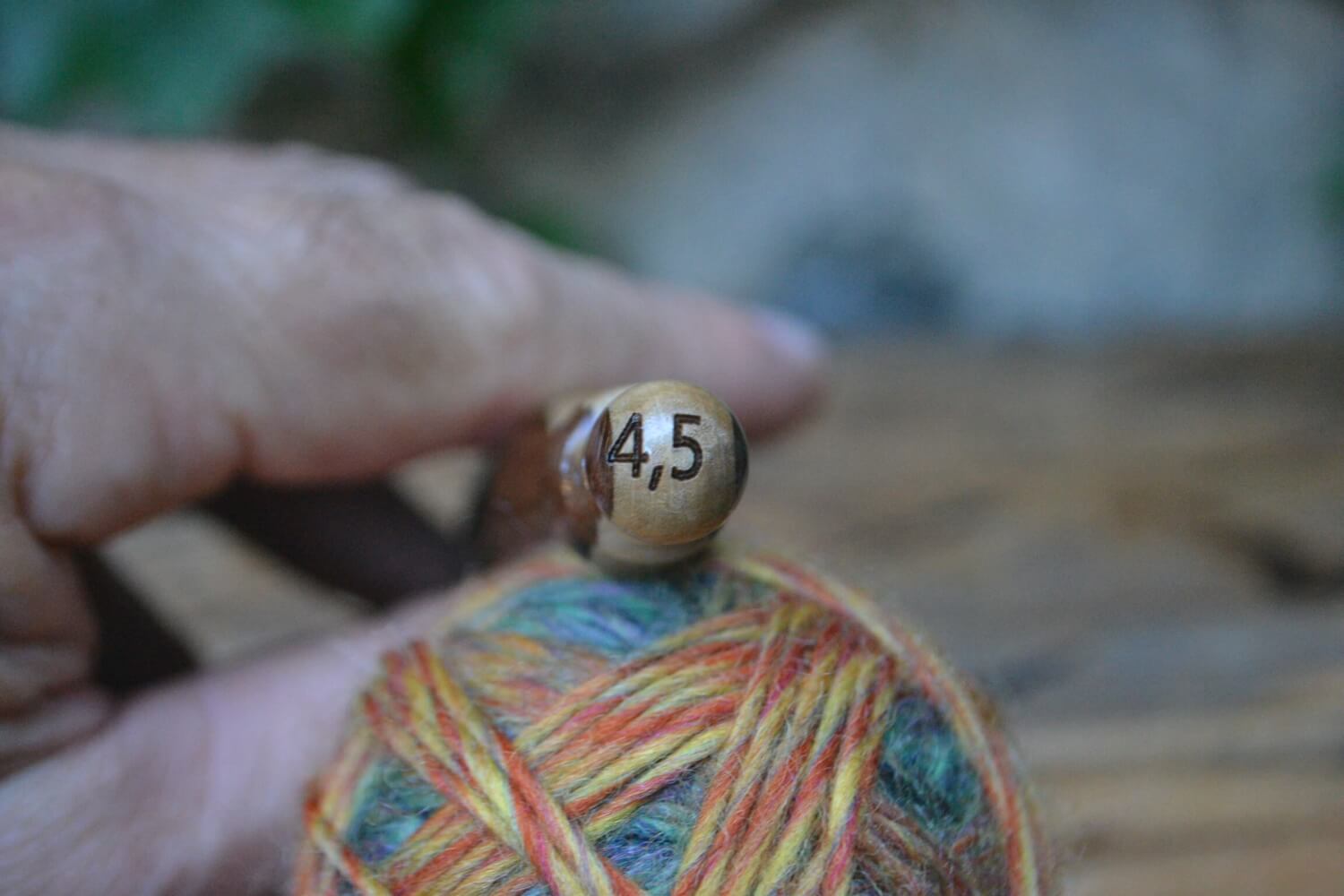 #1336-5026 6 mm (size J) Prym hook, Hornbeam and White Mulberry wood, 23 mm 17 cm