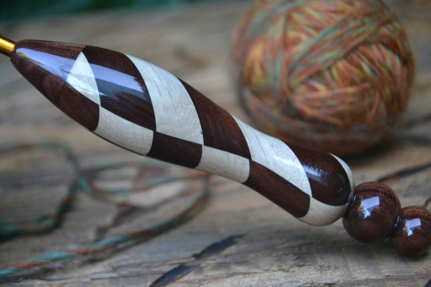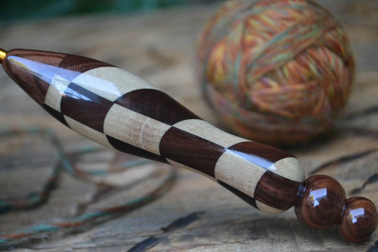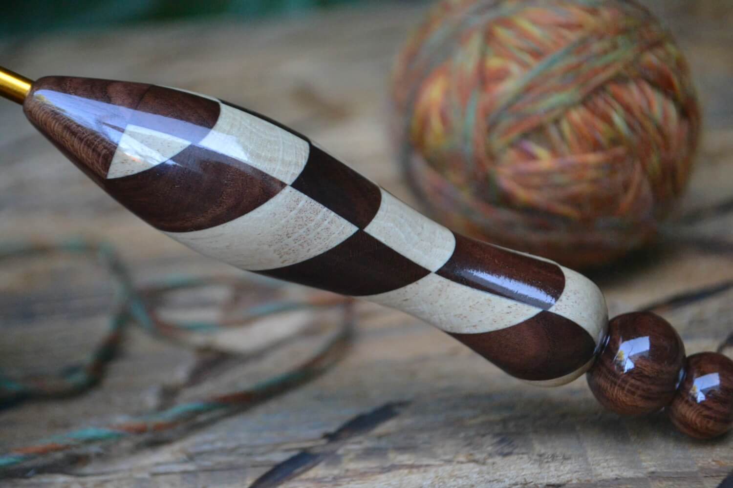 2.2 mm Tulip Gold, Rosewood Santos and Dark Apricot /Hornbeam wood mosaic Ergonomic Crochet Hook 22 mm 15,5 cm #1339-5029