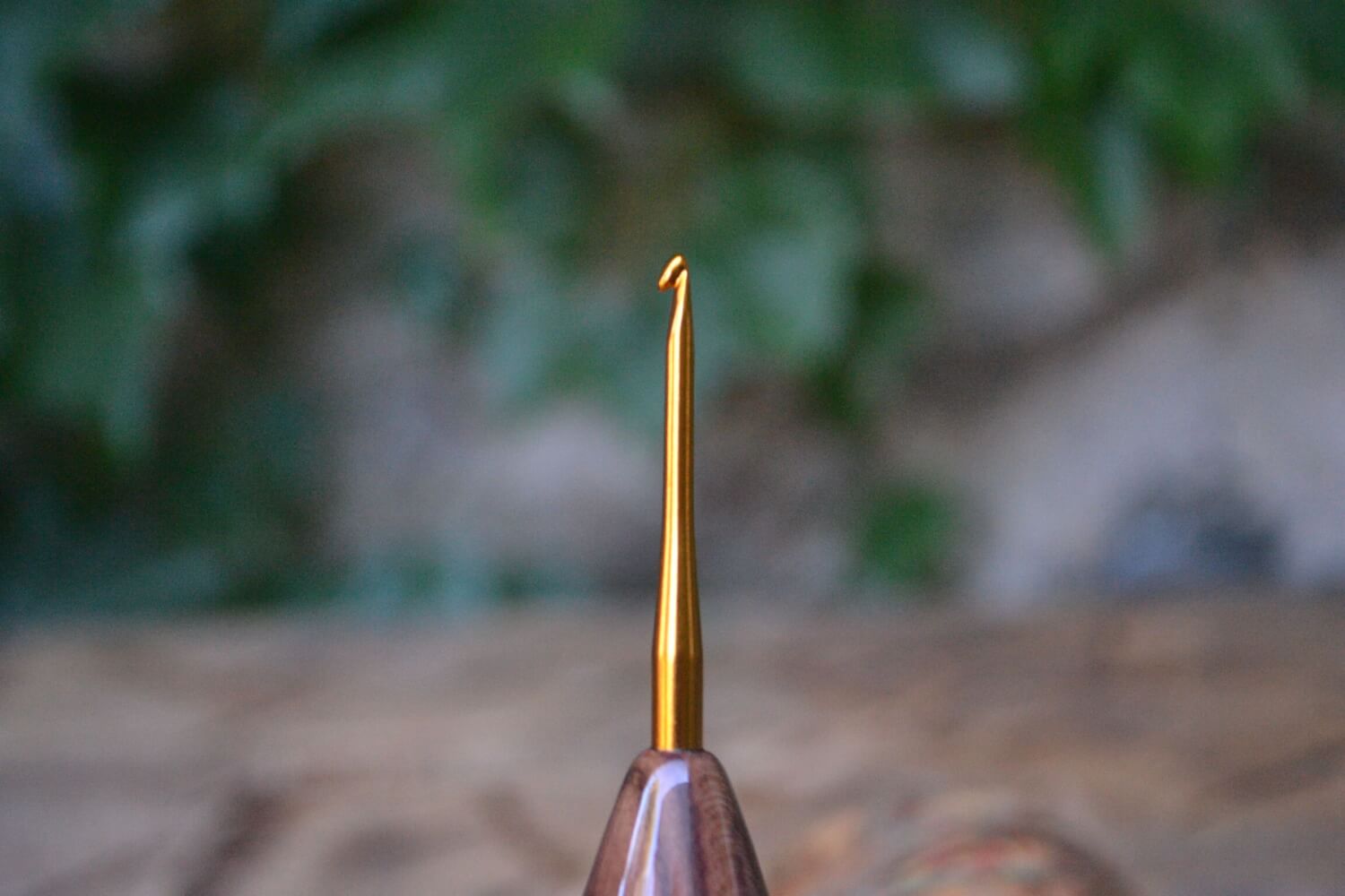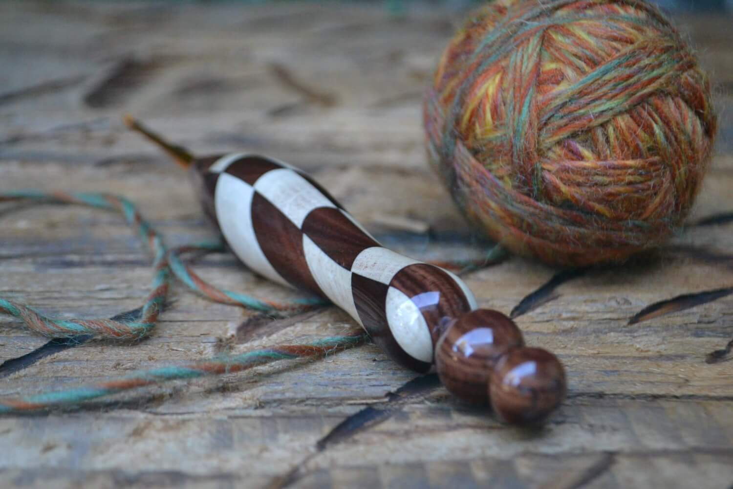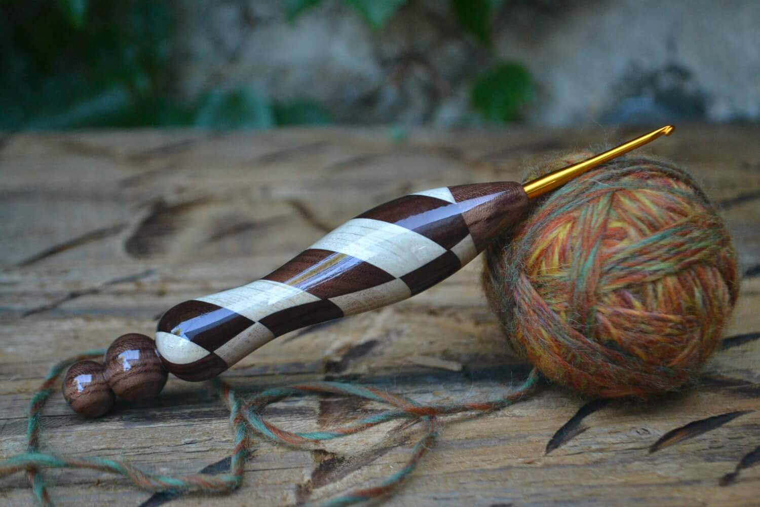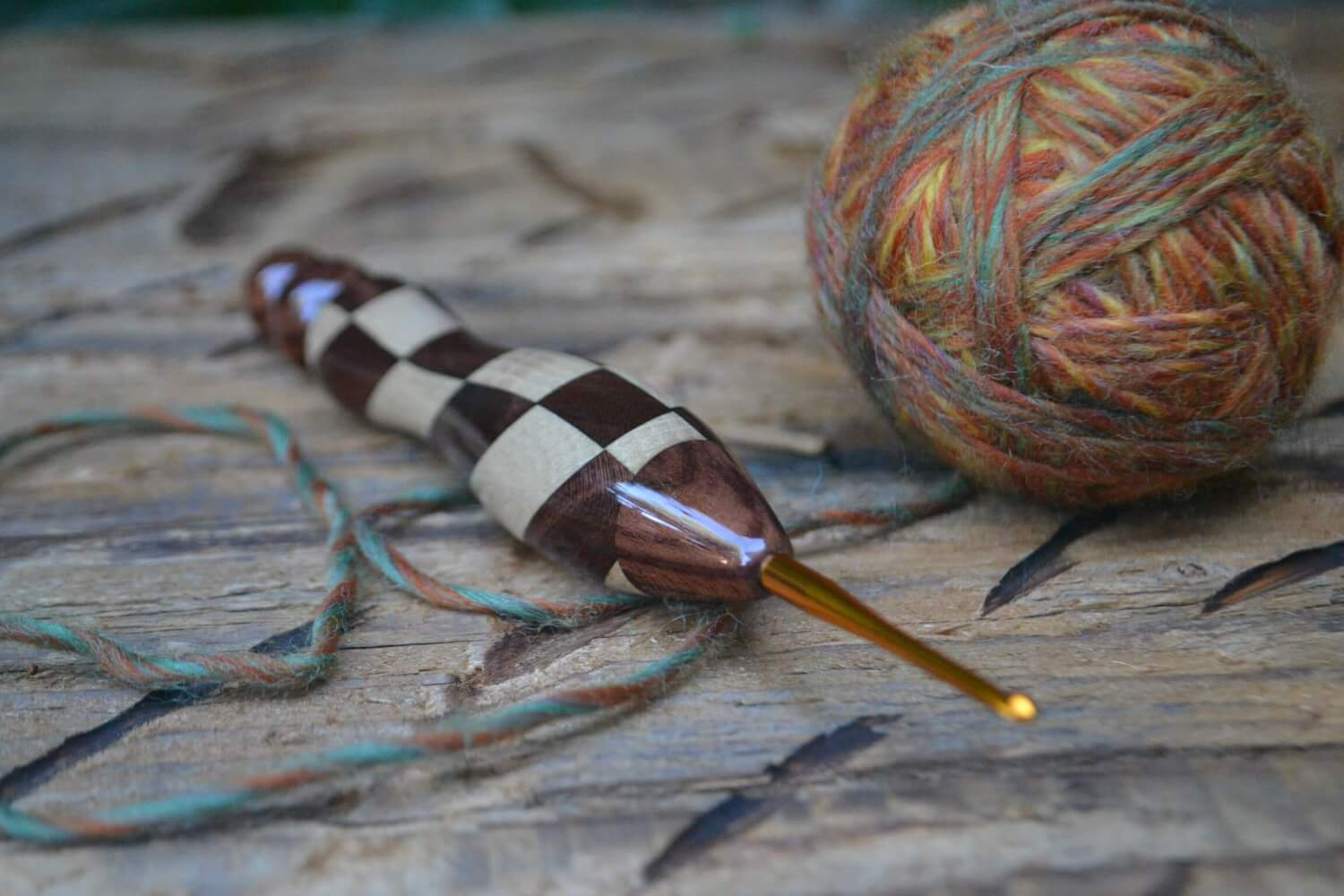 2.2 mm Tulip Gold, Rosewood Santos and Dark Apricot /Hornbeam wood mosaic Ergonomic Crochet Hook 22 mm 15,5 cm #1339-5029
