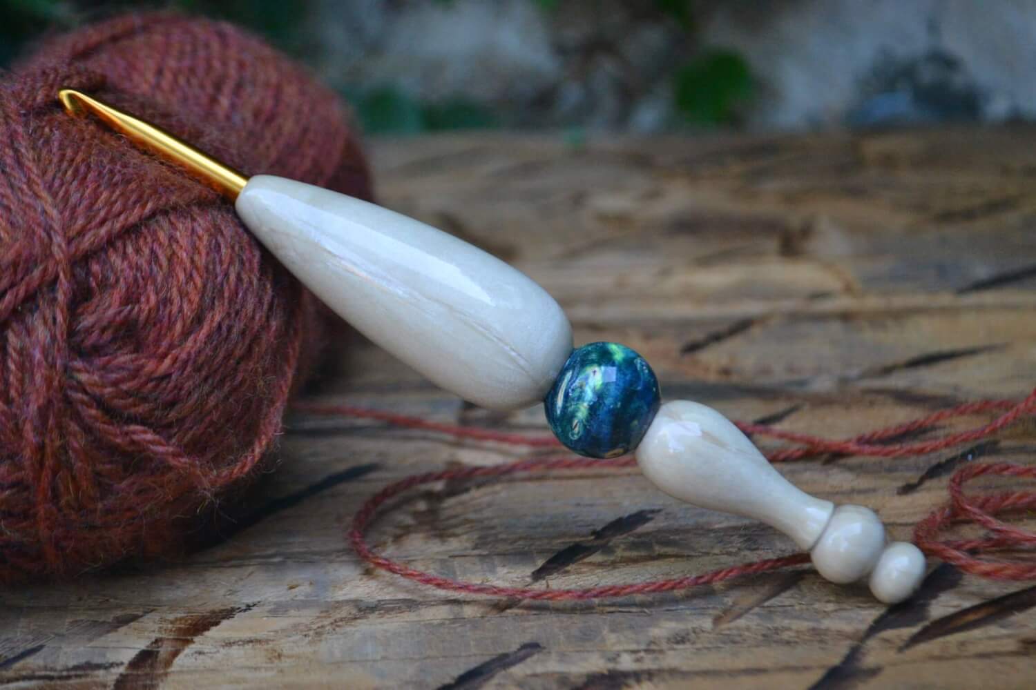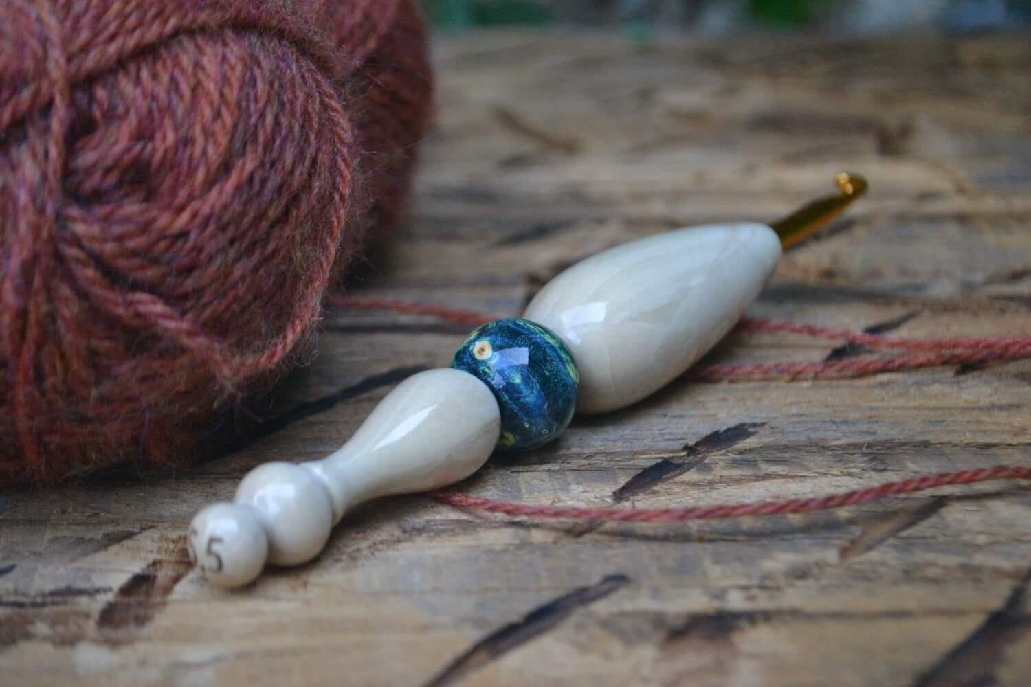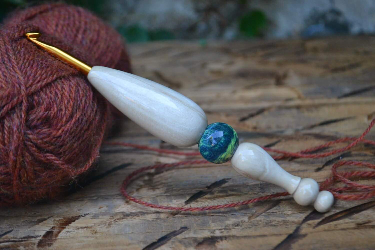 5.5 mm = size I Tulip Gold, Hornbeam and Stab. Burl wood Ergonomic Crochet Hook 23 mm 17 cm #1345-5035