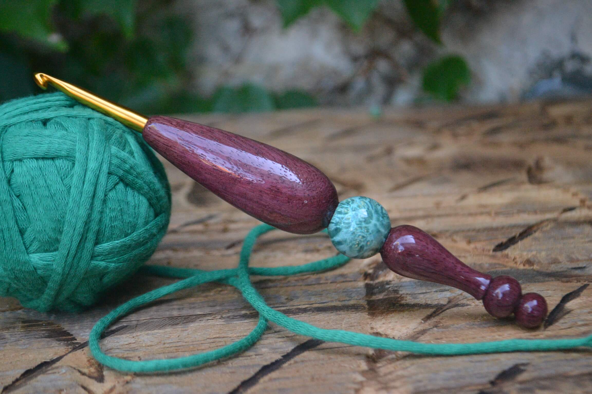 4.5 mm = size 7 Tulip Gold. Purpleheart and Stab. Burl wood Ergonomic Crochet Hook 23 mm 17 cm #1348-5038