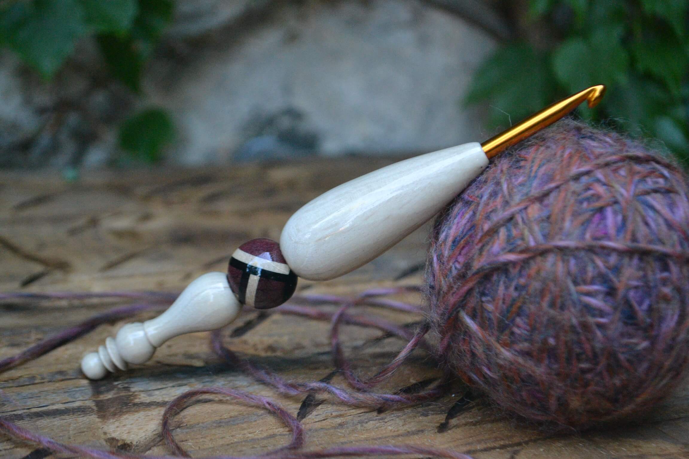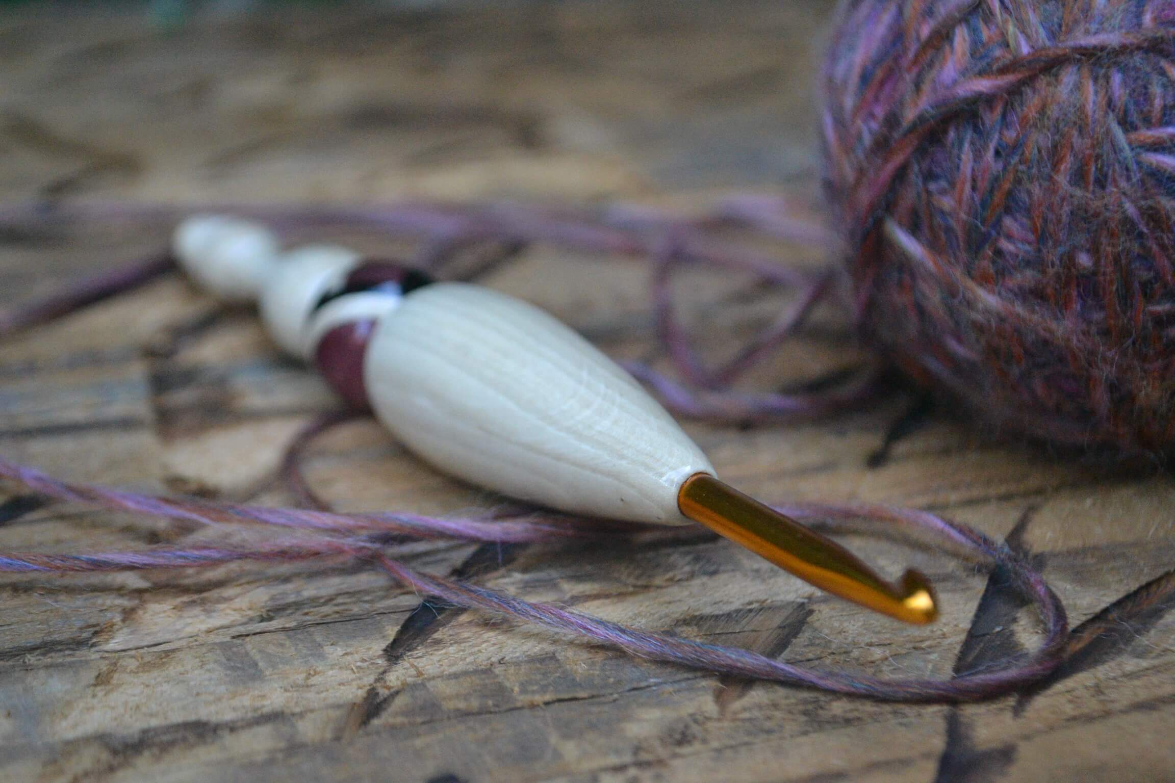 5 mm = size Tulip Gold, Hornbeam and Black/White Hornbeam/Purpleheart wood mosaic Ergonomic Crochet Hook 23 mm 17 cm #1351-5041