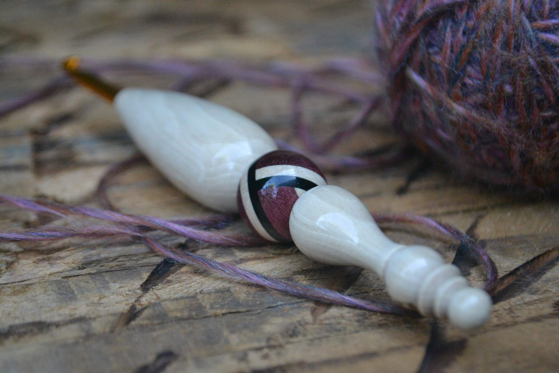 2,5 mm Clover Amour, Purpleheart and Robinia/Hornbeam wood mosaic Ergonomic Crochet Hook 23 mm 16,5 cm #1130-4820
