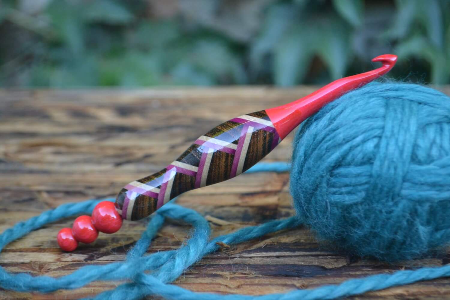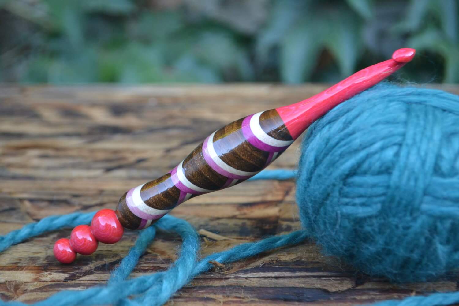 8 mm = L Red Hornbeam, Robinia, Pink/White Hornbeam wood Ergonomic Crochet Hook 23 mm 16.5 cm #1359-5049