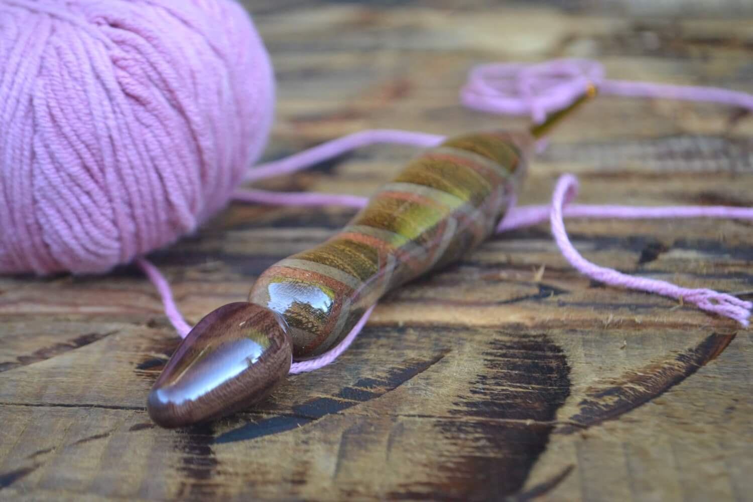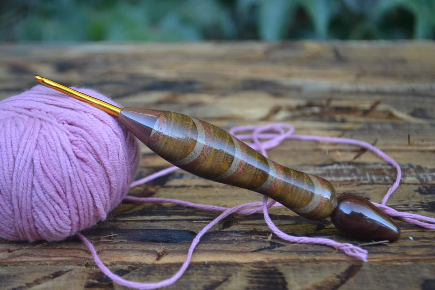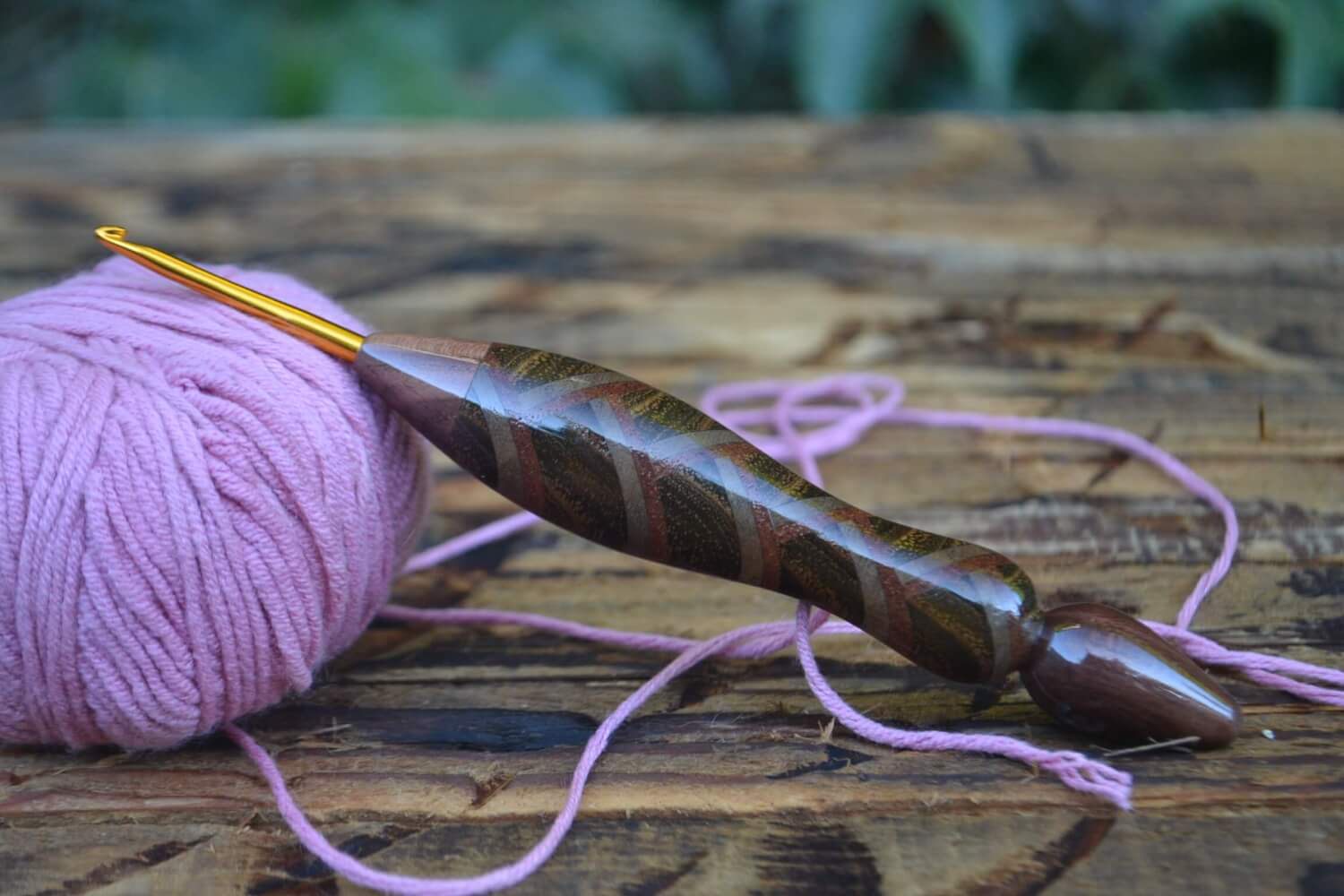 0,75 mm Clover Amour Purpleheart and Robinia/Hornbeam wood mosaic Ergonomic Crochet Hook 19 mm 15 cm #1140-4830