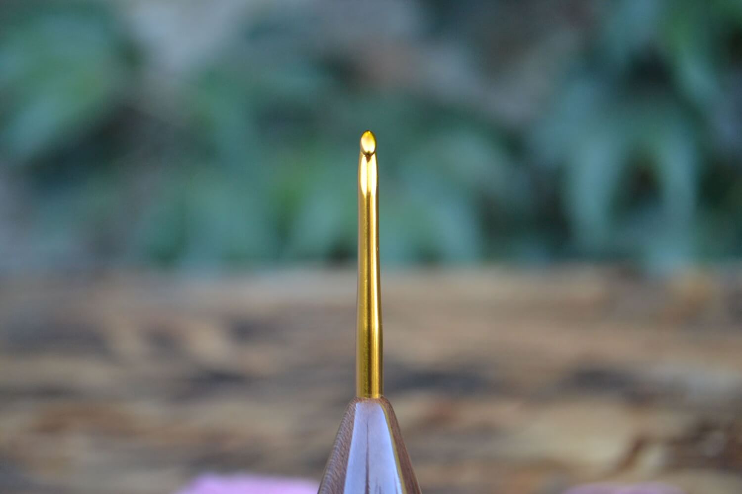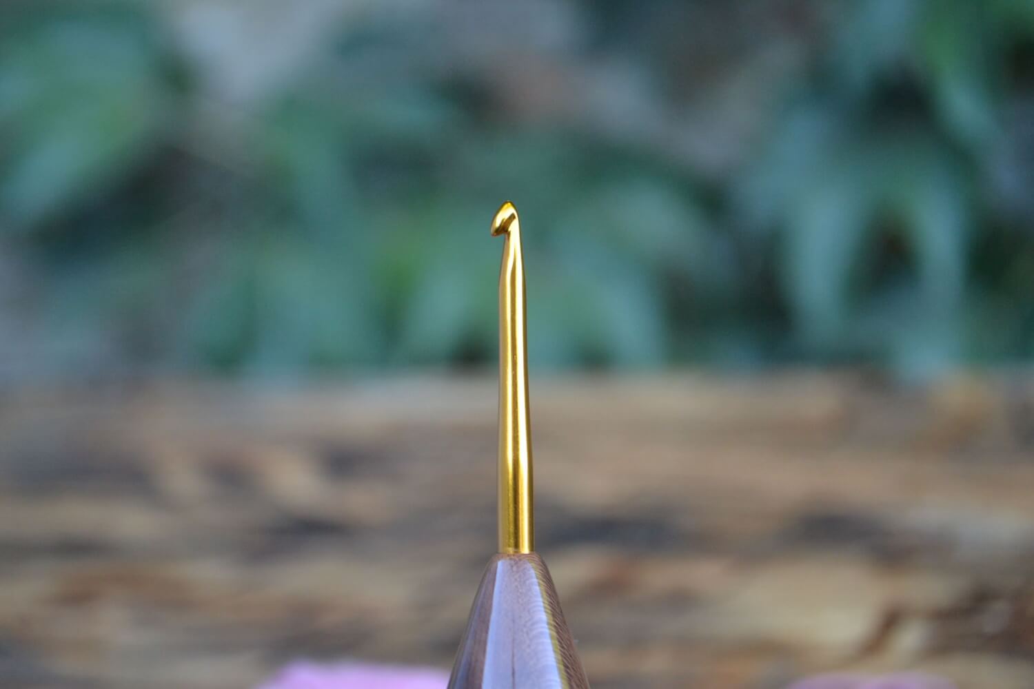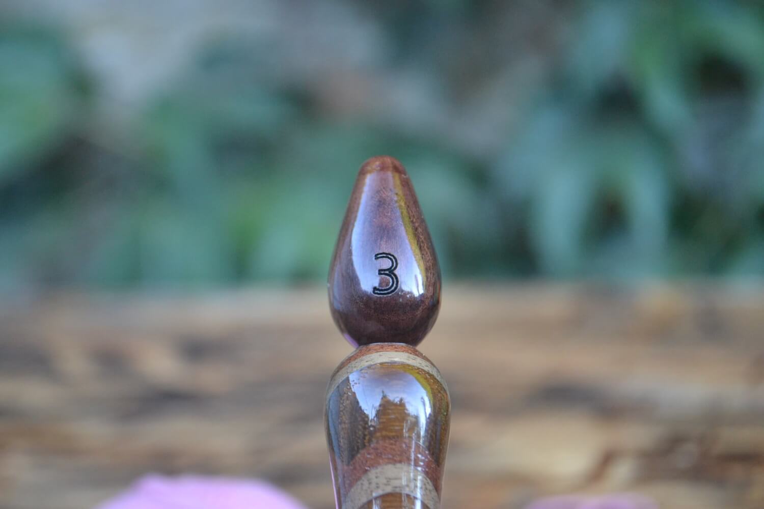 3 mm Tulip Gold, Dark Apricot, Robinia, Walnut, Merbau wood mosaic Ergonomic Crochet Hook 22 mm 16.5 cm #1360-5050