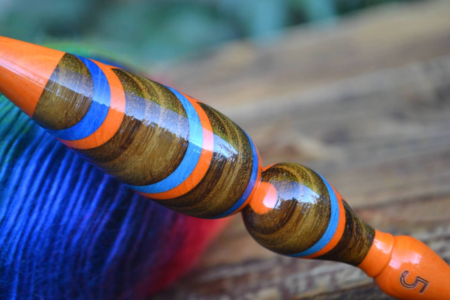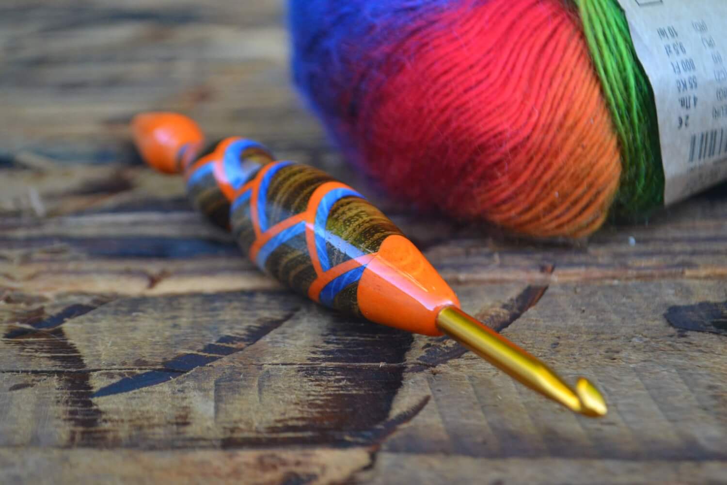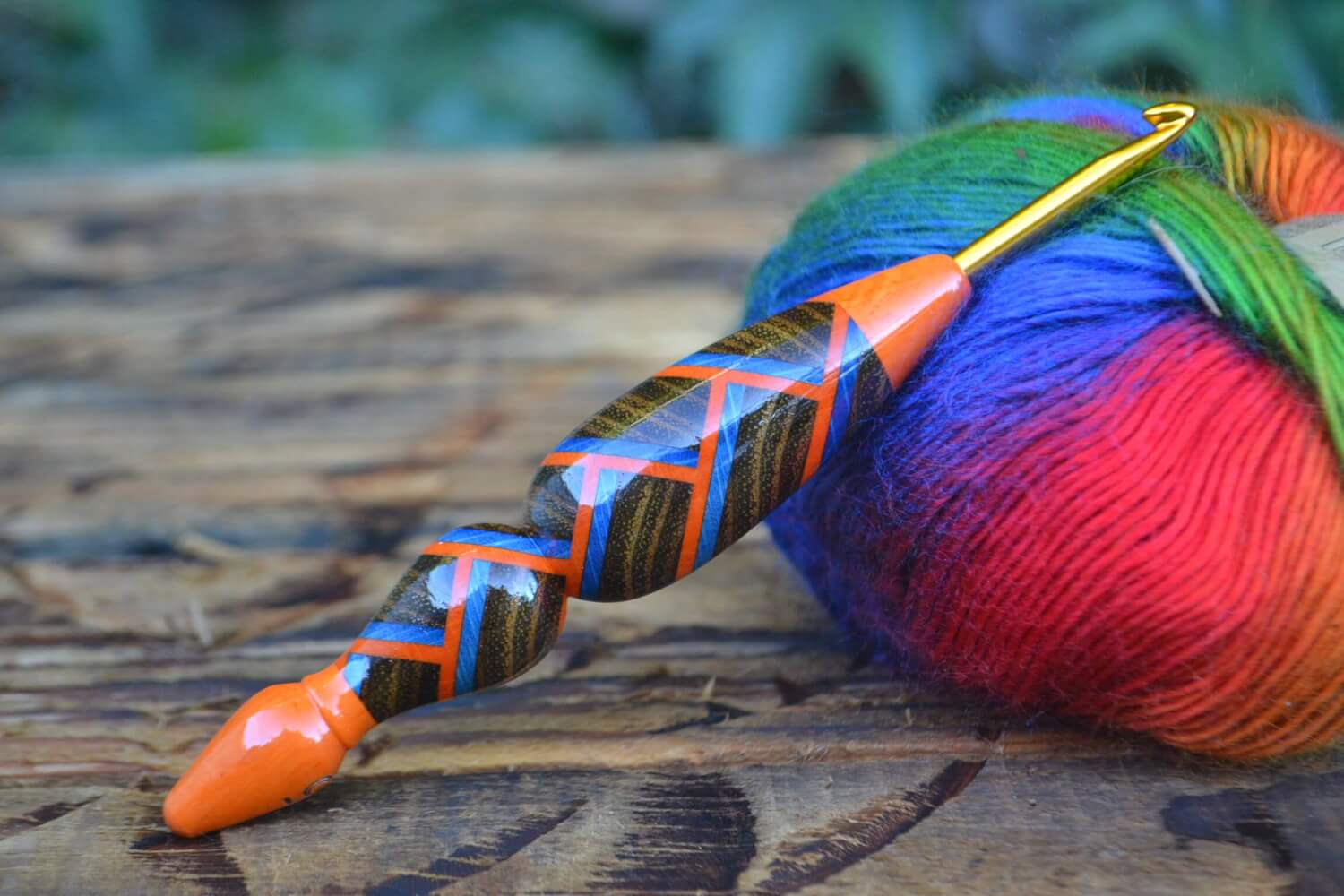 5 mm = size H Tulip Gold, Blue/Orange Hornbeam and Robinia wood mosaic Ergonomic Crochet Hook 23 mm 16 cm #1361-5051