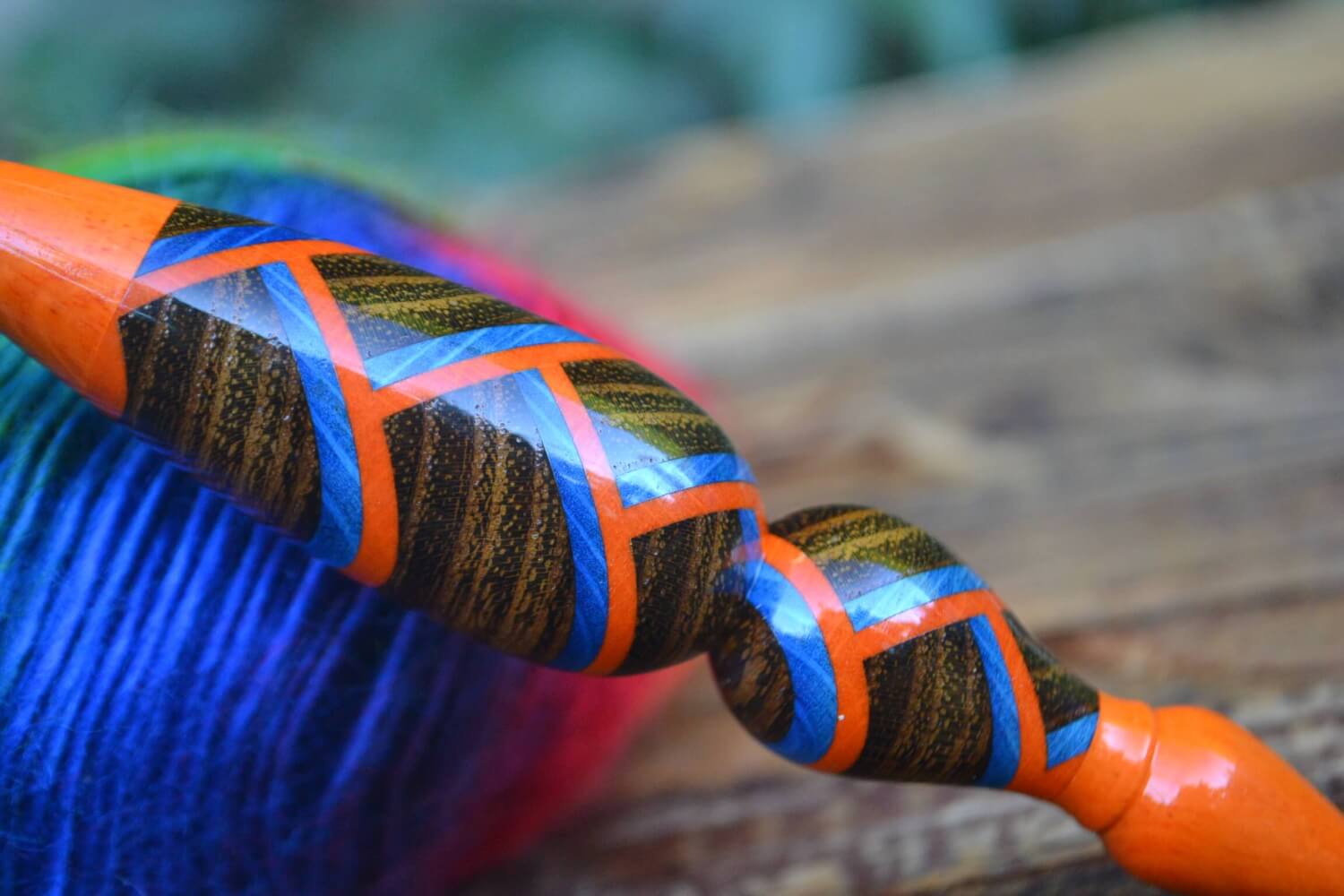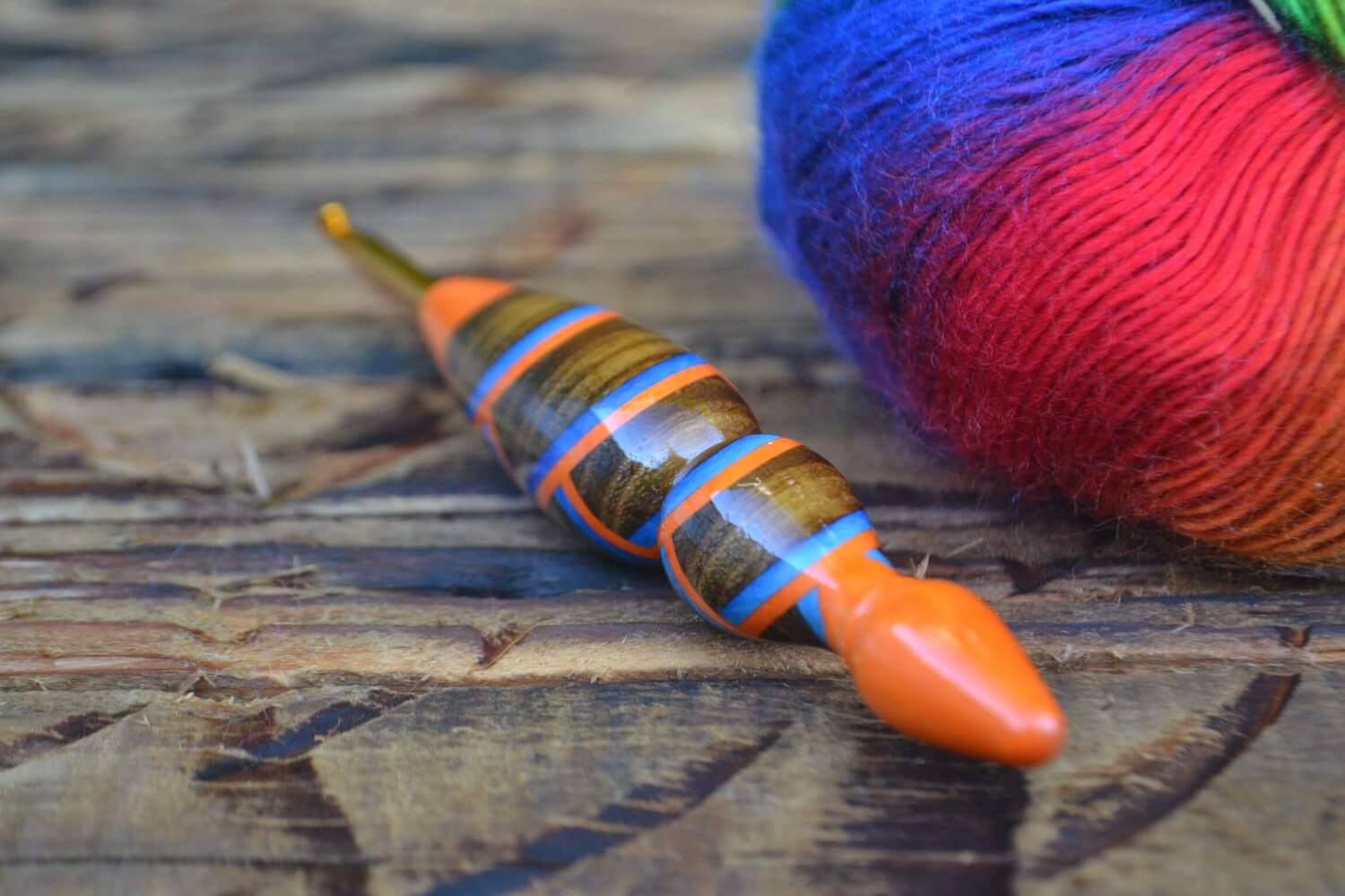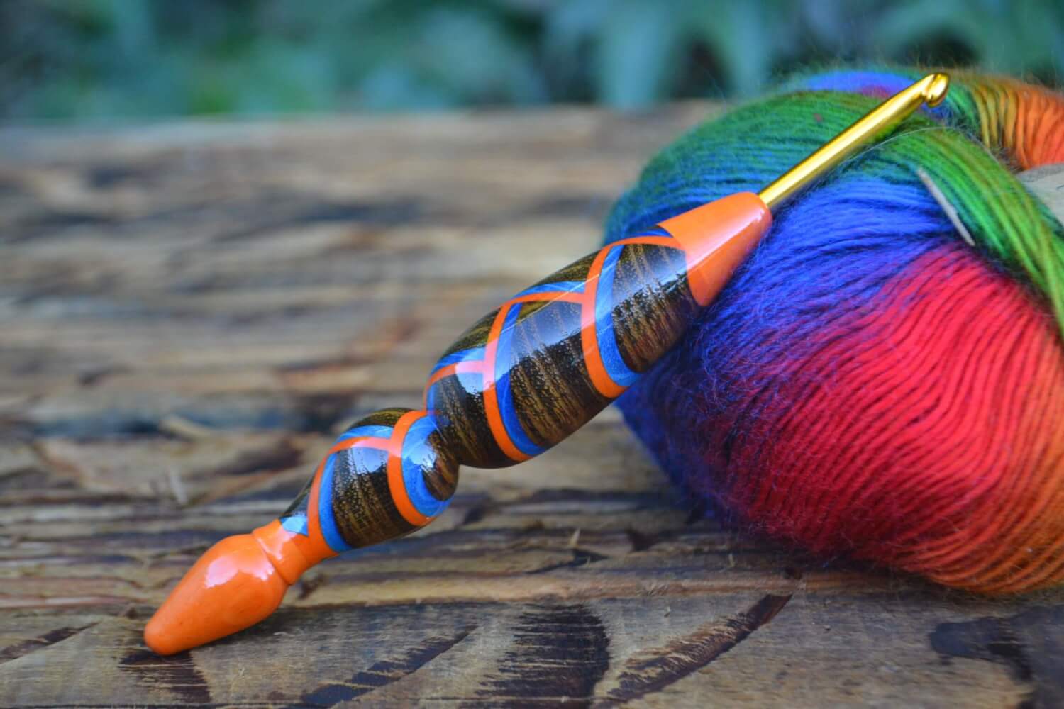 5 mm = size H Tulip Gold, Blue/Orange Hornbeam and Robinia wood mosaic Ergonomic Crochet Hook 23 mm 16 cm #1361-5051