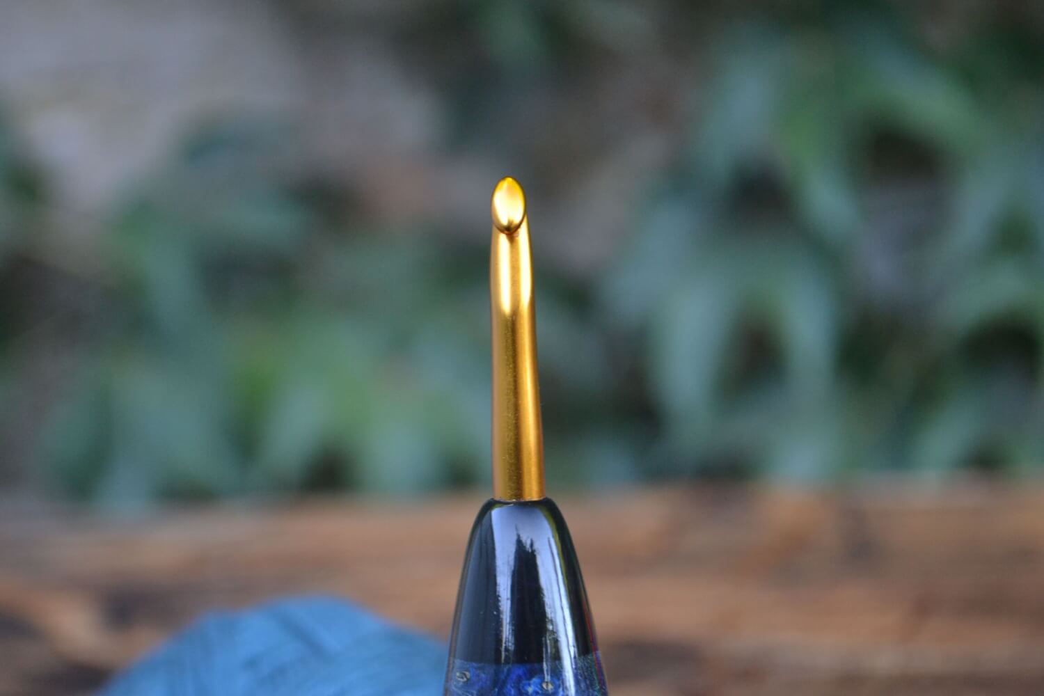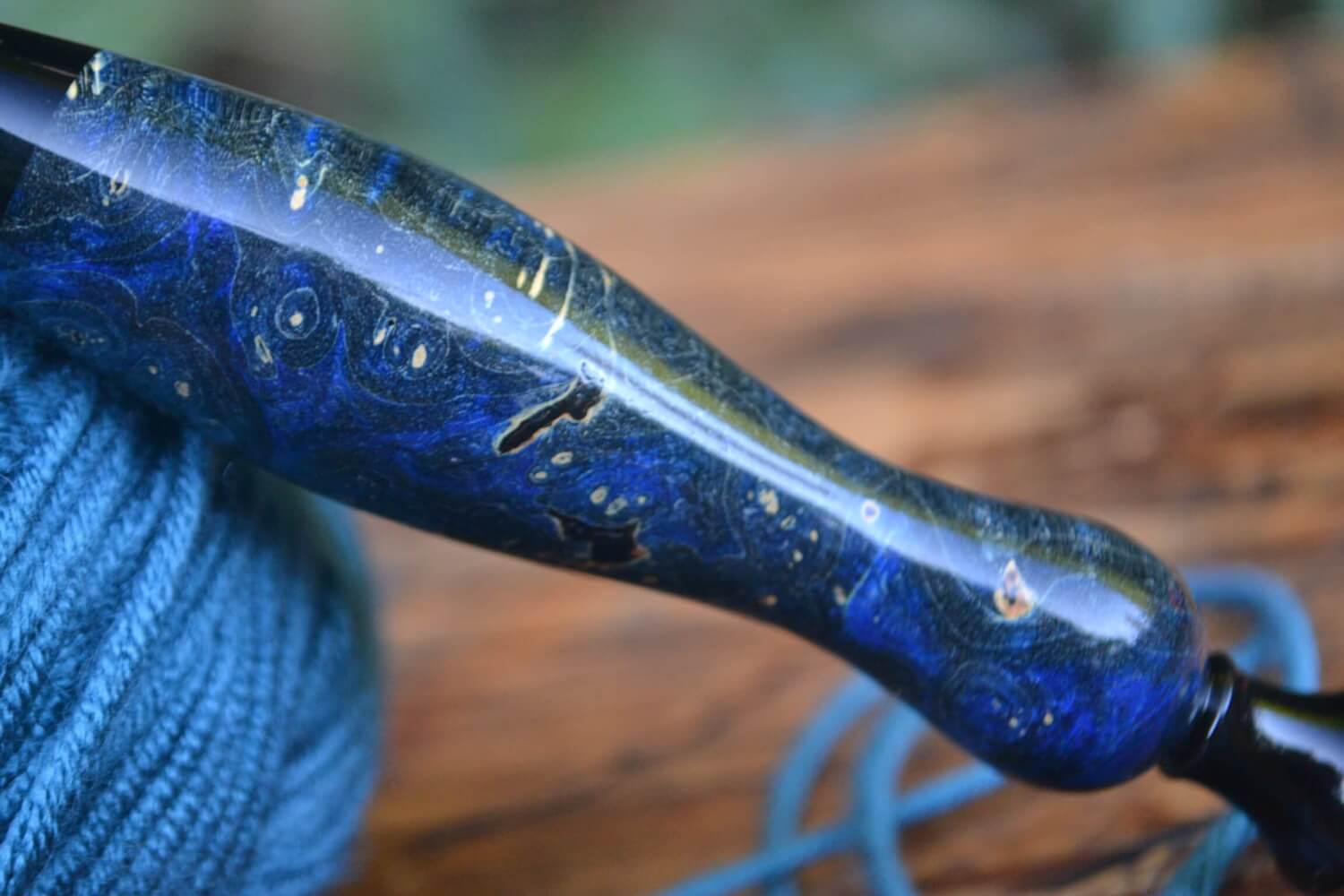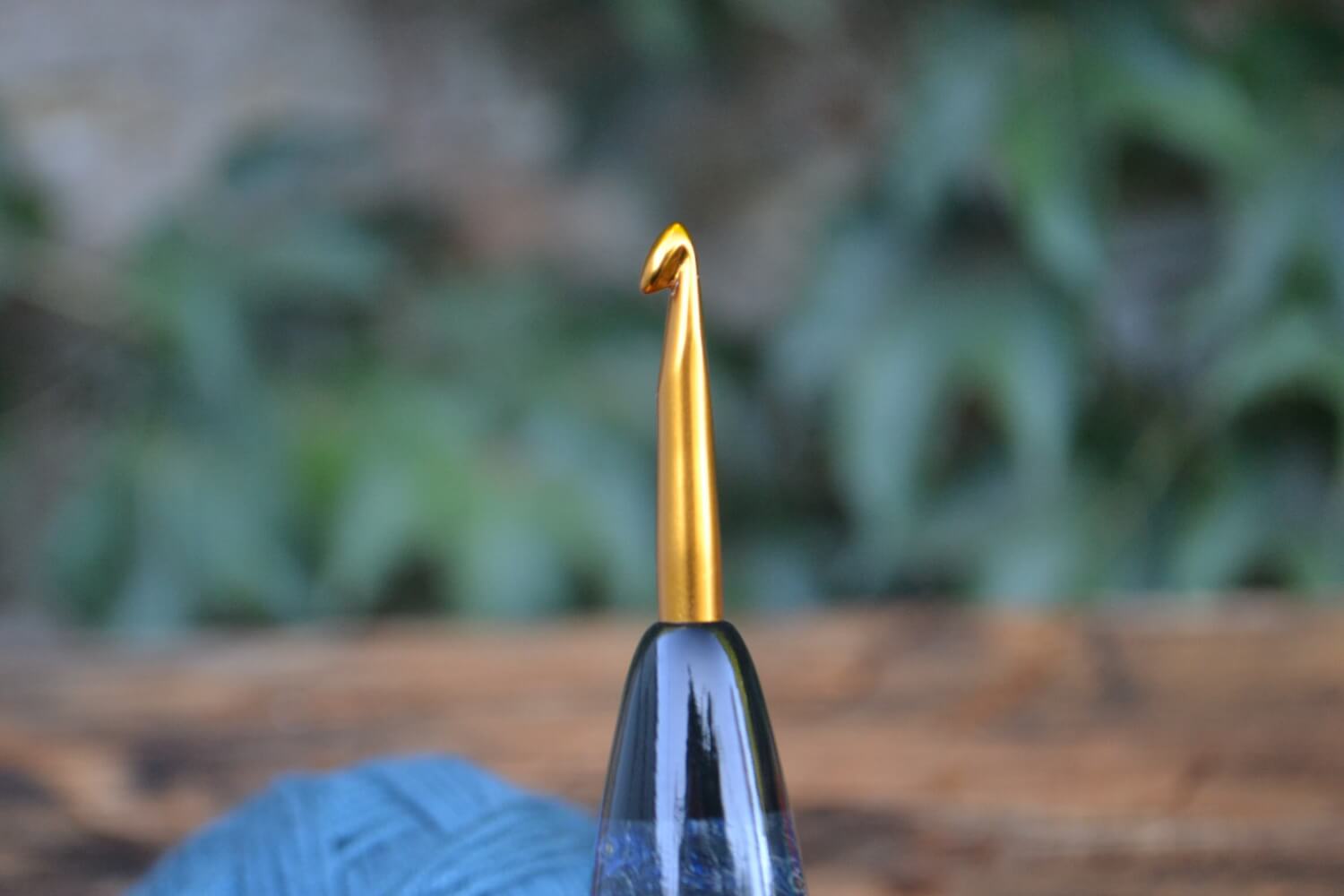 5 mm H Tulip Gold, Black Hornbeam and Stab. Burl wood Ergonomic Crochet Hook 23 mm 16.5 cm #1367-5057
