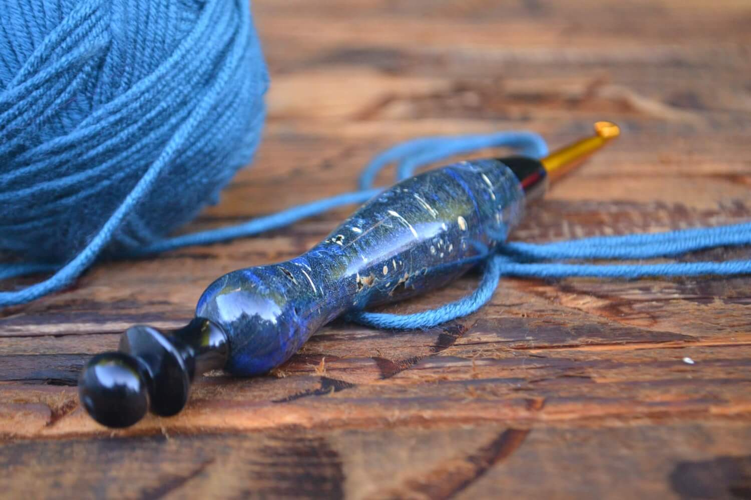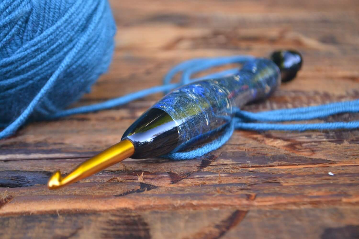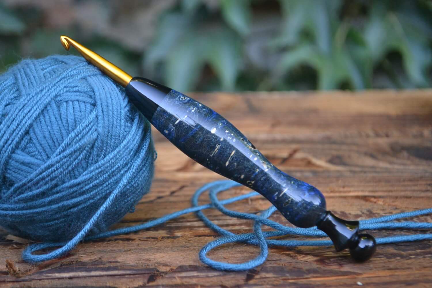 5 mm H Tulip Gold, Black Hornbeam and Stab. Burl wood Ergonomic Crochet Hook 23 mm 16.5 cm #1367-5057