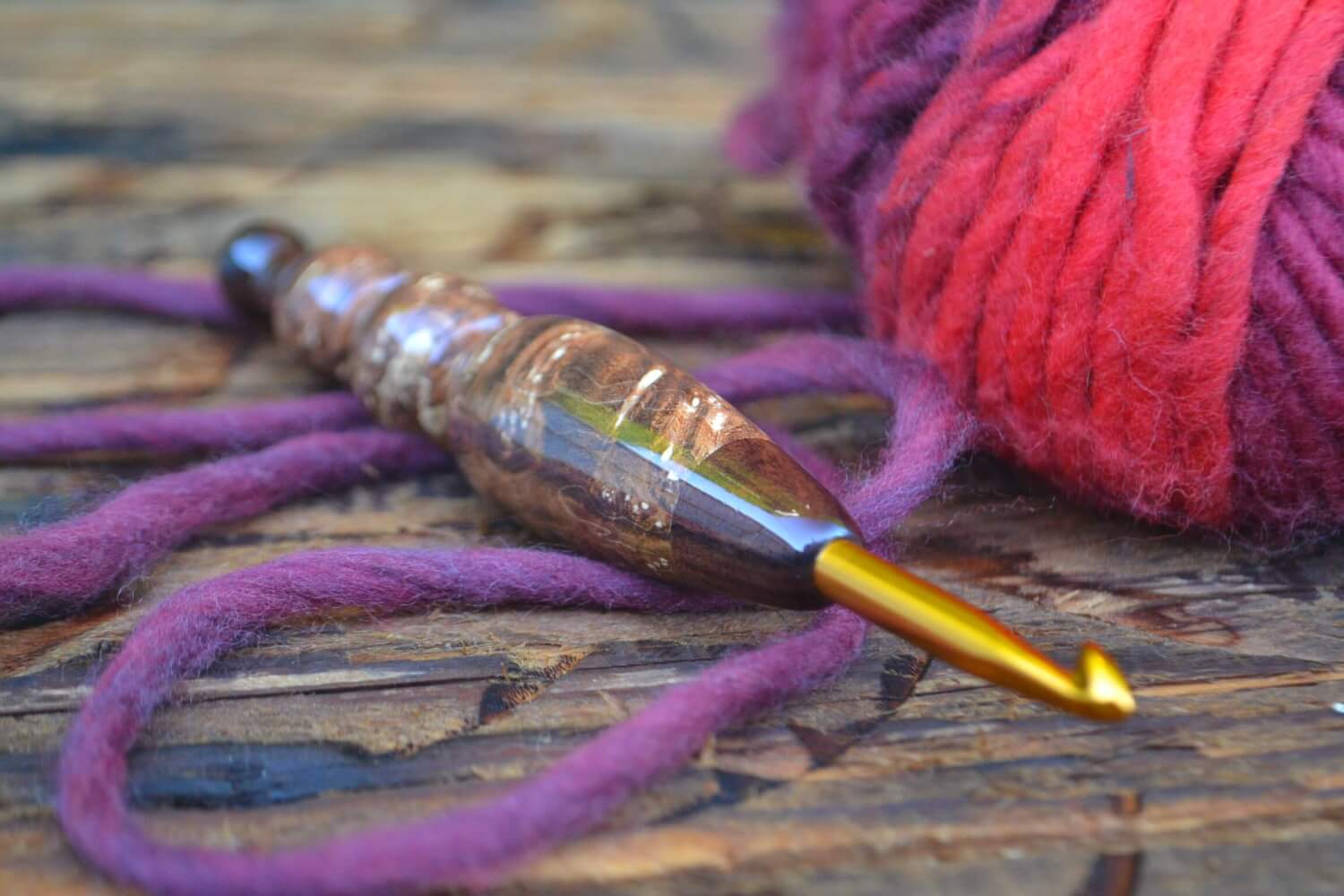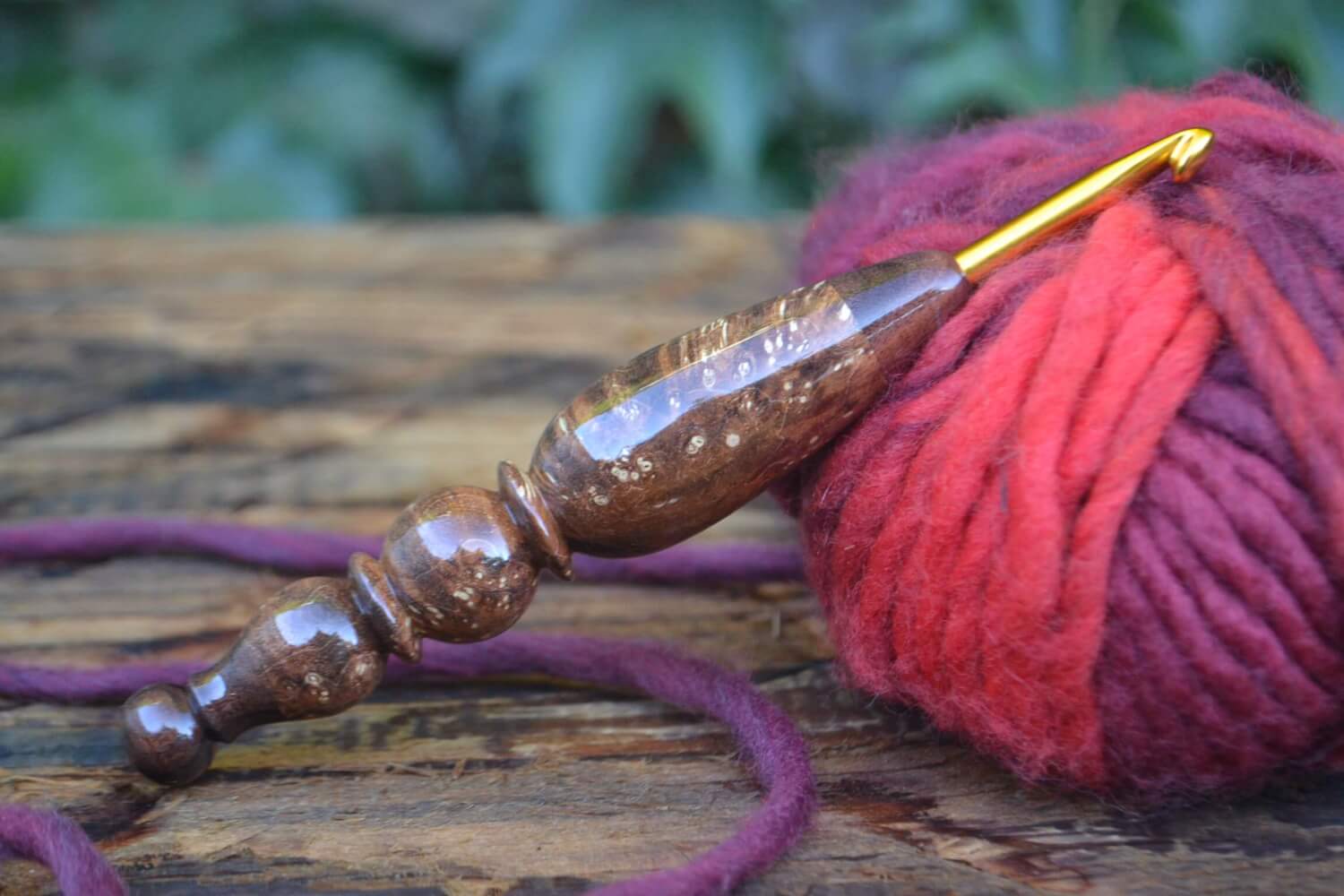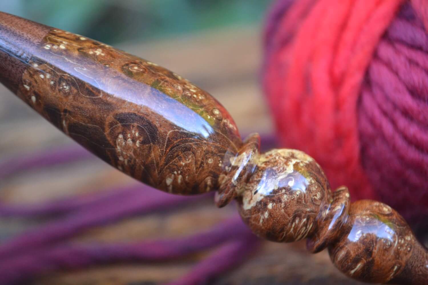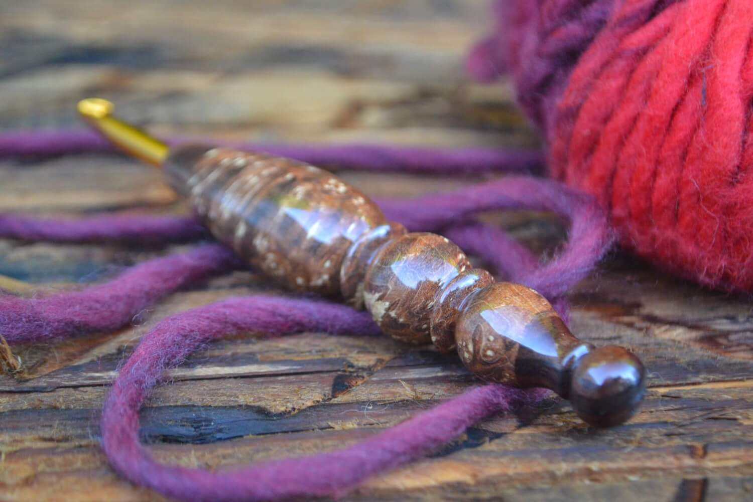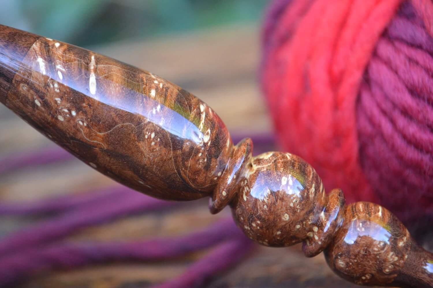 3.75 mm = size F Clover Soft Touch, Purpleheart/ Box Elder Stabilized Curly and Burl wood Ergonomic Crochet Hook 24 mm 16,5 cm #599-4289