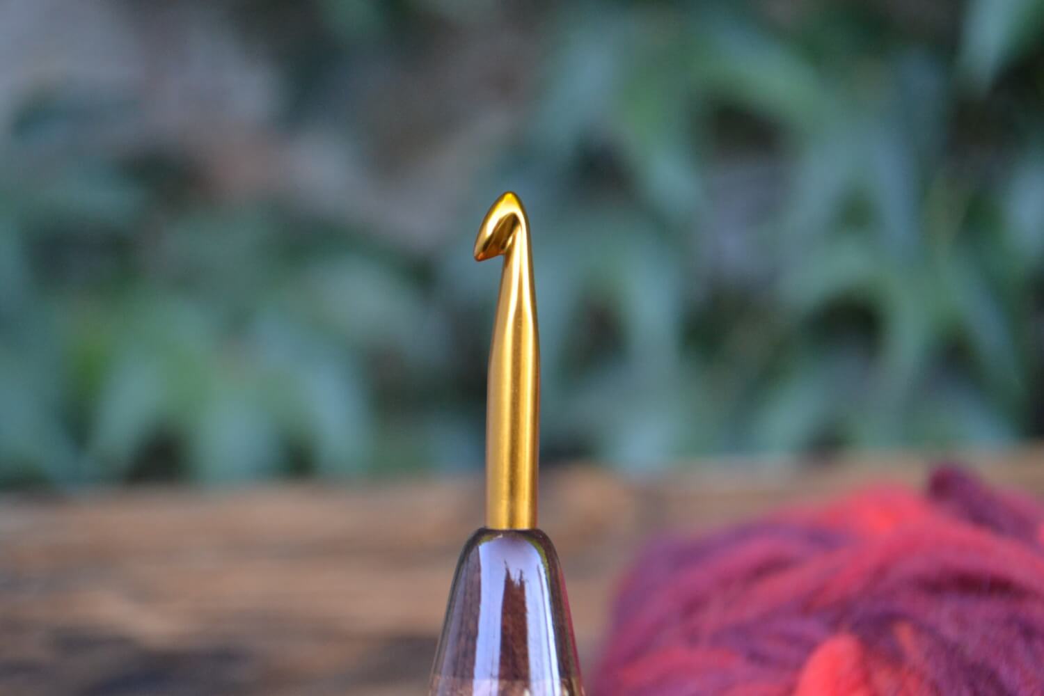 6 mm J Tulip Gold, Rosewood Santos and Stab. Burl wood Ergonomic Crochet Hook 24 mm 16.5 cm #1368-5058
