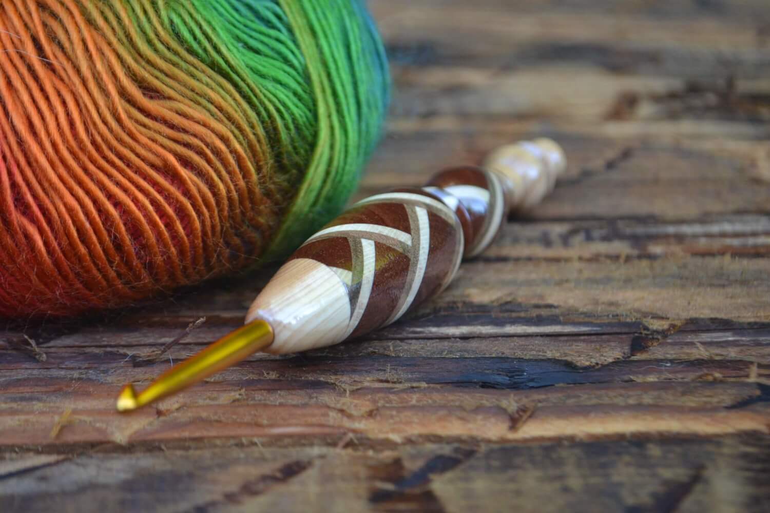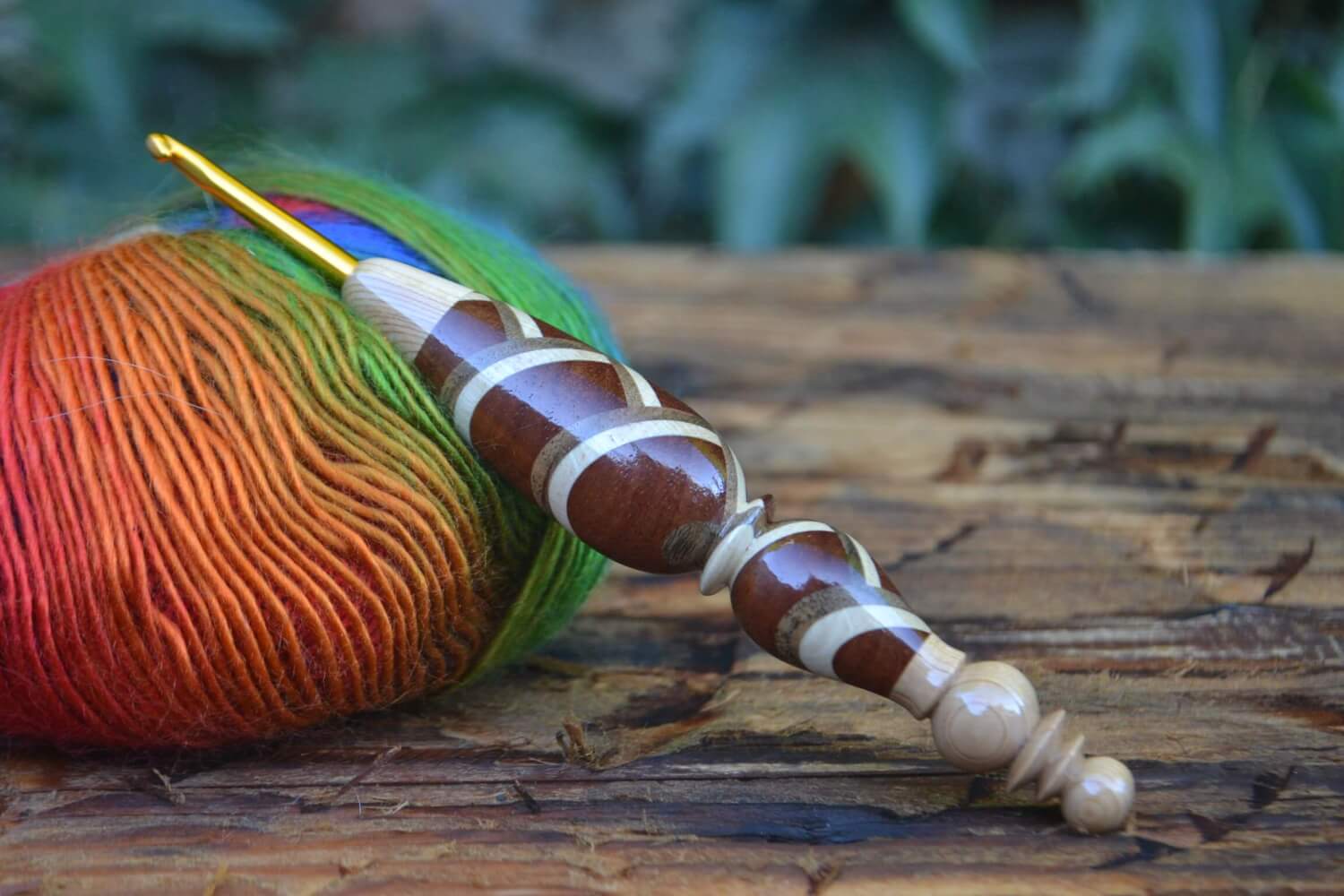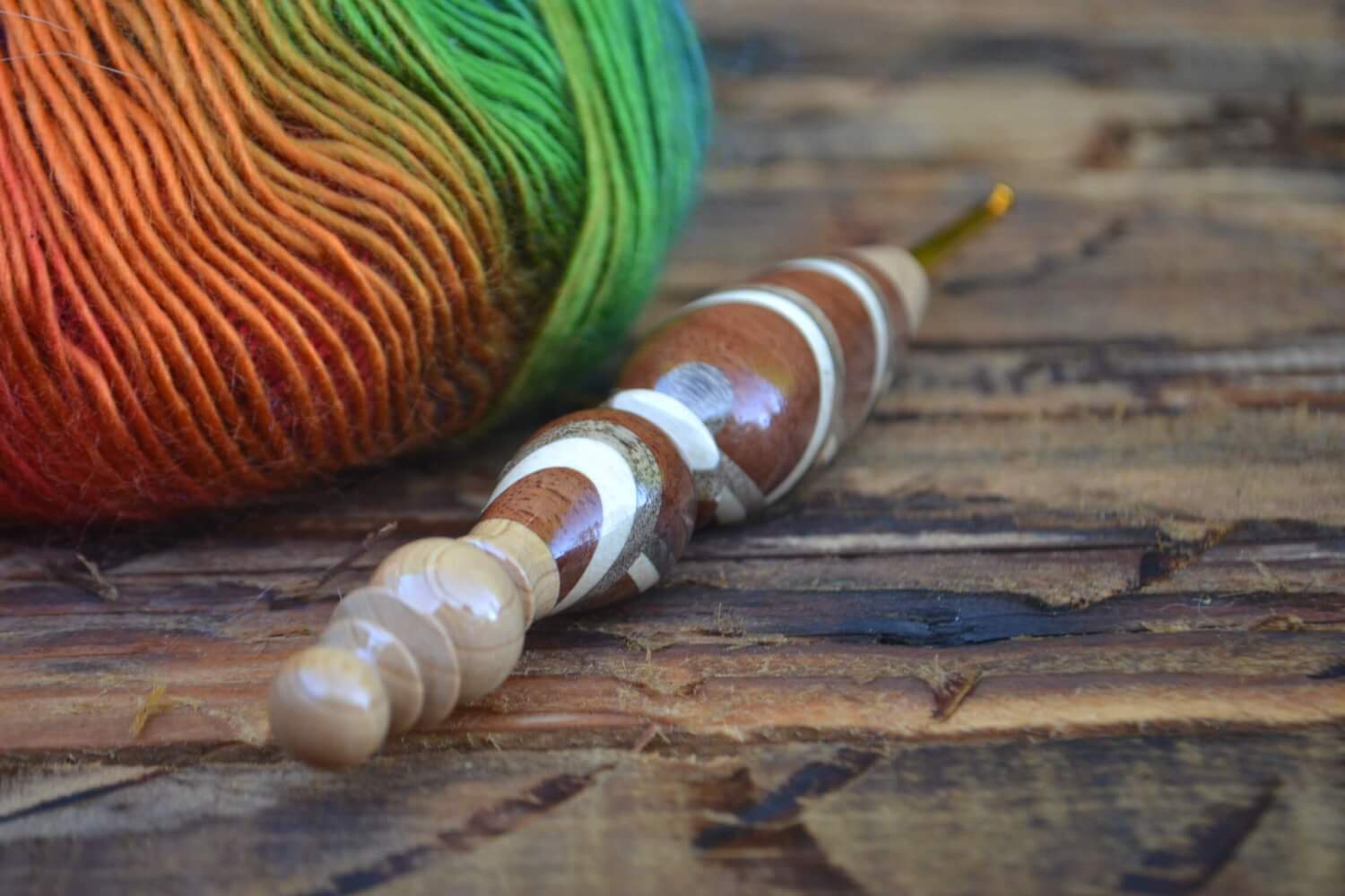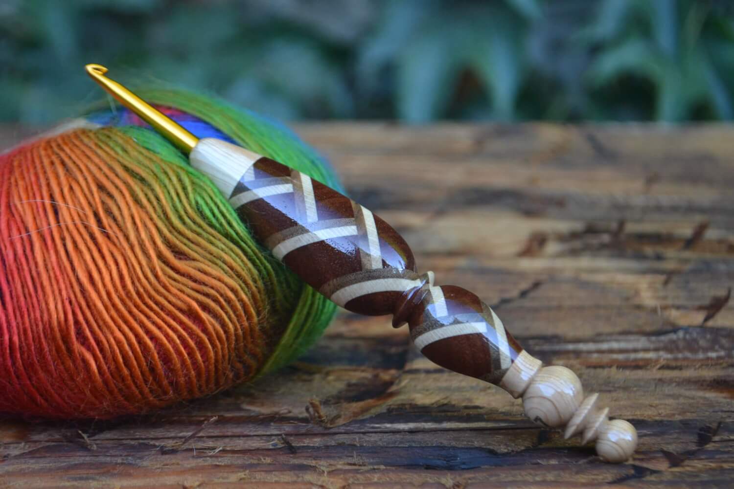 7.5 mm Black Hornbeam, Mosaic Robinia/Apricot/Hornbeam wood Ergonomic Crochet Hook 24 mm 17 cm # 1042-4732