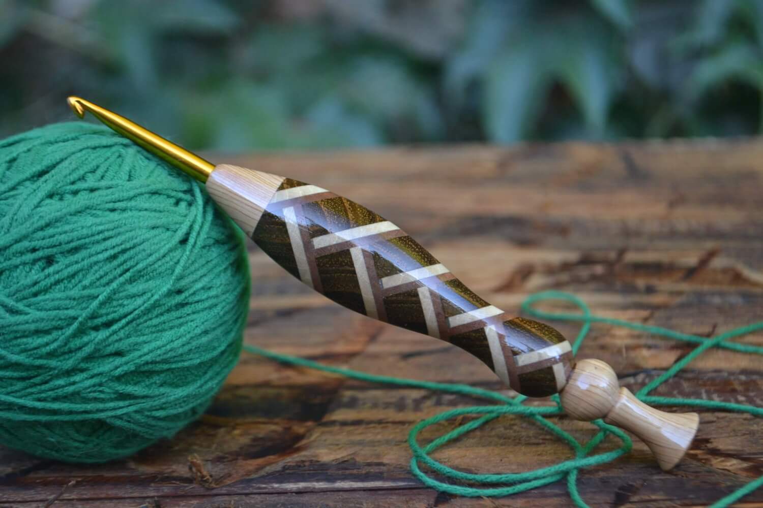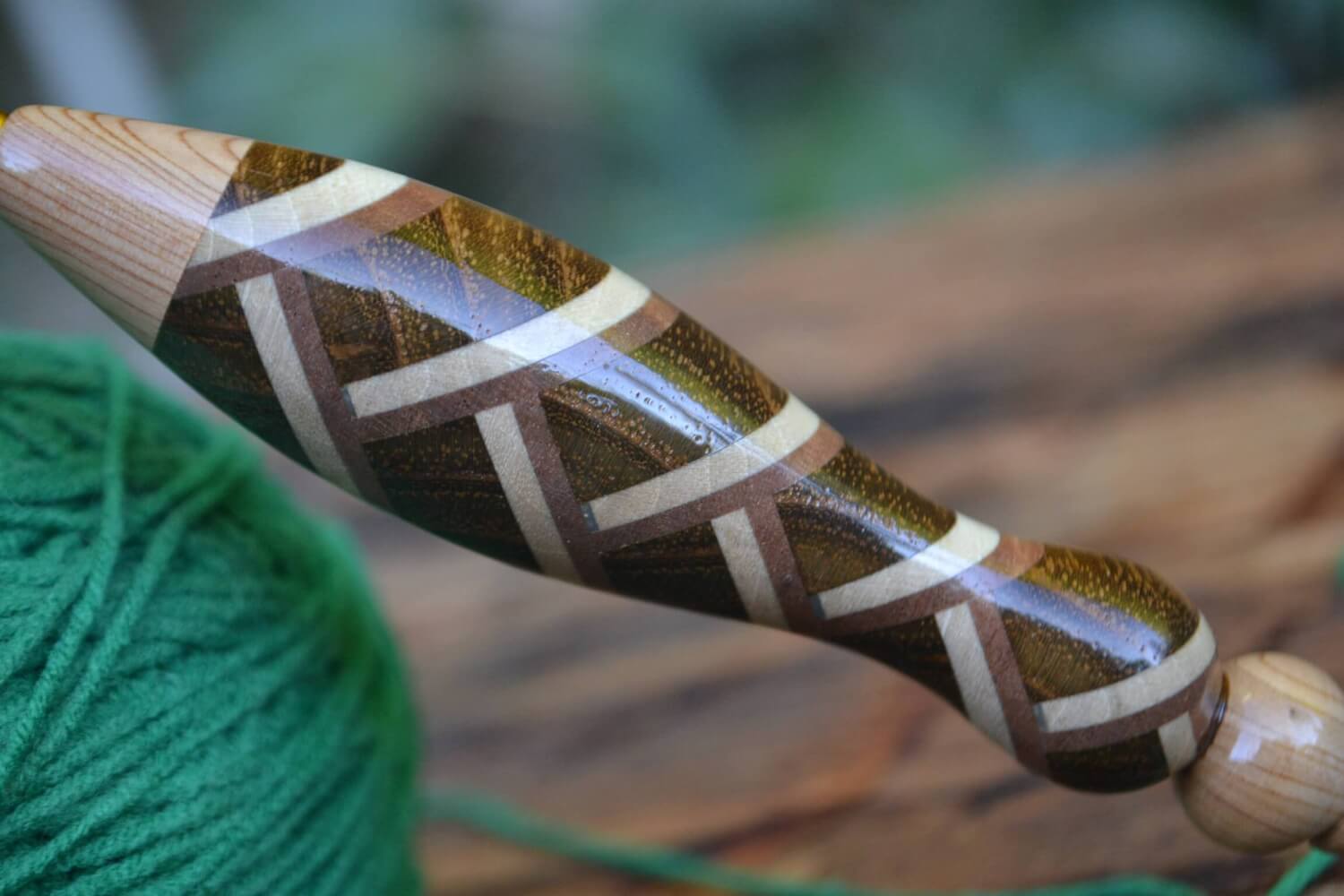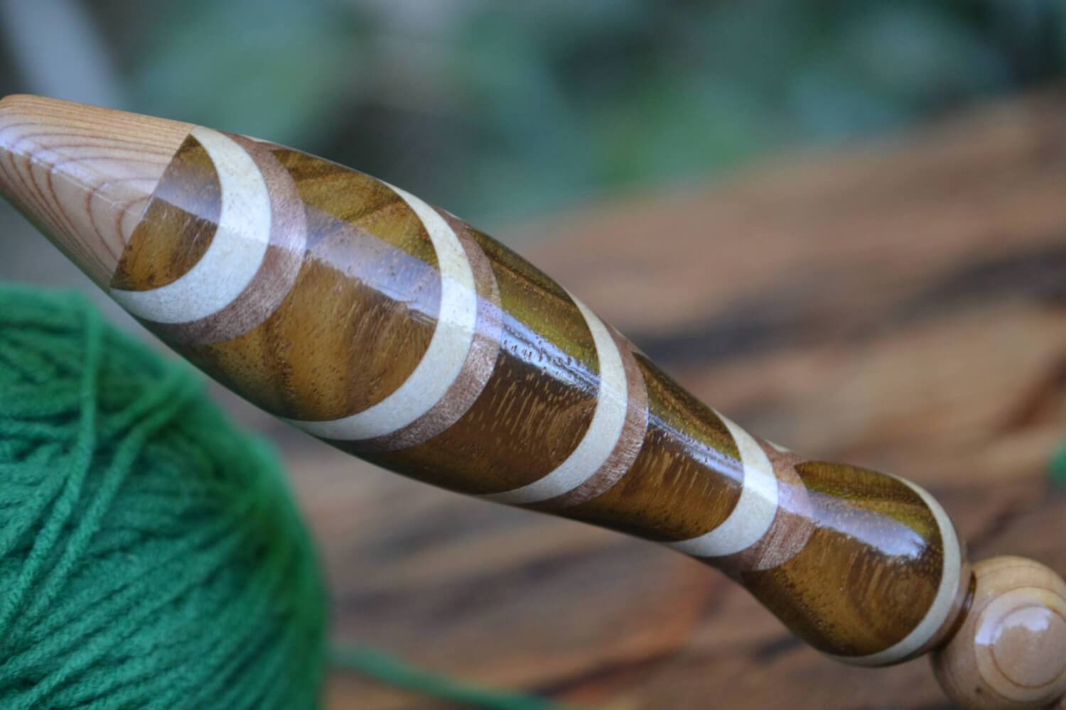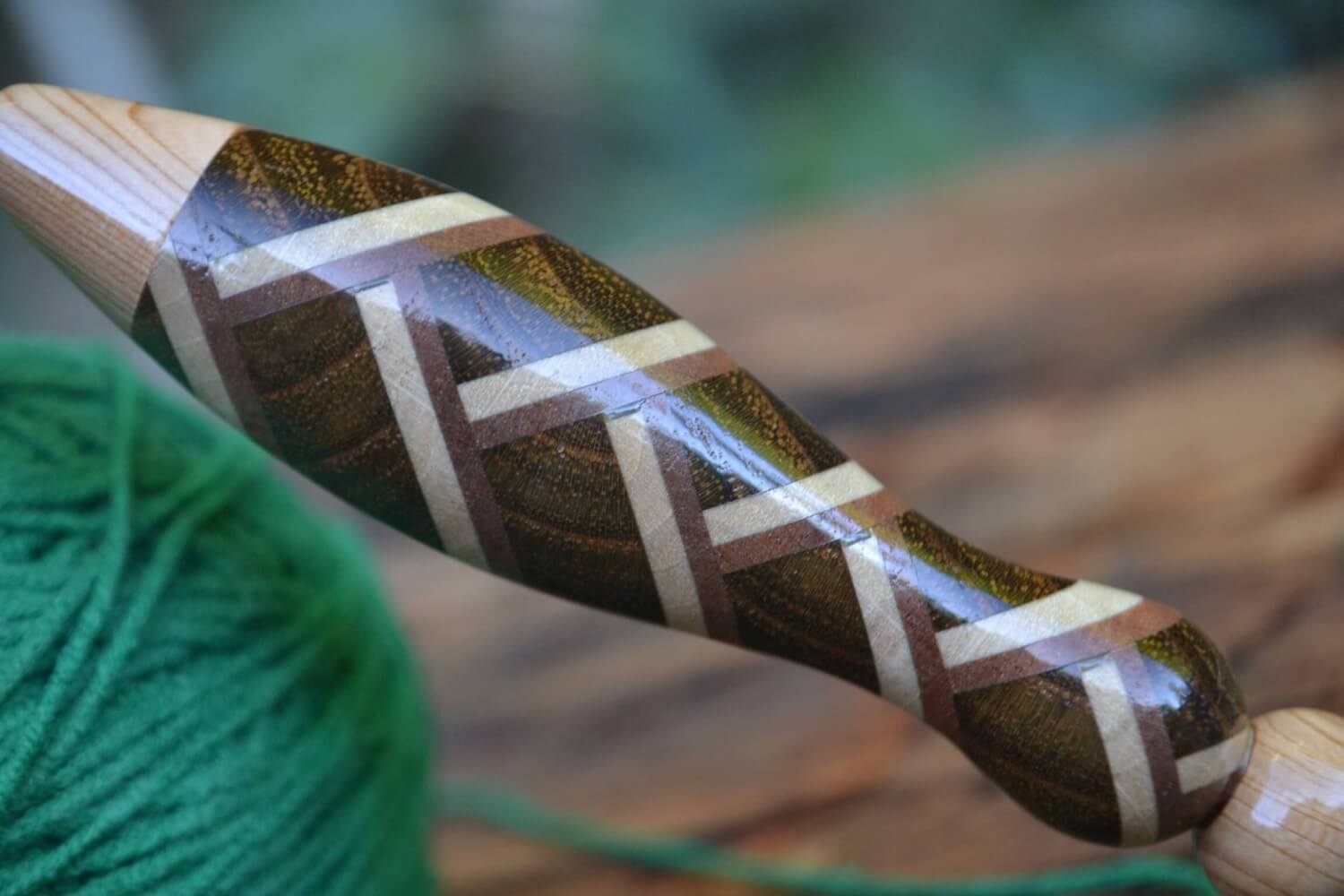 7.5 mm Black Hornbeam, Mosaic Robinia/Apricot/Hornbeam wood Ergonomic Crochet Hook 24 mm 17 cm # 1042-4732
