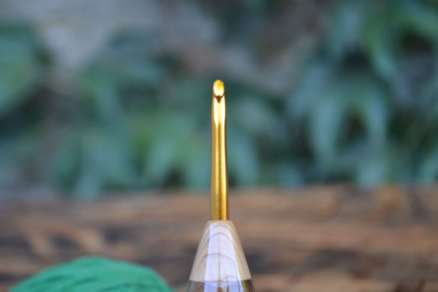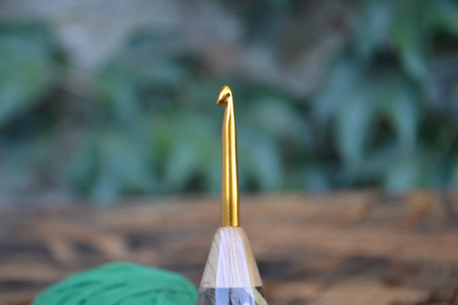 4 mm G Tulip Gold, Lilac and Robinia/ Hornbeam / Merbau wood mosaic Ergonomic Crochet Hook 24 mm 16.5 cm #1370-5060