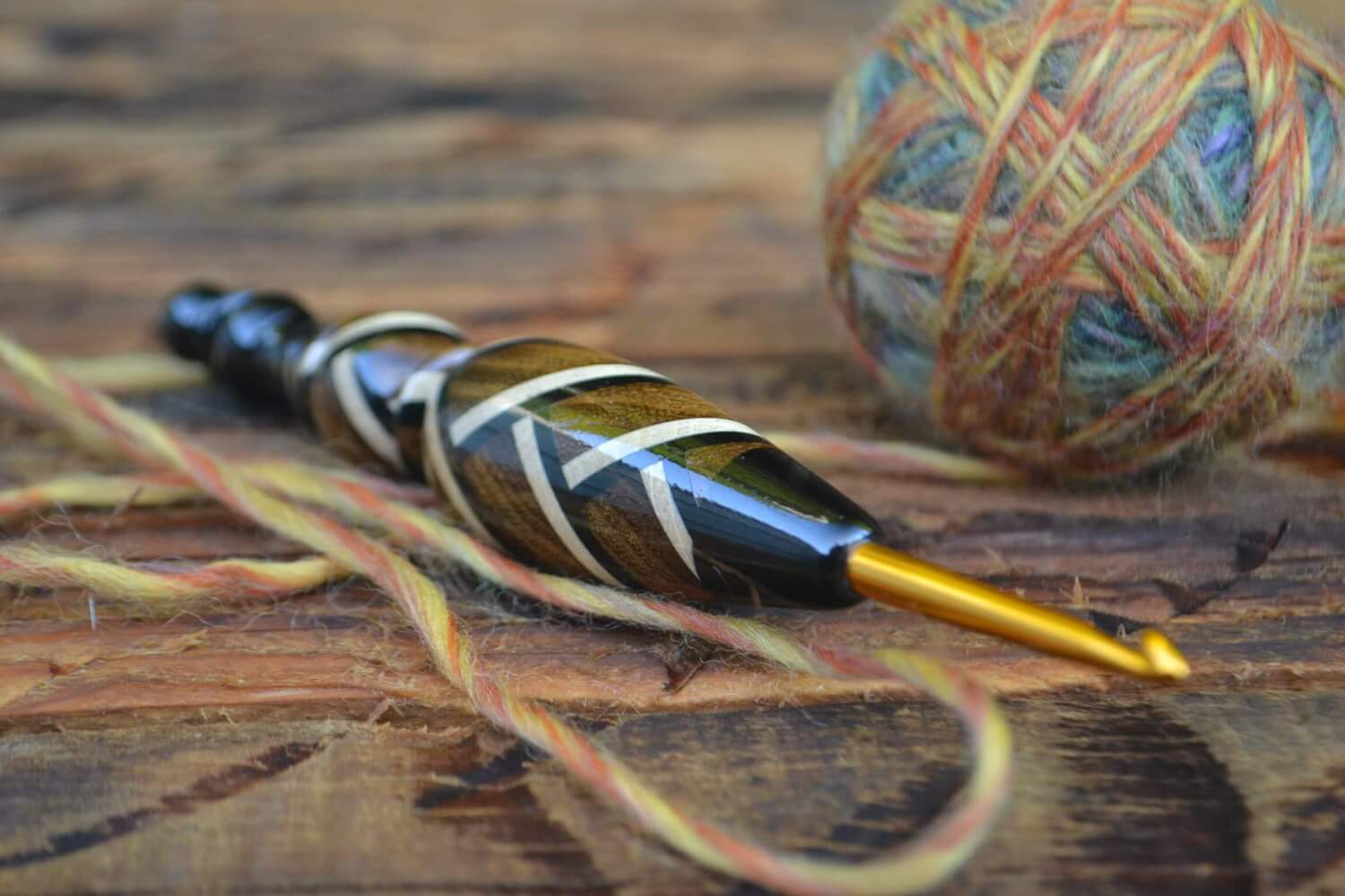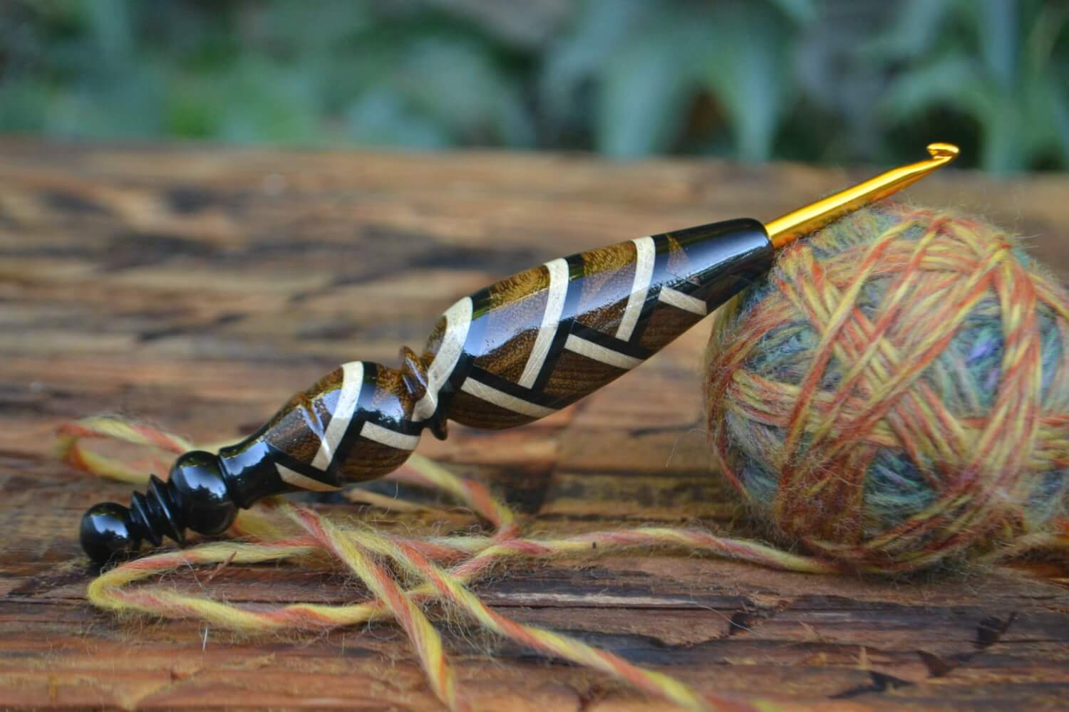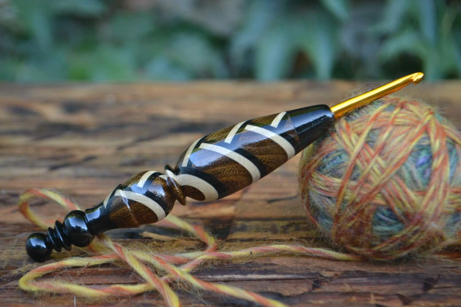 4 mm G Tulip Gold, Black Hornbeam and Robinia /Hornbeam /Black Hornbeam wood mosaic Ergonomic Crochet Hook 24 mm 16 cm #1371-5061