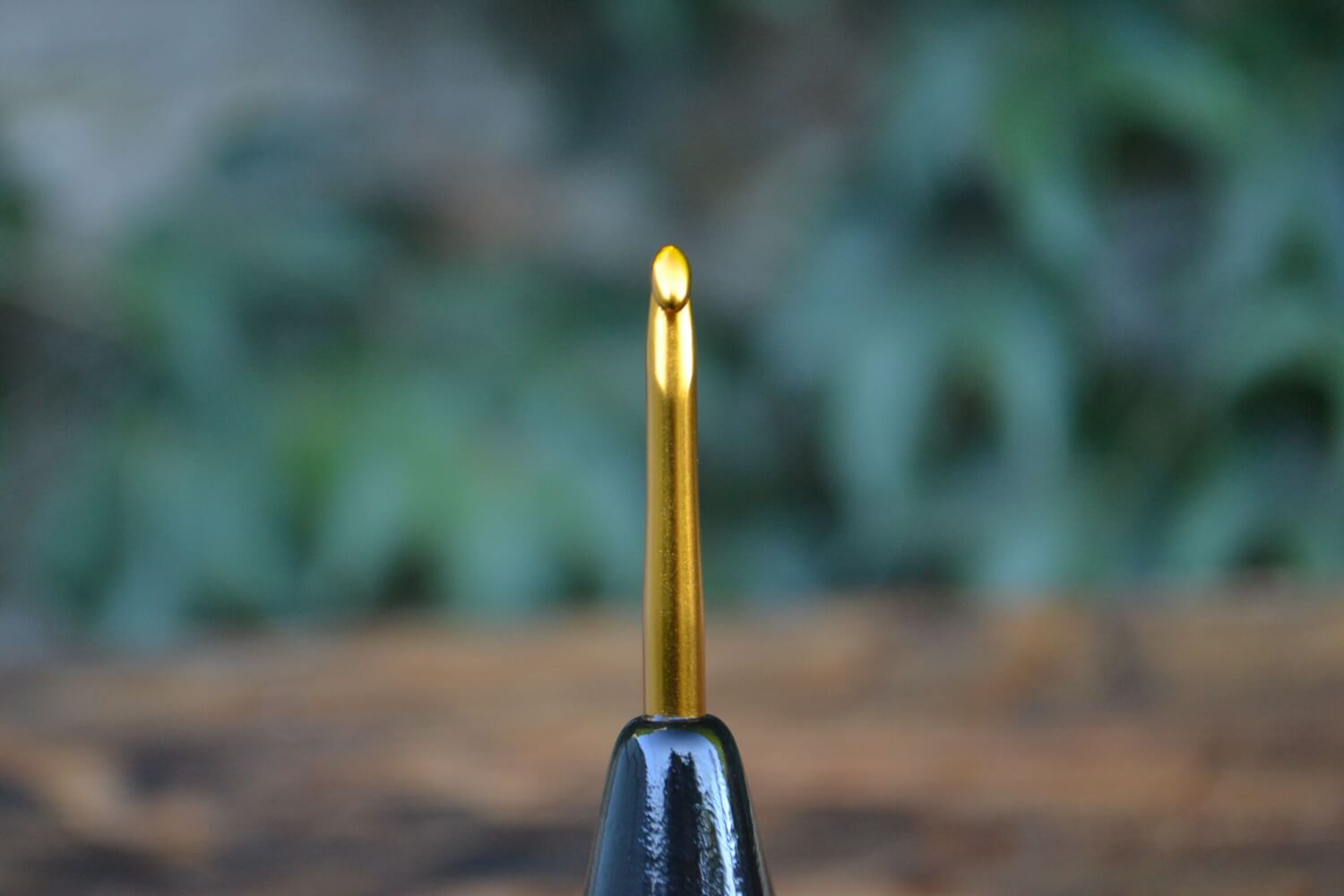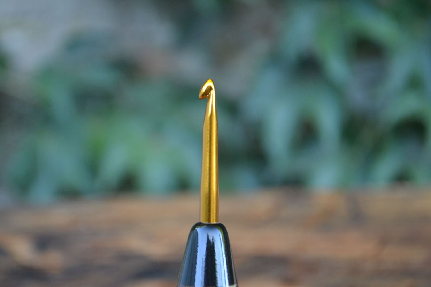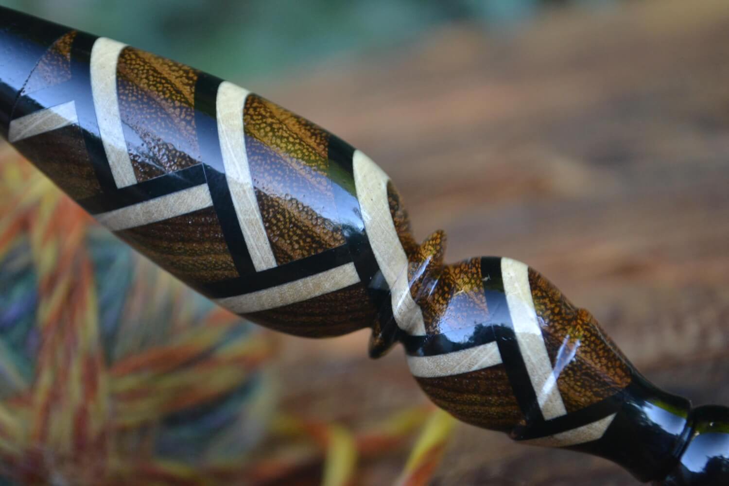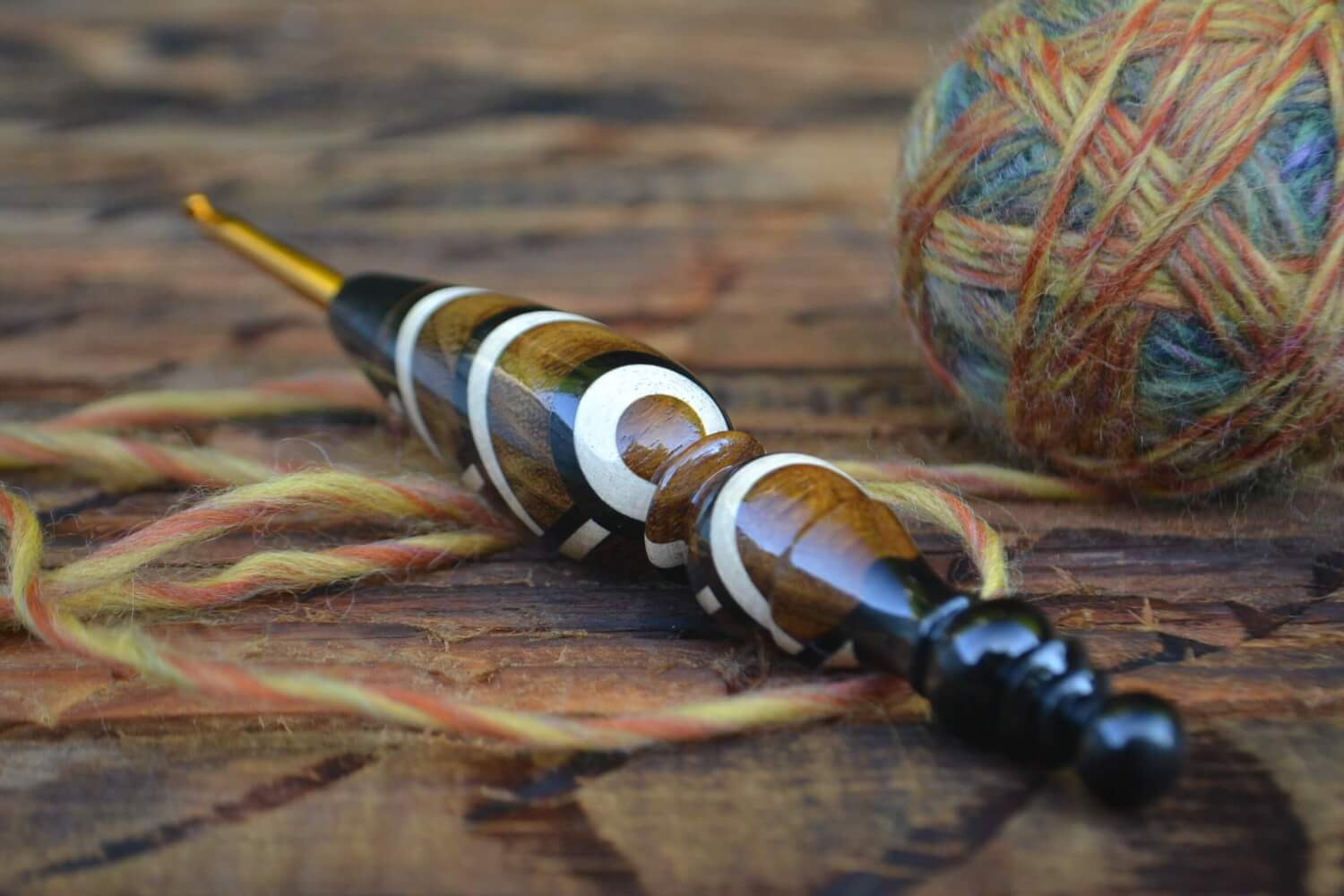 4 mm G Tulip Gold, Black Hornbeam and Robinia /Hornbeam /Black Hornbeam wood mosaic Ergonomic Crochet Hook 24 mm 16 cm #1371-5061