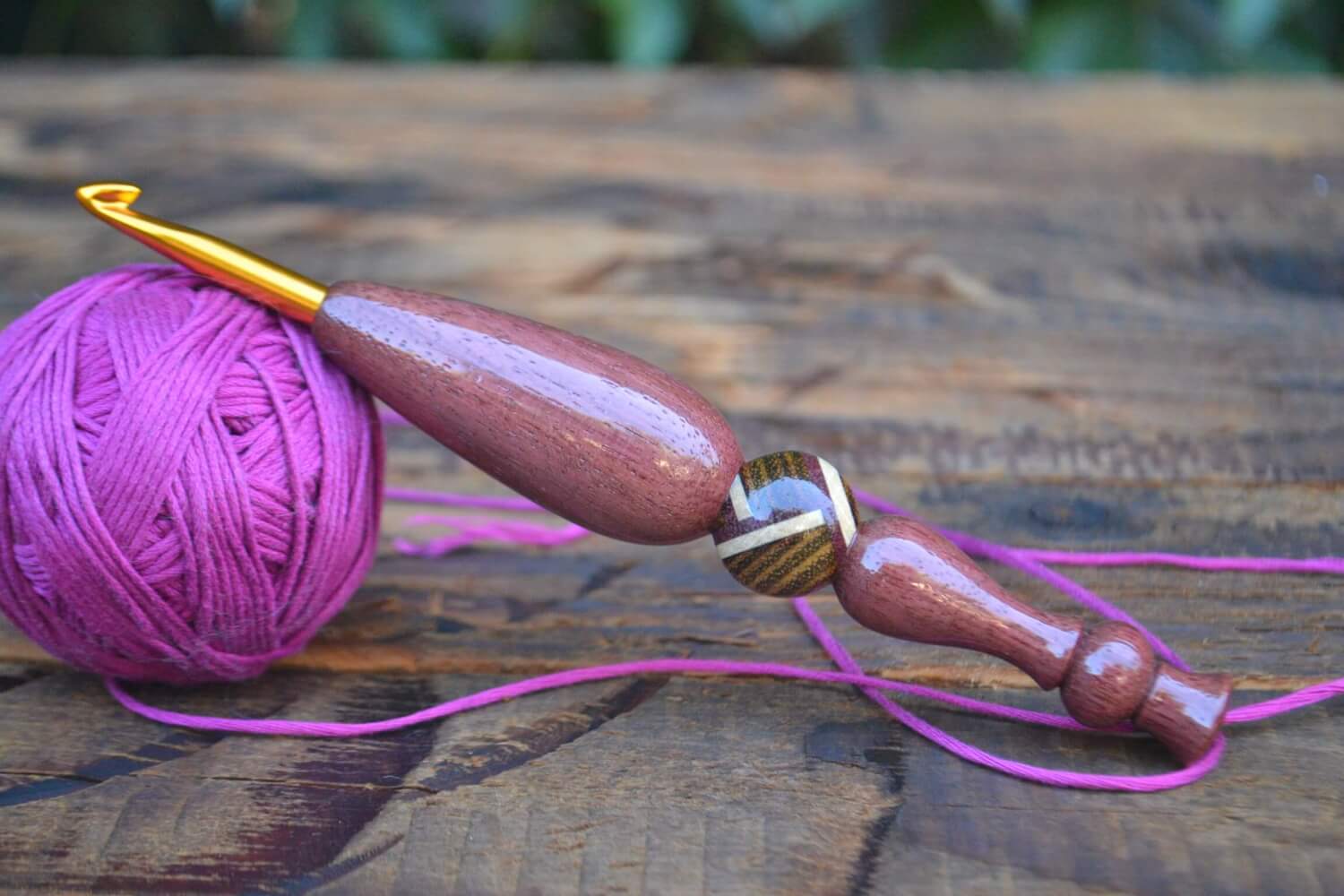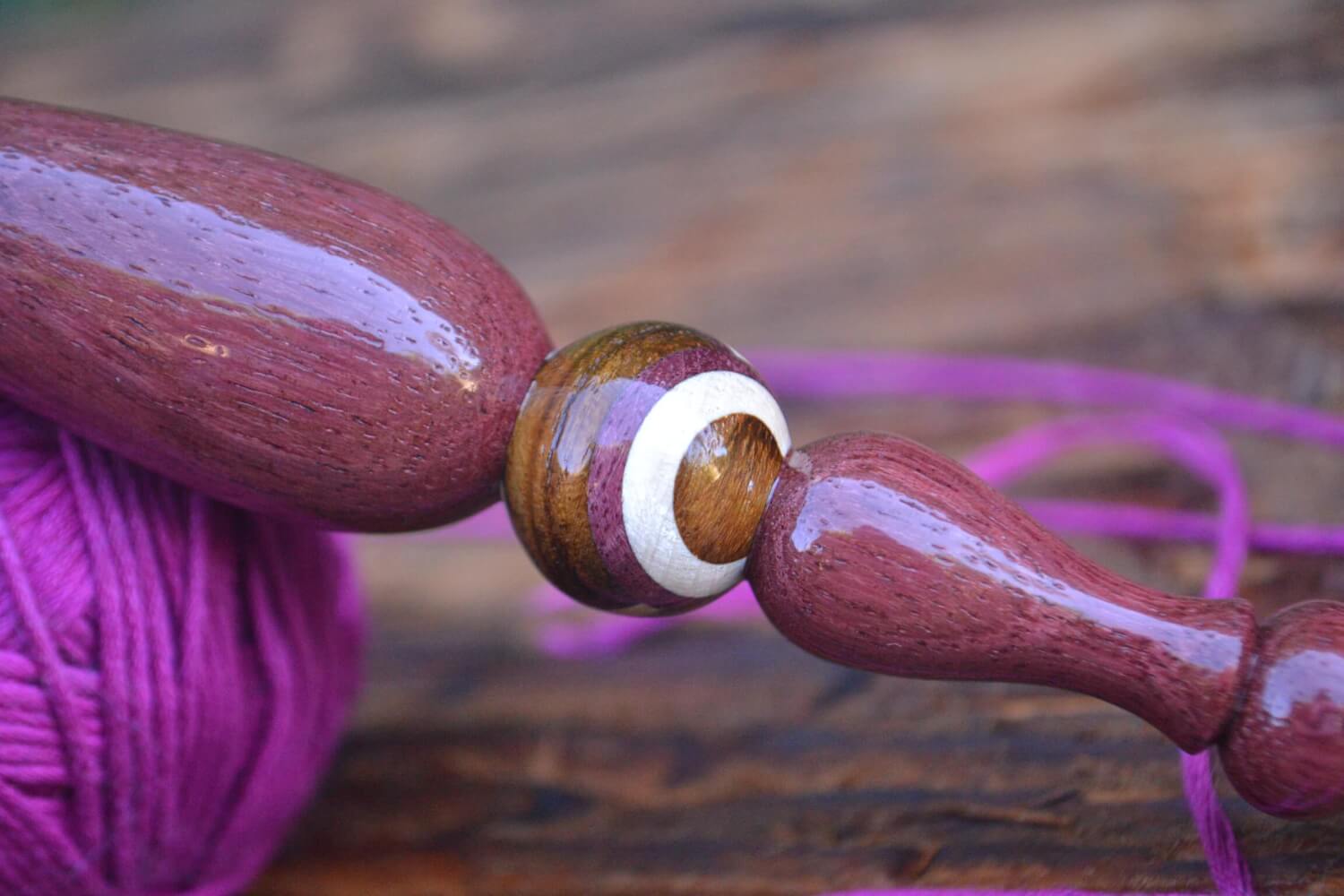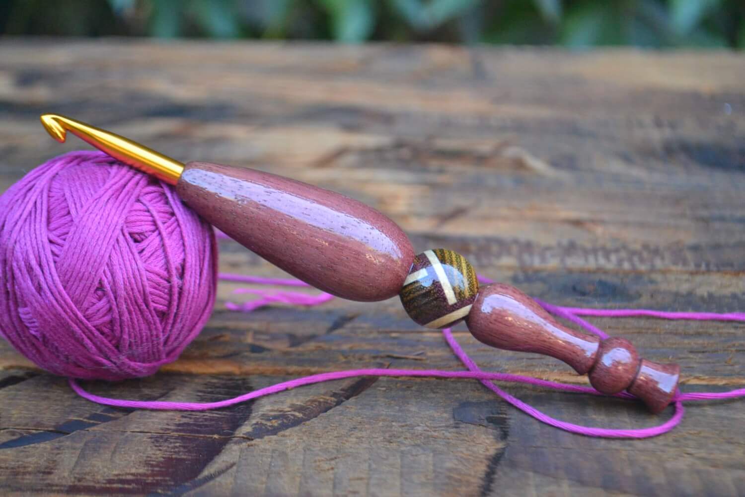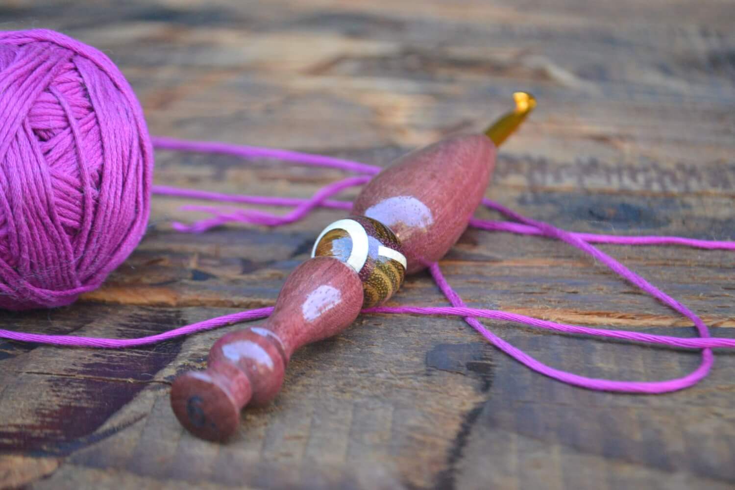 6 mm J Tulip Gold, Purpleheart/ Robinia/ Hornbeam wood mosaic Ergonomic Crochet Hook 23 mm 16.5 cm #1373-5063