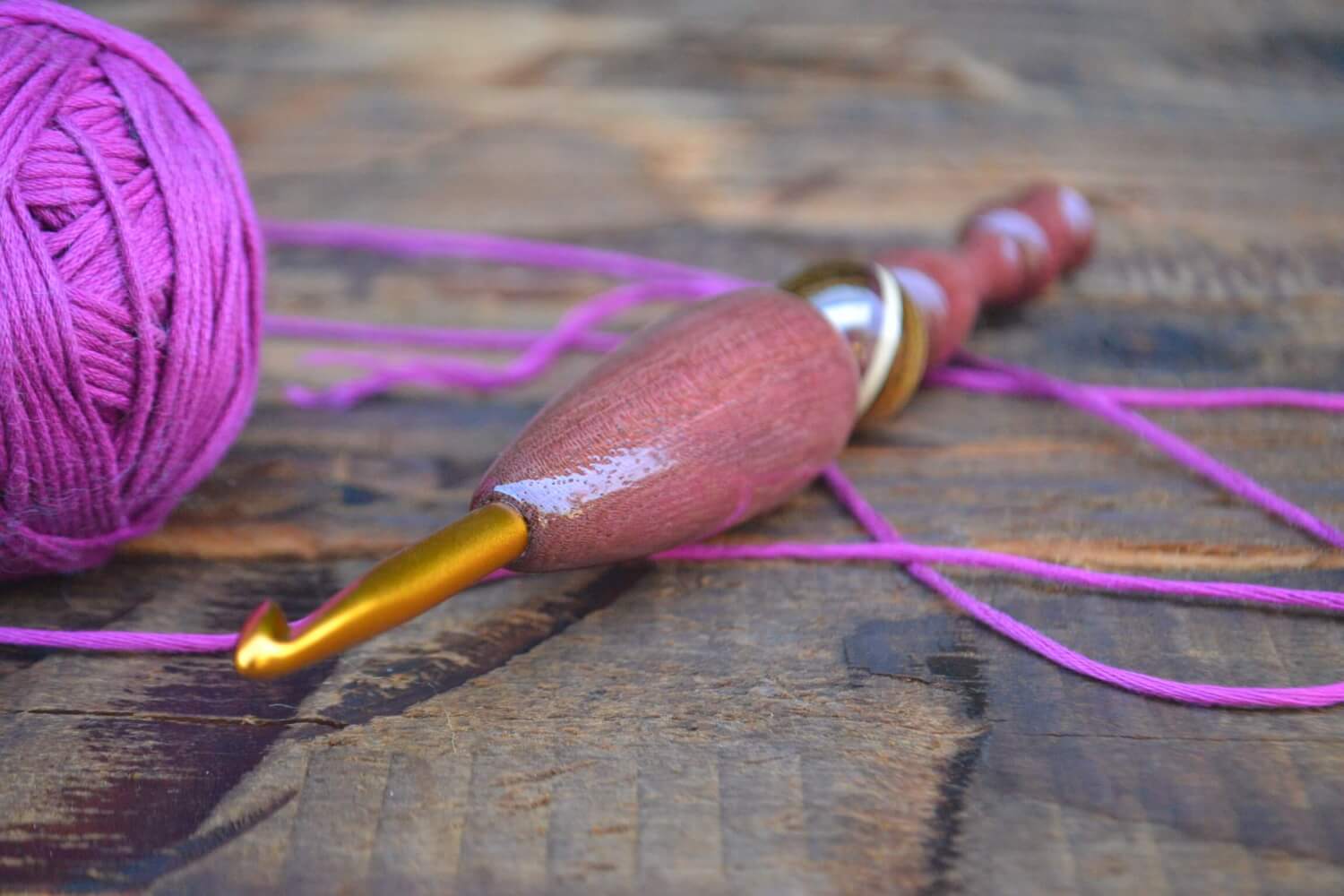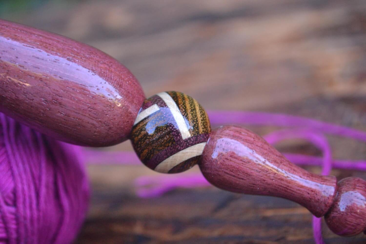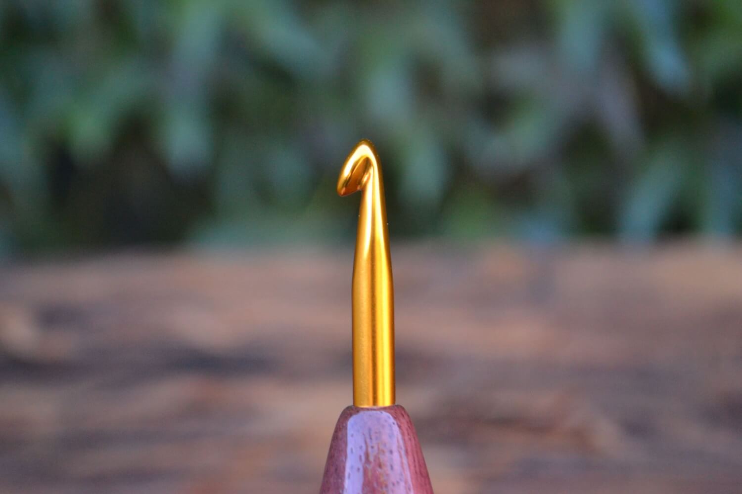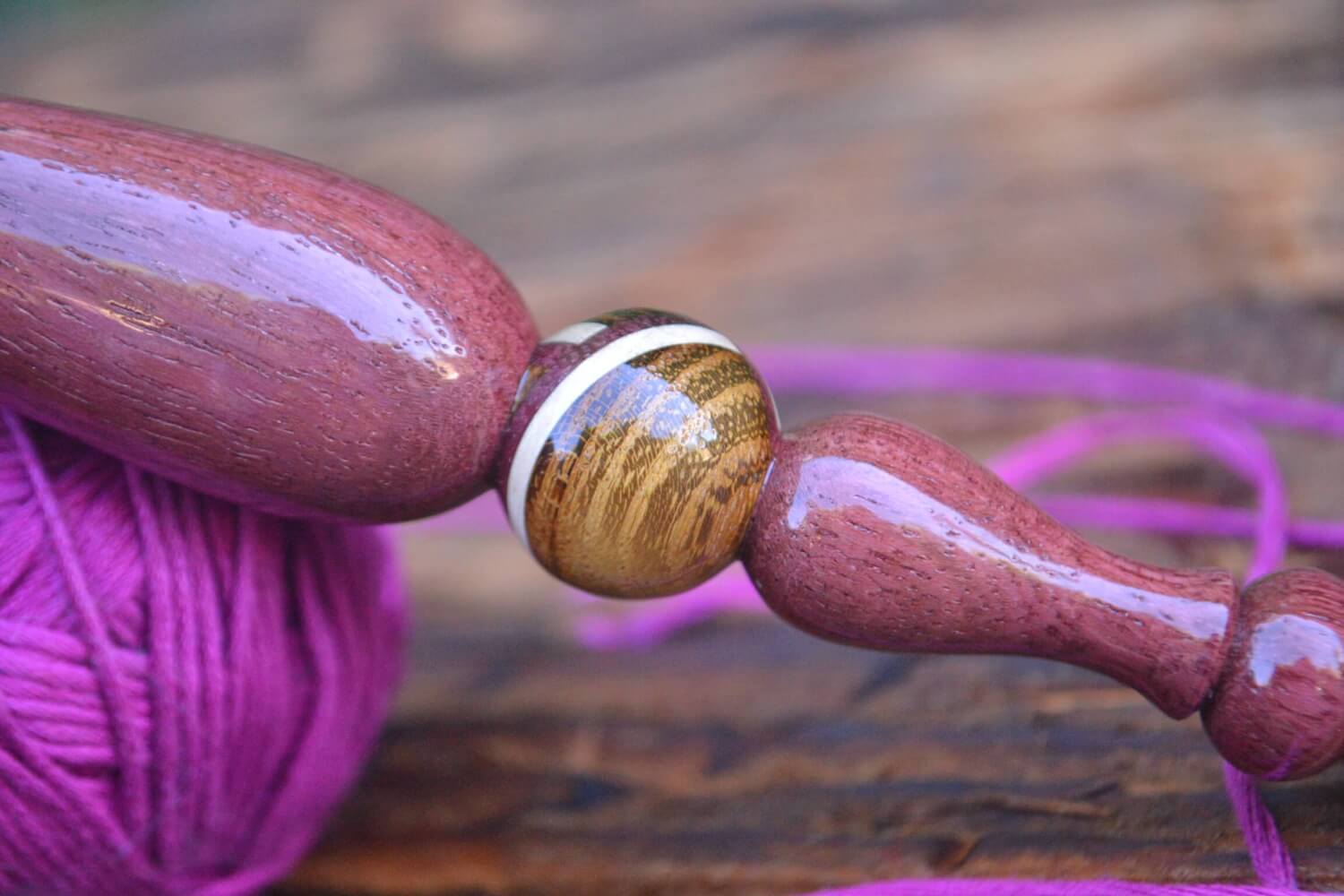 6 mm J Tulip Gold, Purpleheart/ Robinia/ Hornbeam wood mosaic Ergonomic Crochet Hook 23 mm 16.5 cm #1373-5063