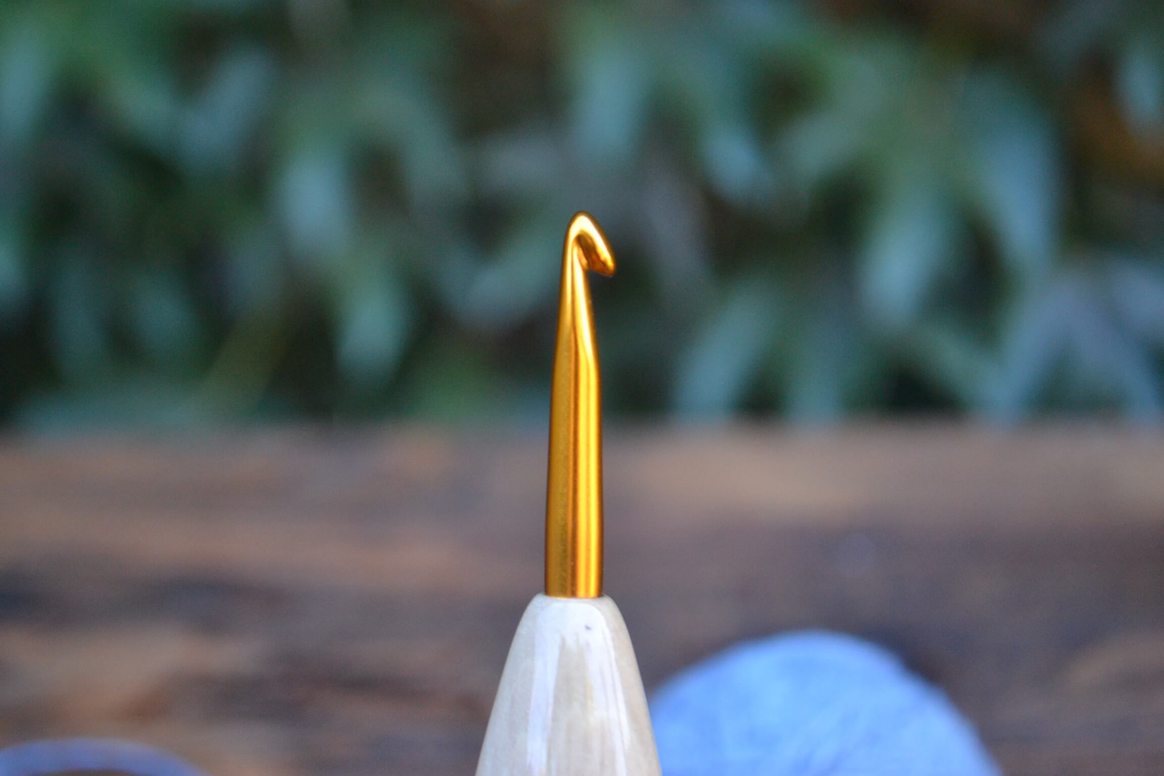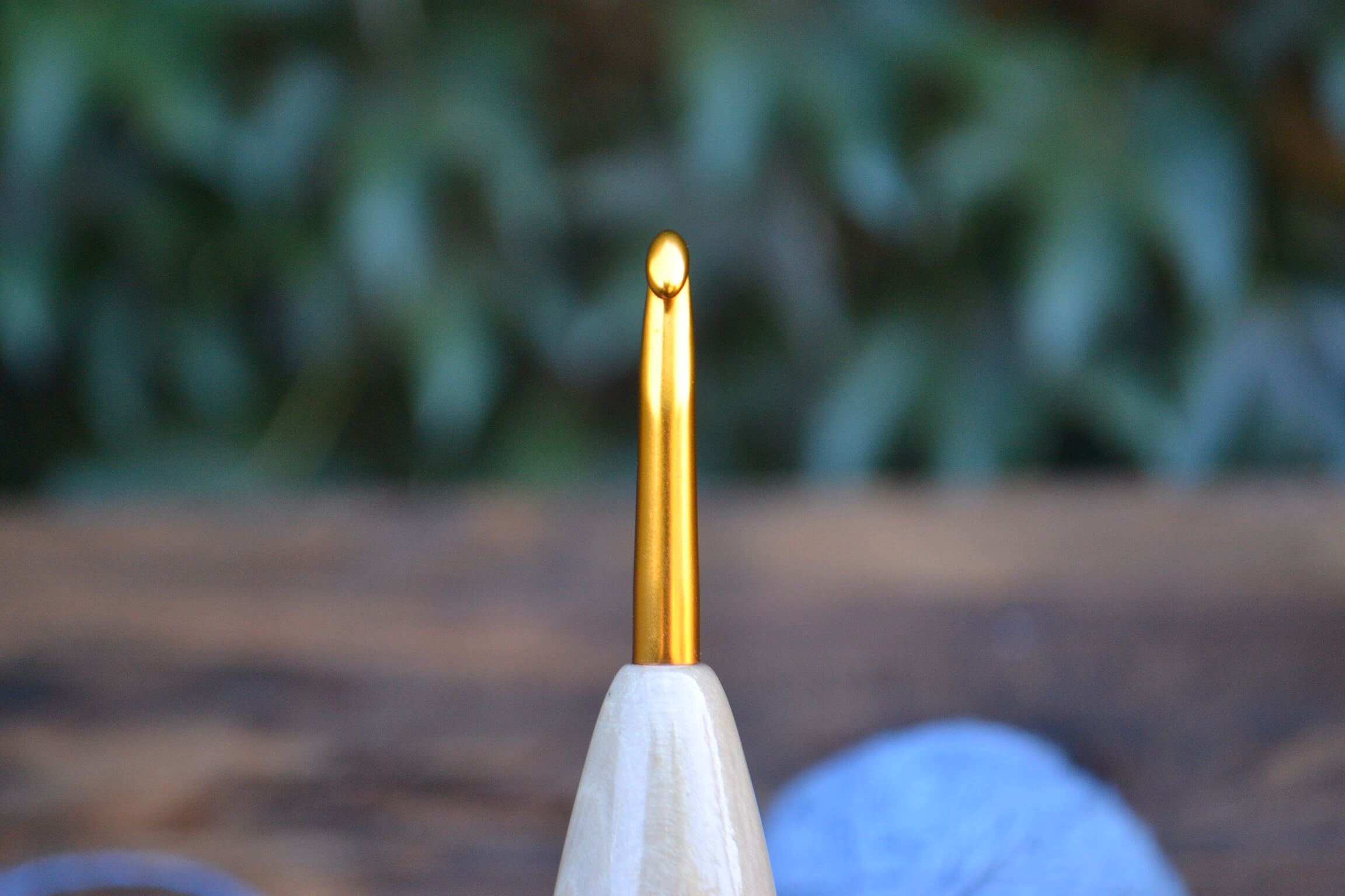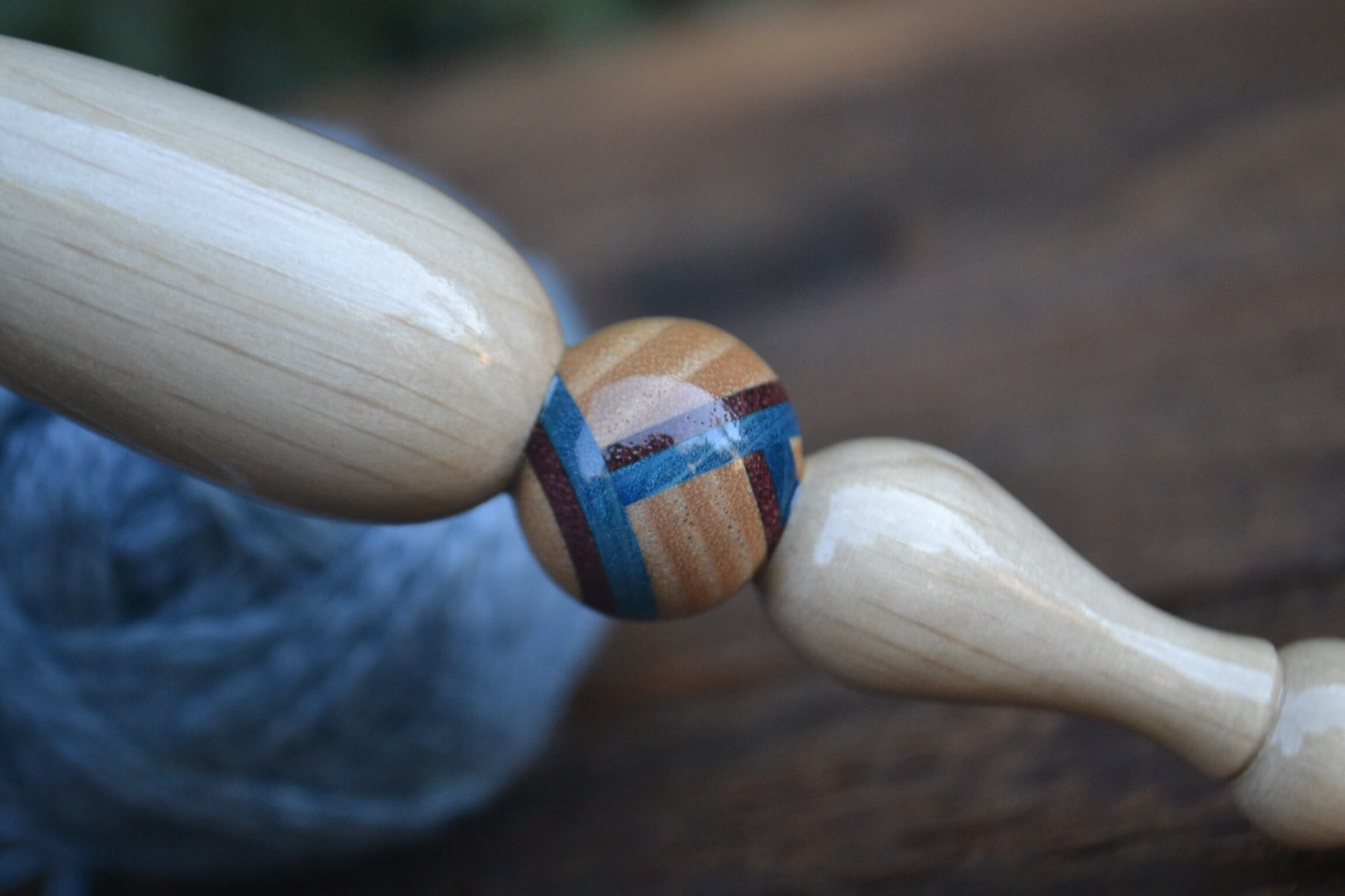 5 mm H Tulip Gold, Blue and White Hornbeam, Ash, Purpleheart wood mosaic Ergonomic Crochet Hook 23 mm 17 cm #1376-5066